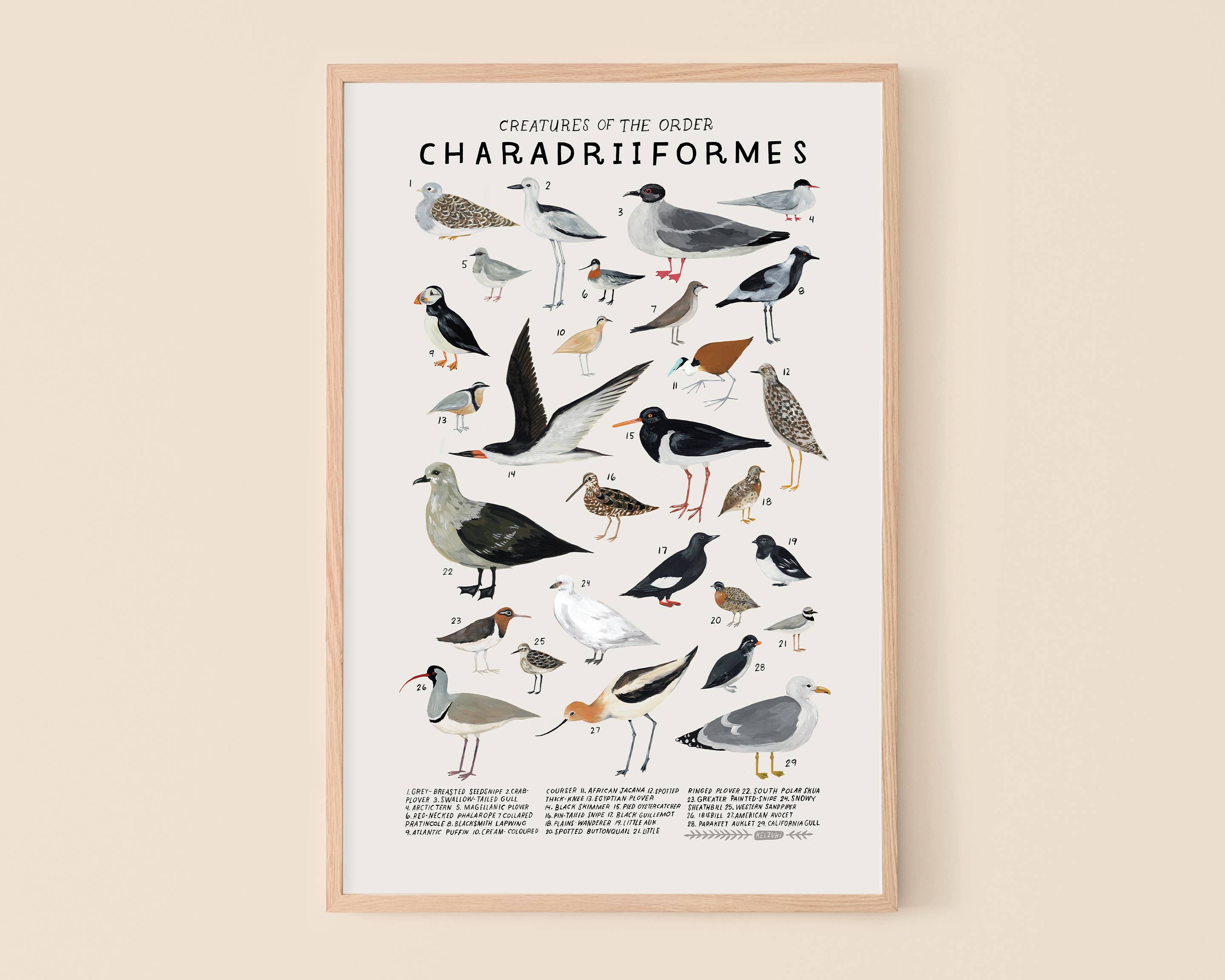 Kelsey Oseid is an illustrator, author, and artist from Minneapolis, MN. Kelsey's gouache illustrations focus on natural history subjects like taxonomy, biodiversity, and taxidermy, as well as related subjects like astronomy and the ways humans relate to the natural world. Kelsey's "Creatures of the Order" series has grown to include over twenty taxonomic orders and close to a thousand individual animal species, from beetles to birds to whales and dolphins. Now available for wholesale in two sizes (a gift-friendly 8x10 inches as well as our classic 12x18 inches), this series is sold online and in shops across the US and internationally. We love that individual shops can curate the animal prints that mean the most to their styles and missions, and that shoppers can look for and find their favorite animal species among our goods. All our wholesale items are printed in Minneapolis, and packaged carefully by hand. We ship our items flat with custom trimmed corrugated cardboard for a secure delivery of your goods.