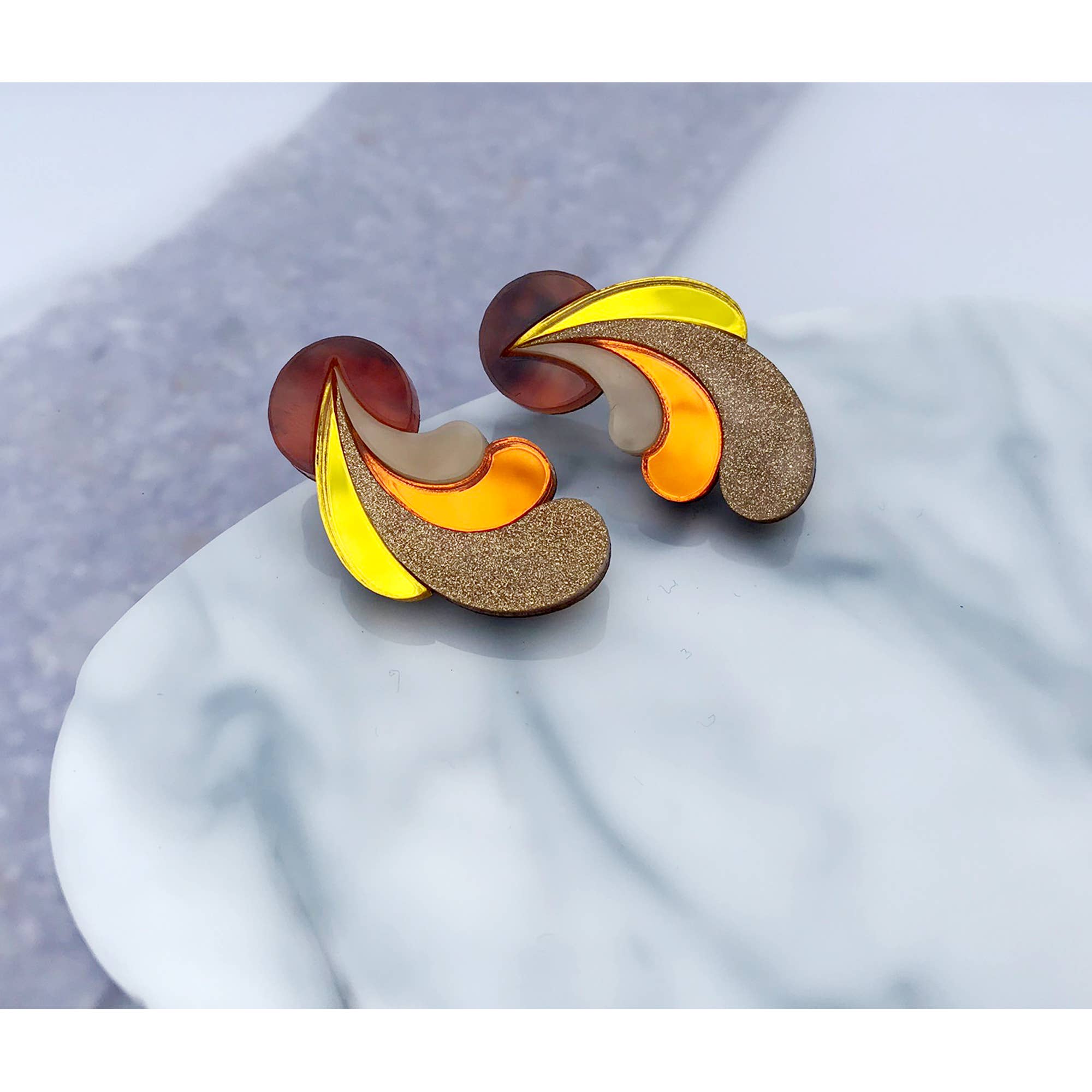 I'm an independent designer, making colourful, bold and creative costume jewellery from my studio in Bristol, UK. Having graduated from a fashion design degree back in 2010, I embarked on a career in textiles design for a womenswear brands, but soon begun working on my own jewellery designs in the evenings and weekends - I'd started teaching myself how to make and sell jewellery as a teen, and I wanted to revisit the idea! I like to use an eclectic mix of colours, textures and inspirations for my designs. My background in print, pattern and embroidery is a key influence in my work, and I often gravitate towards vintage-inspired, floral or botanical imagery. My jewellery is made using a mix of laser-cut and engraved materials. Usually, I create each design in a variety of colour combinations to allow customers to select colours that suit them best. This also makes for a lovely display in stores or at events. My goal is to create pieces that people feel great in - many of my customers have told me that they always get stopped and asked where they bought their jewellery from! I love the idea that something I've made can start a conversation between strangers in the street. Wearing some original, colourful jewellery can feel really uplifting, so I always try to create pieces that are a little different.