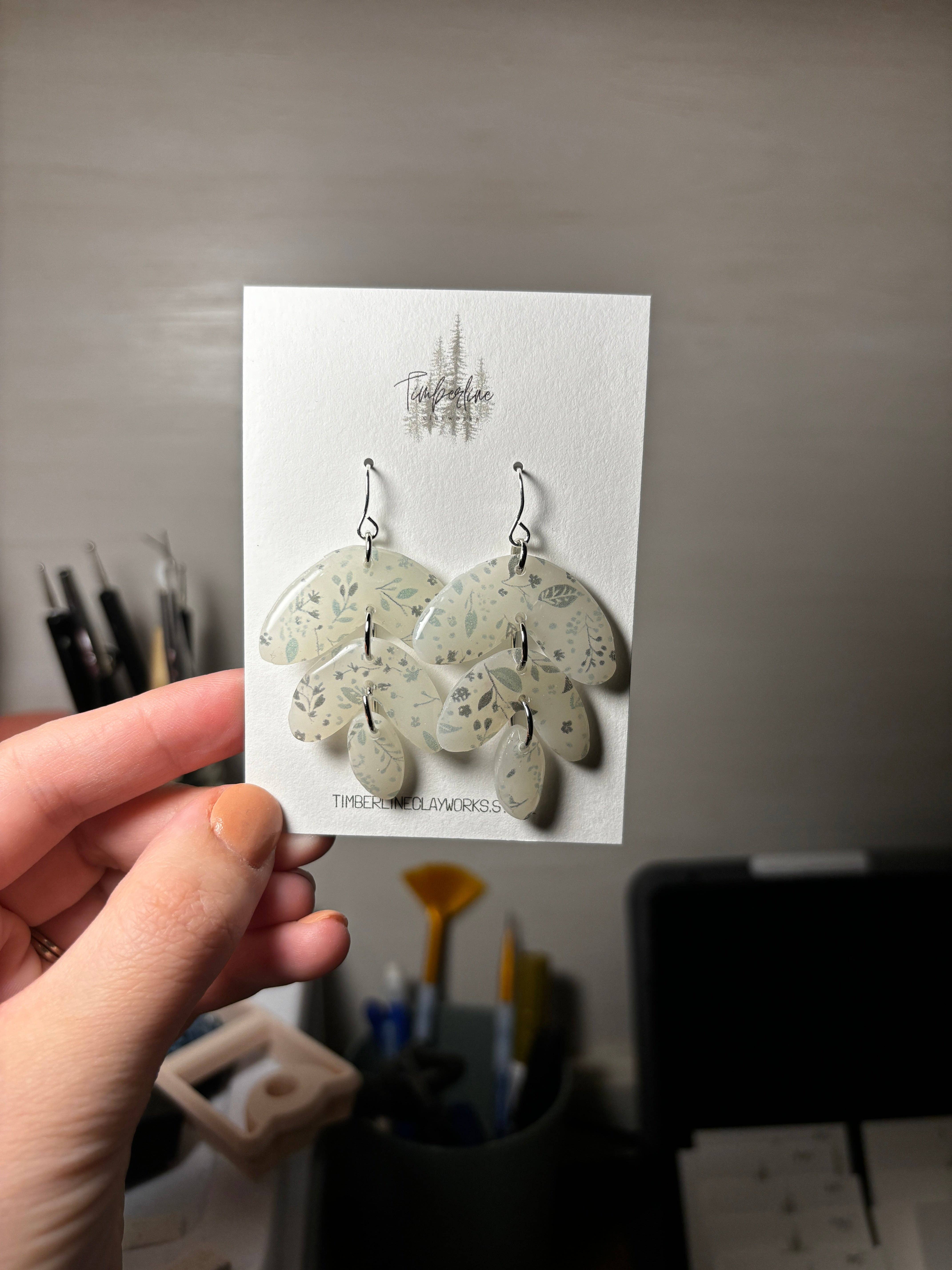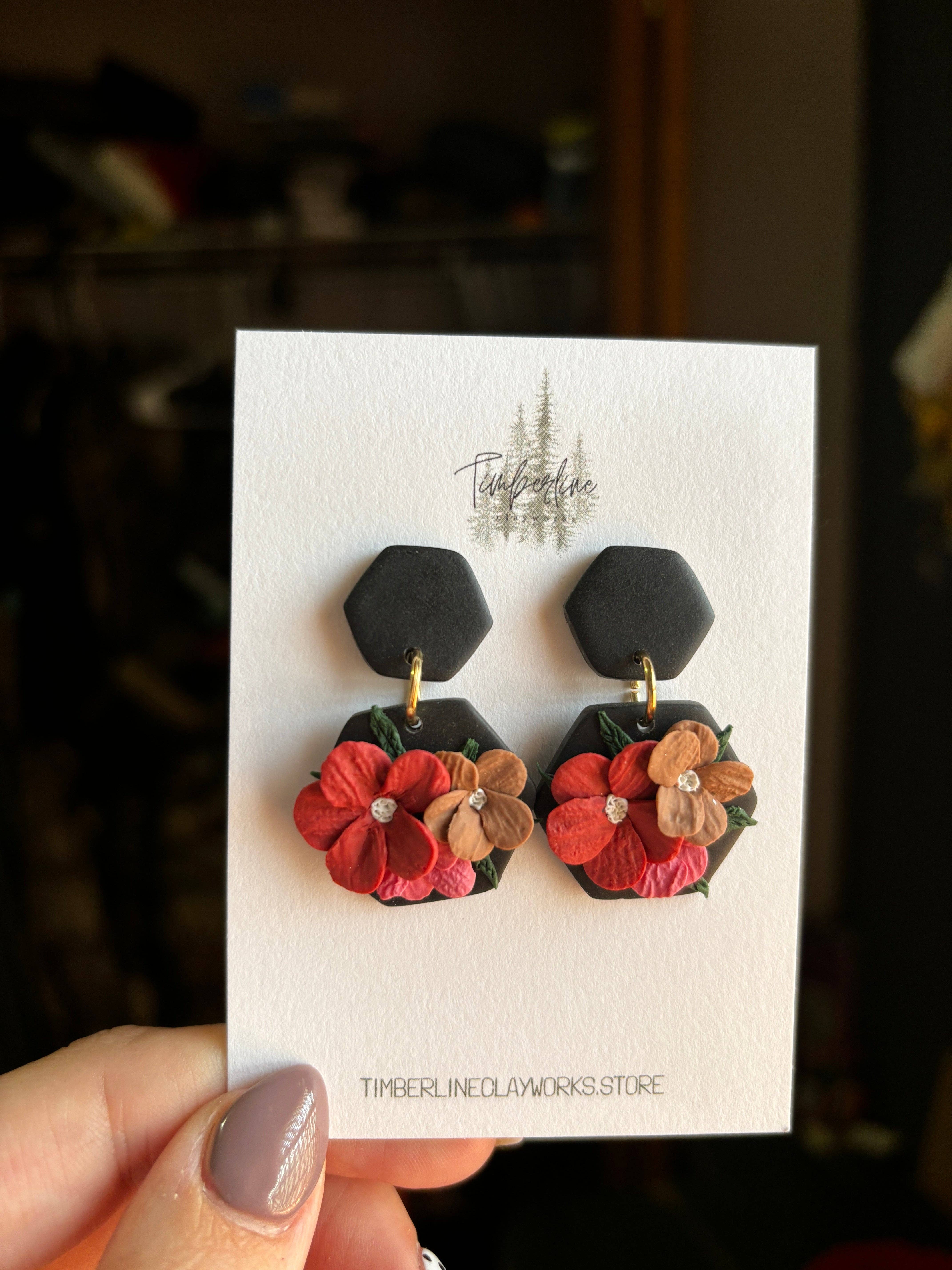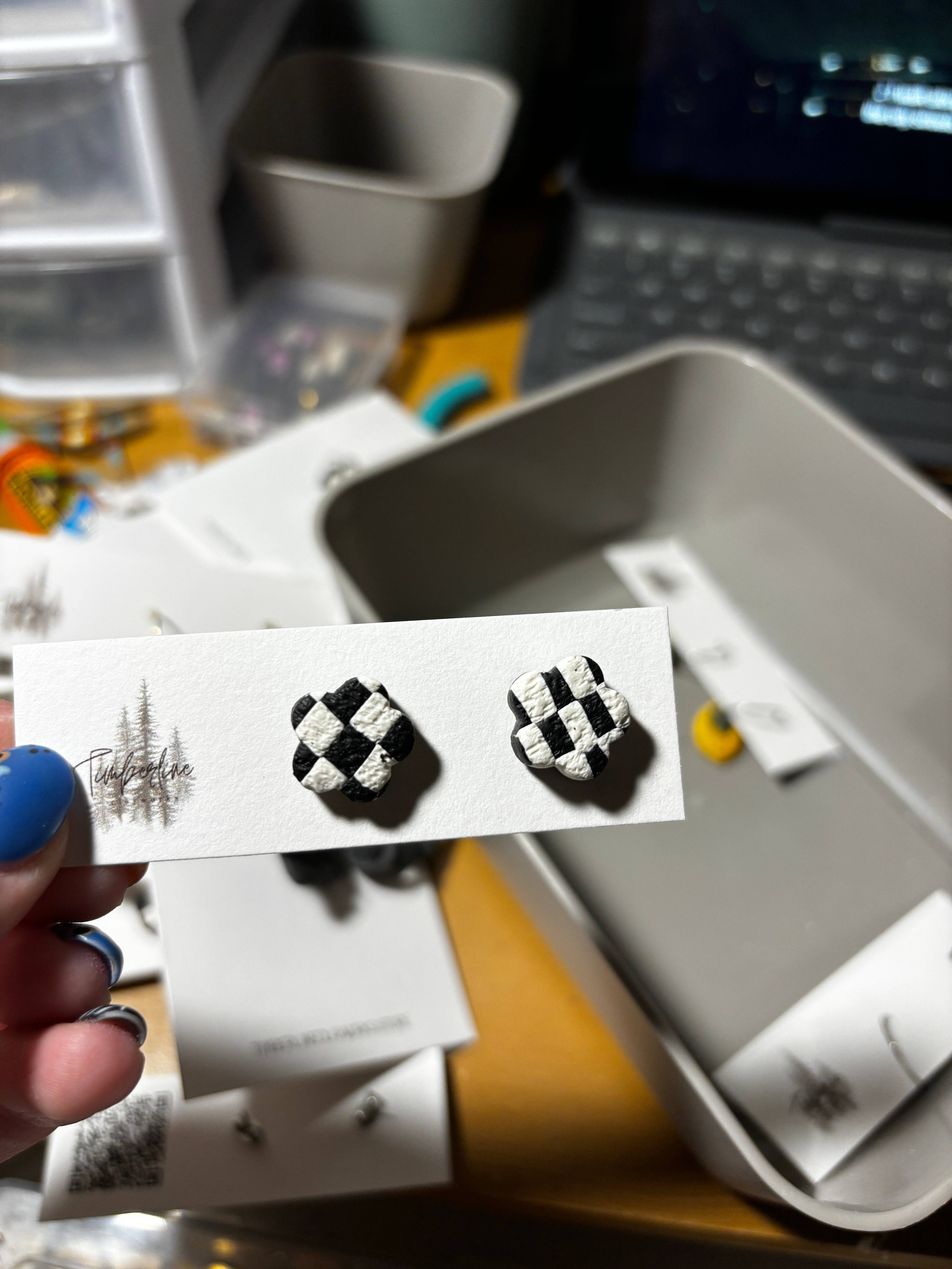 Hello there! My name is Kayla and I am the creative mind behind Timberline Clayworks, a polymer clay earring business based right here in my home sweet home. As a stay at home mom with three rambunctious kids, I decided to turn my love for crafting into a business that allows me to stay home with my little ones while also indulging in my passion for creating beautiful and unique jewelry. I have always been drawn to art and design, and after discovering the endless possibilities of working with polymer clay, I knew I had found my calling. Each pair of earrings I create is carefully handcrafted with attention to detail and a whole lot of love. From bold statement pieces to delicate studs, I strive to create earrings that add a touch of personality and flair to any outfit. My favorite thing about polymer clay is that it is so lightweight it hardly feels like you’re wearing anything at all! When I’m not busy chasing after my kiddos or sculpting clay earrings, you can find me sipping on an iced coffee, reading a good book, or spending time outdoors with my family. I am truly grateful for the opportunity to run Timberline Clayworks and share my handmade creations with all of you. Thank you for supporting my small business and allowing me to do what I love every day. I hope you find a pair of earrings that speaks to your unique style and brings a smile to your face. Stay tuned for new designs and collections coming soon!