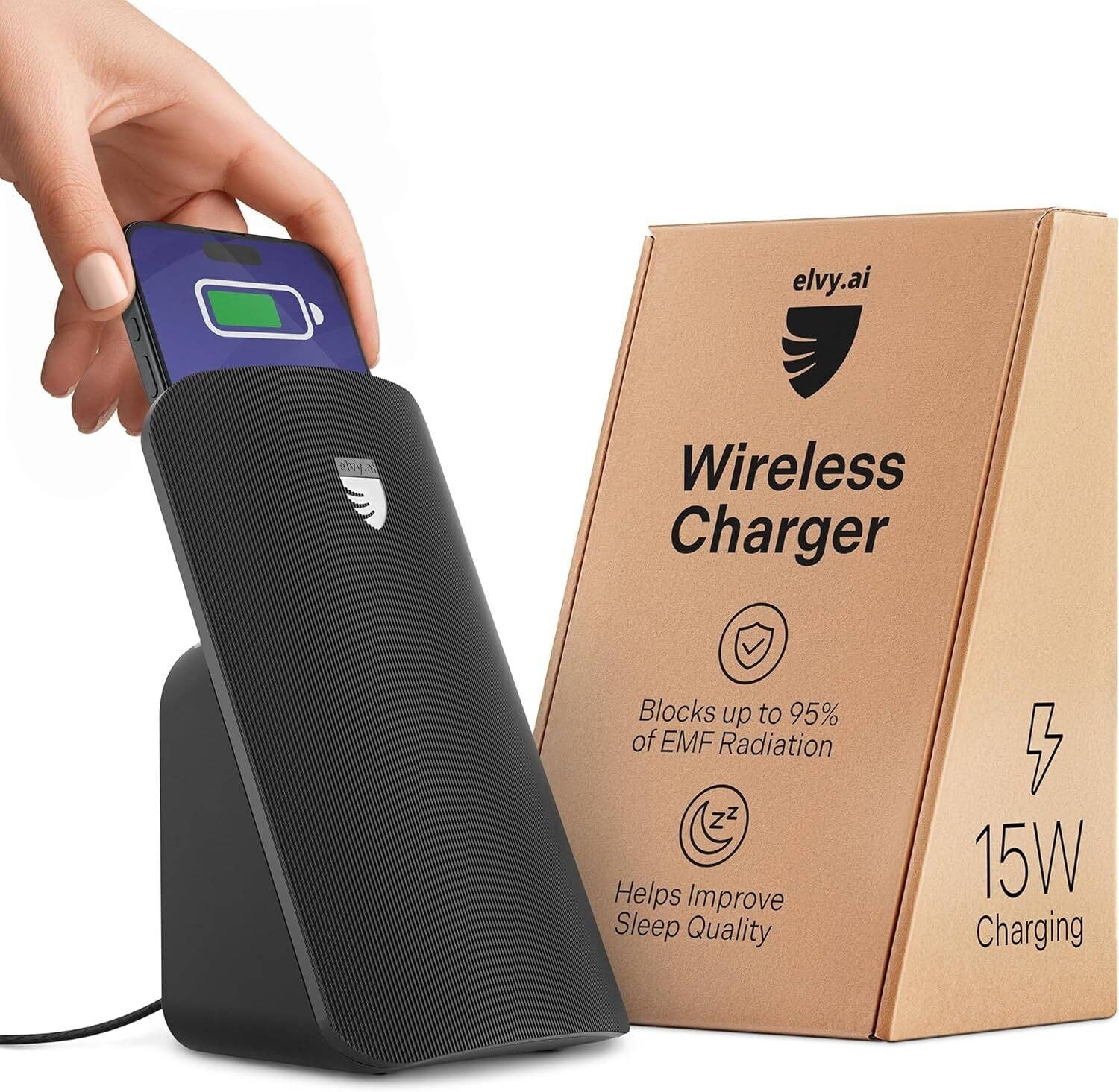 "Elvy.ai is your next step to better sleep by improving sleep environment and hygiene through a cutting-edge development, the Elvy Charger, an easy-to-use pro-sleep solution that enables better quality sleep. Elvy.ai was developed by a concerned husband who looked over the bed to see his wife charging her phone within reach, all night, every night. After two years of research, development, weeks of lab testing, hundreds of beta testers and thousands of users worldwide, we are grateful to be able to provide all wives, husbands, parents and children with a quiet, peaceful and quality night's sleep. The Elvy charger blocks 95% of EMFs and blue light emitted from the charger and phone that alter alpha brain waves and interfere with circadian rhythms during sleep cycles, while improving sleep habits and maintaining phone functionality. Customer service with 1 year warranty." partners and collaborations:: Hotel, Tech, Healthy well-being, Retreats, Yoga, Mindfulness, Guest, Hospitality, Gift. Helping for: Sleep, Wellness,, REM, Blue light, Focus, Energy, Wellbeing, Productive day.