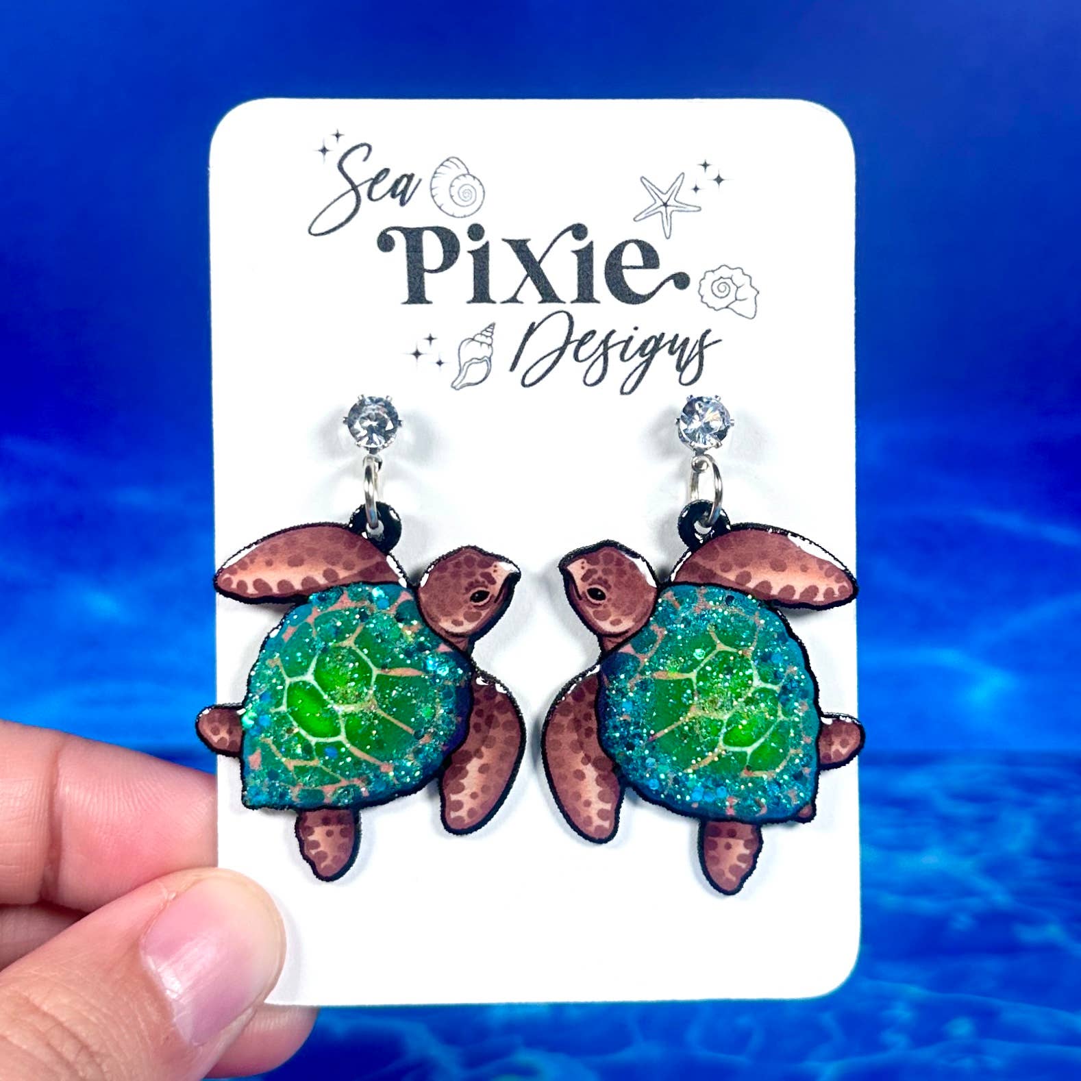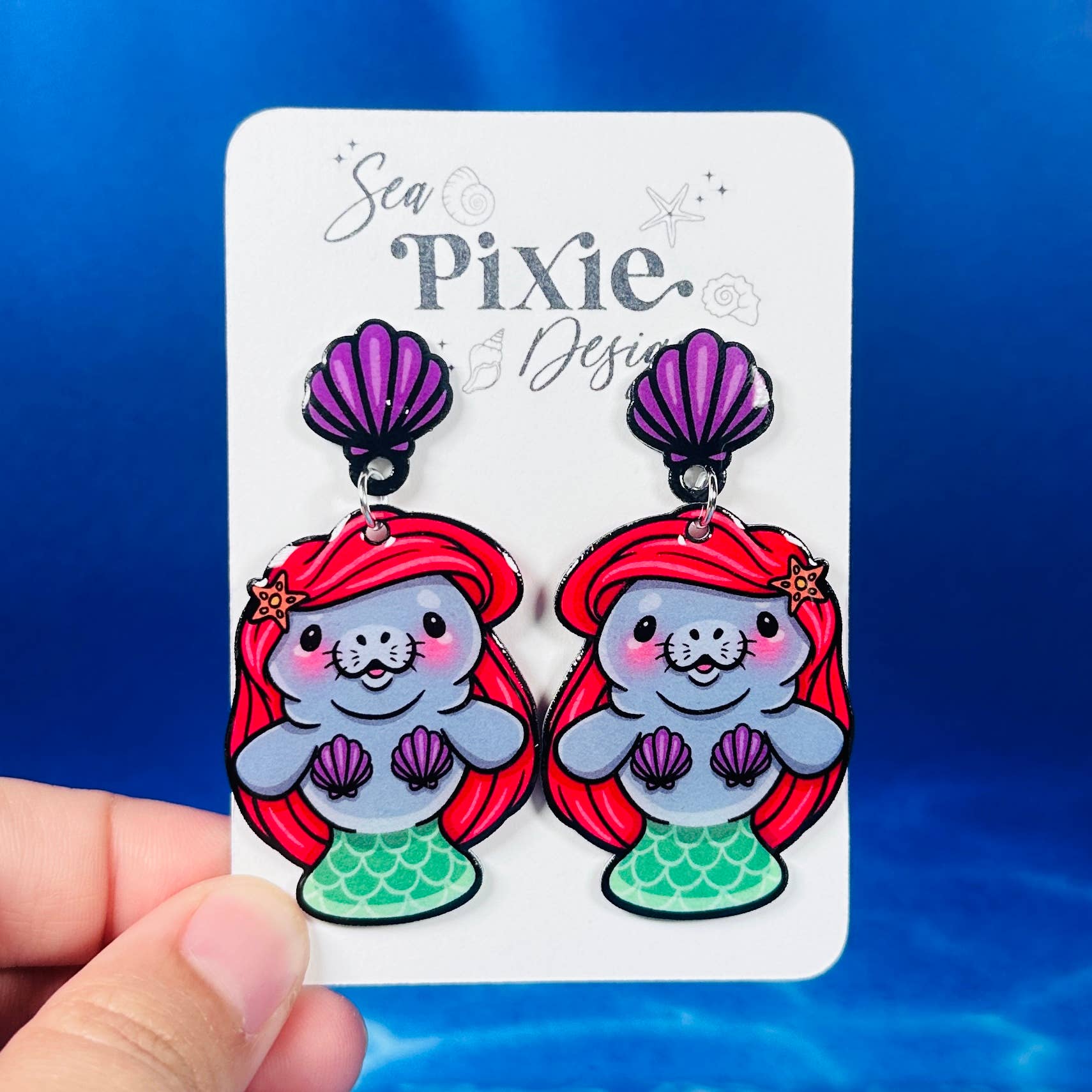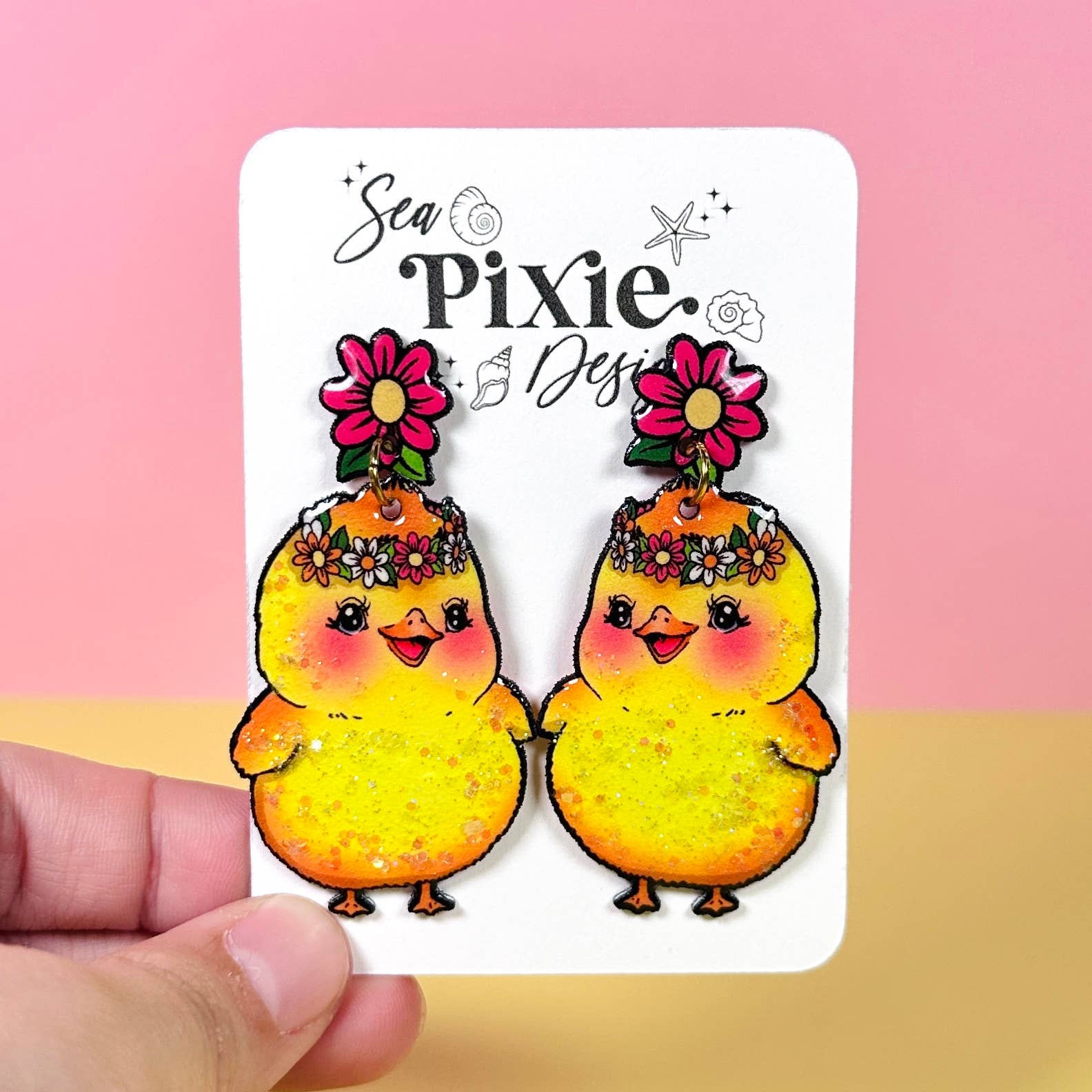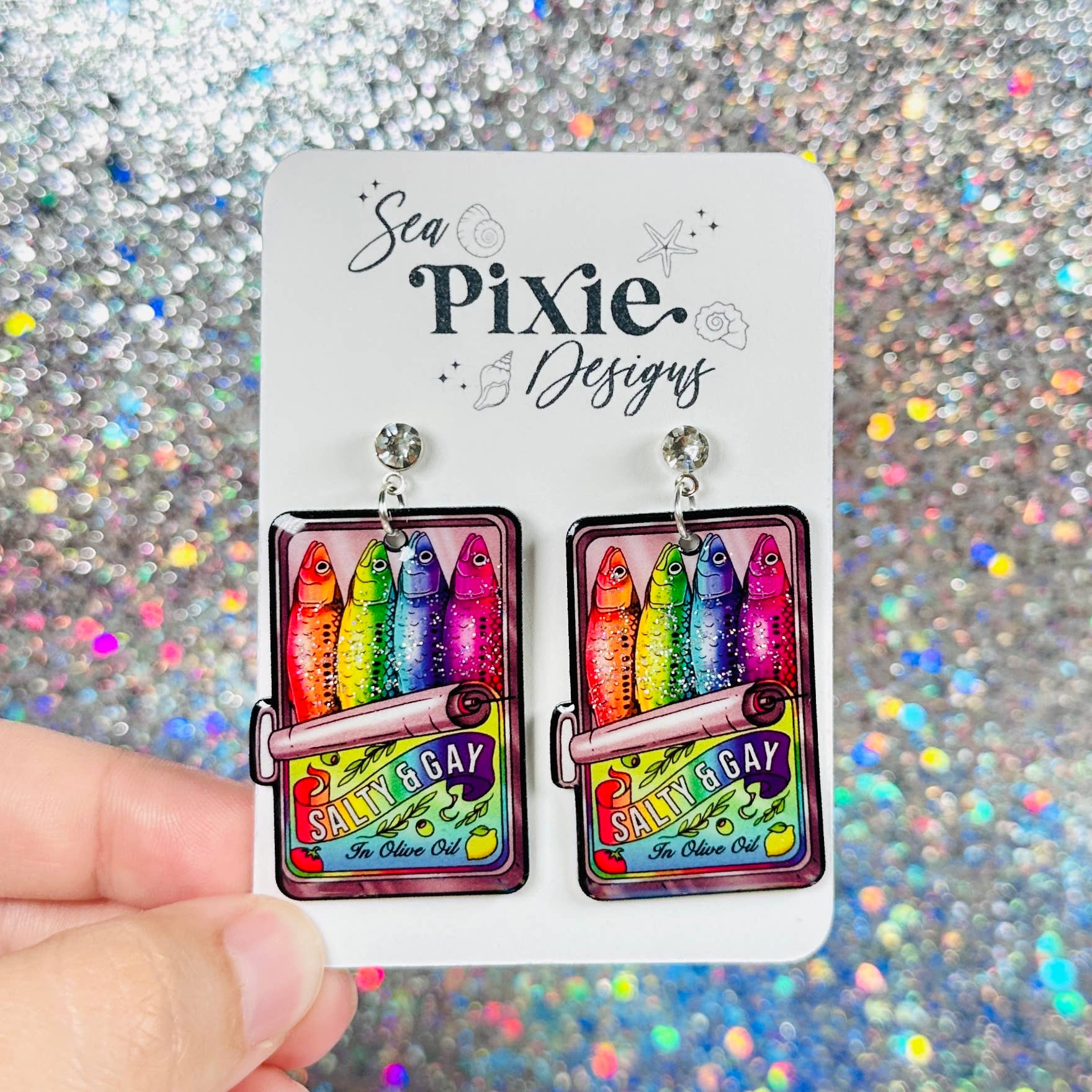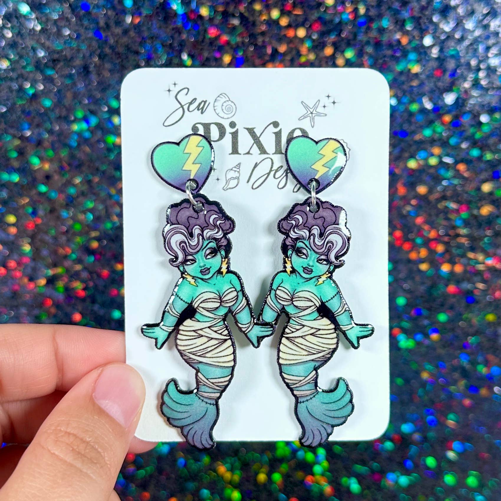 Sea Pixie Designs is a brand that focuses on original artwork and celebrates unique, whimsical, and statement jewerly. Sea Pixie Designs was founded by an artist and former high school teacher, who wanted to create wearable artwork which showcased her illustrations. Each pair of earrings features hand-drawn illustrations and are handcrafted with care and attention to detail. Each earring pair is a statement, with bold color, glitter, and unique designs, while still remaining lightweight for sensitive ears. Sea Pixie Designs also offers pins and stickers of these unique illustration designs.