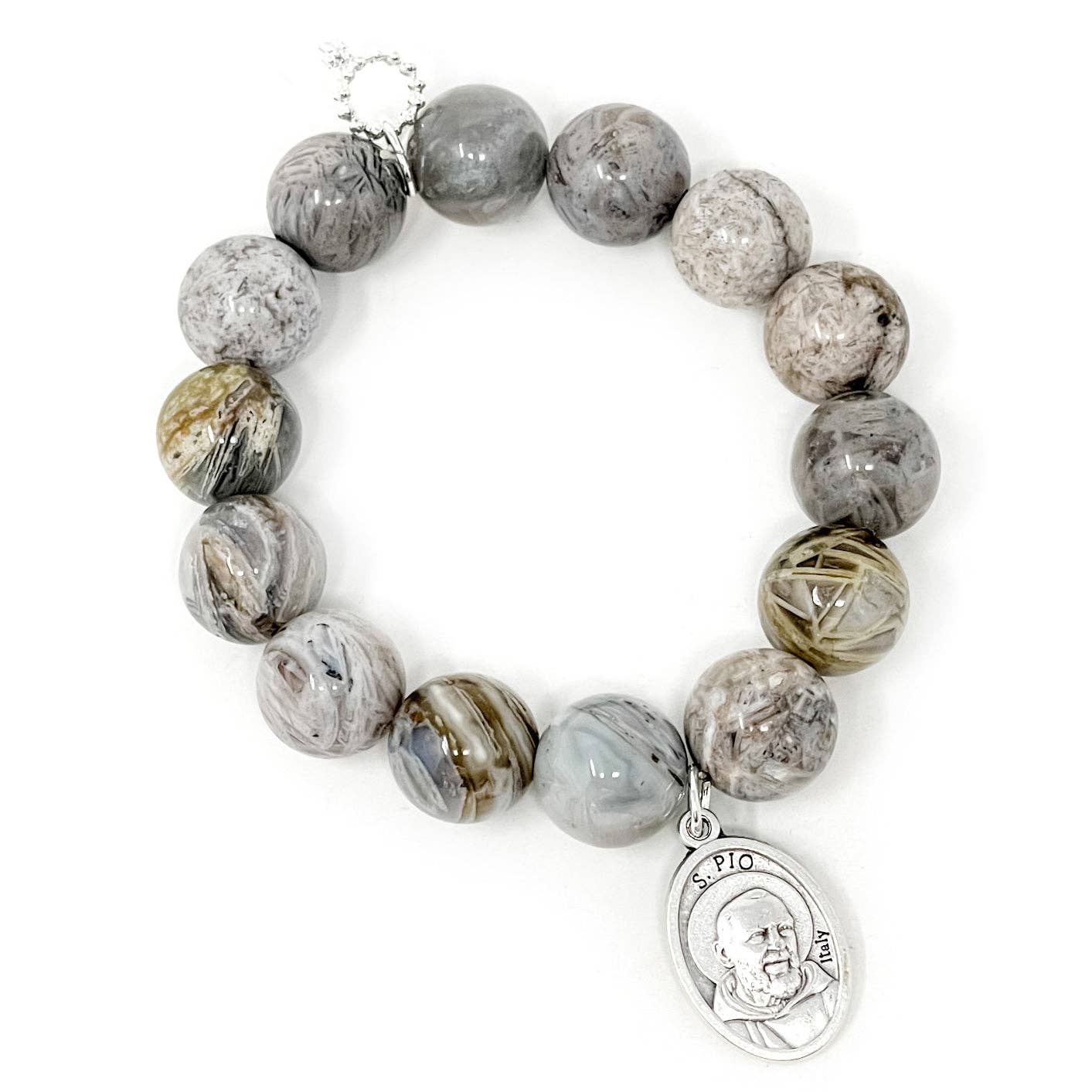 My Story After a traumatic cycling accident, a dear friend gave me a beautiful Blessed Mary medal to wear when I ride on the roads to train for my triathlons. I placed this special piece on some gemstone beads and wore it to bring me comfort and calm at all times. It brought me so much relief and renewed my confidence that I made a few bracelets for dear friends that were in need of some positive energy in their lives. Their enthusiasm and serenity was the inspiration to design a line of handmade, unique jewelry that merges the powers of vintage medals that people have prayed and relied upon with natural gemstone beads that have holistic meanings such as healing, forgiveness and calming. Blessings, jen