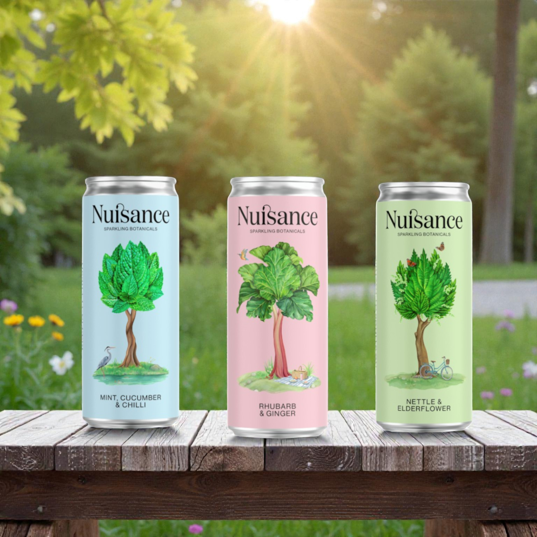 Nuisance was born in 2020, when founder Hugo, swapped his city desk for gardening gloves. Armed with his mum's recipe and a pocket full of dock leaf, he spent lockdown foraging nettles before launching our trademark Wild Nettle soda. We have since launched our range of sparkling botanical soft drinks that celebrate the wild side of nature. We turn the unsung heroes of the hedgerow, often considered a nuisance, into carefully crafted drinks. From the nettles you always avoided to the bramble that had you tangled, the Nuisance range is a glorious gang of misfits that elevates every occasion. We turn the unsung heroes of the hedgerow, often considered a nuisance, into carefully crafted drinks. LOW IN CALORIES - All NATURAL - NO ARTIFICIAL SWEETENERS 1% of sales donated to Rewilding Britain Nuisance in the garden. Extraordinary in a can.