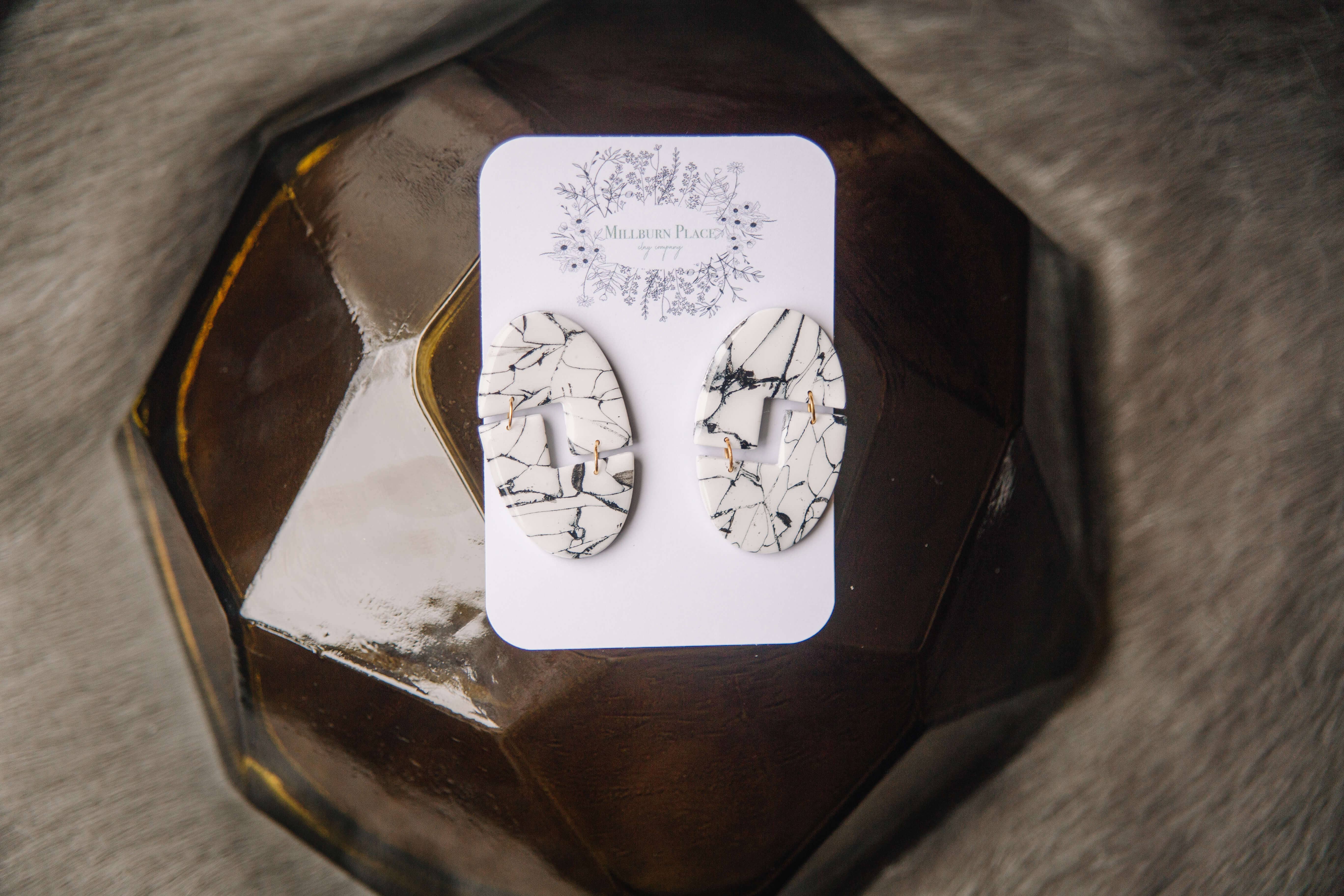 Millburn Place is a one woman run small business based in Ayrshire, Scotland started in December 2020. Run by Chloe, a 27 year old wedding photographer. Born out of lockdown and needing a way to stay creative, this hobby quickly grew to become the little business it is today. The name Millburn Place comes from part of my Dogs name (there he is in the photo to the left), his name is Miller, and part of my surname which is Burns, and that is how Millburn came to be. All of my earrings are carefully hand made in small batches using polymer clay. Polymer clay does contain plastic therefore i try my absolute best to use up every piece of scrap clay to create some one of a kind pairs to avoid wastage. I use all recycled/recyclable packaging in the form of cardboard boxes, plastic free packing paper, cornstarch biodegradable earring pouches and organza bags. My earrings are all made from 100% polymer clay and inspired by the earths stunning crystals and stones, Amethyst, Carnelian, Citrine, Agate just to name a few. Thank you so much for supporting my small business and helping me love my job more and more every day. -Chloe x