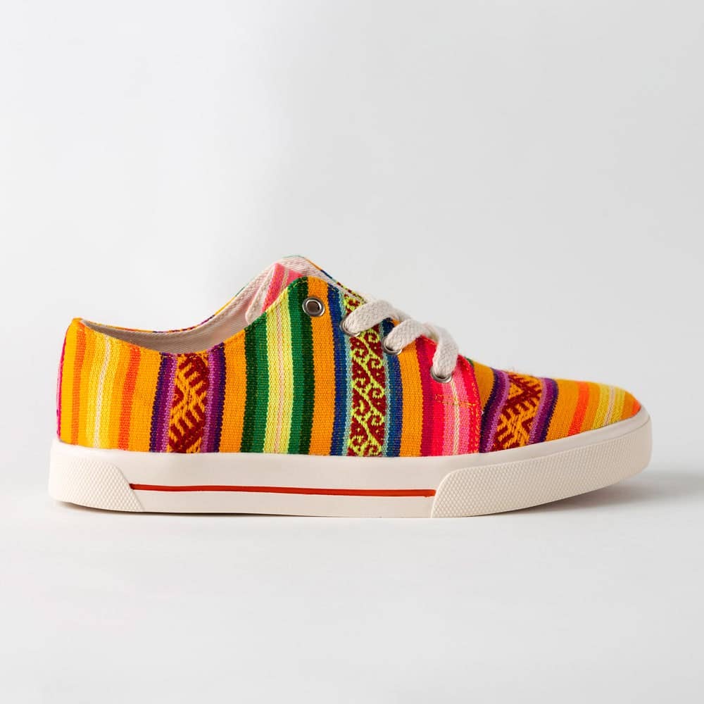 INKAO SHOES is a young brand that draws inspiration from the streets of the northern suburbs of Cuzco in Peru. A brand that originally transposes the ancestral universe of the Inca civilization into the modern and urban world. Inkao is contributing economically to help development and improve living conditions in the neighborhood of La Ensenada, a marginal and very poor area in northern Lima. Wearing Inkao Shoes is a real experience and a philosophy. 100% handmade work carried out with care by our craftsmen gives the assurance of a beautiful finish and great comfort with bright colors to make you faint. All the spirit of the ancient Inca civilization mixed with the ultra-trendy of the most modern capitals. INCA PATTERNS Shoes with a unique style made with typical Peruvian textiles characterized by traditional colors and Inca patterns that are loaded with meaning. RECYCLABLE MATERIALS This process makes it possible to reintroduce into the basketball production cycle similar materials that made up a product at the end of its life. NATURAL PIGMENTS Inkao favors the use of natural pigments derived from plants. SOLIDARITY TRADE We are committed to working in solidarity with our workshop and our suppliers. Inkao is involved to help communities develop. For each pair sold on our site, we donate €2 to the Mano a Mano Peru association.