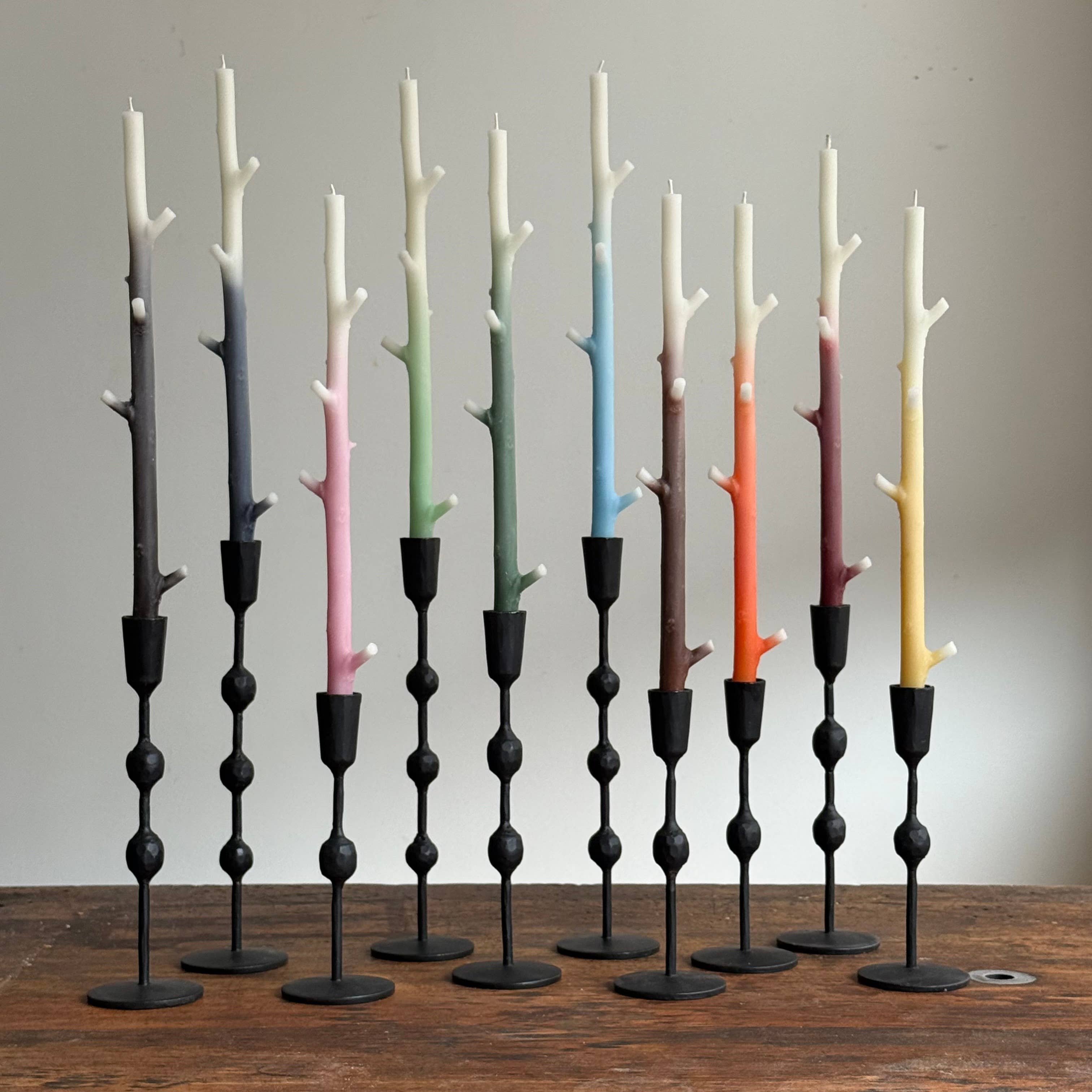 Stick Candles are 100 % Beeswax Candles that are cast from Sticks, Twigs and Branches by a small team of maker/chandlers in the Blue Ridge Mountains of North Carolina. The shapes that we cast are chosen for their beauty and detail, and also importantly, for their inclination to be used as functioning candles that perform properly, and maintain visual interest throughout their use. We forage shapes in Nature, and recreate our finds in wax sourced exclusively from apiaries in the United States, and Canada. Every small batch of wax is unique in composition : Start color and aroma of Beeswax correspond to a wide variety of factors, including but not limited to : climate, weather, habitat, bloom/flower profile, and the time of year of both the Bee and Human Harvest. The result is a wonderfully unpredictable range of hue and scent with a capacity to remind us of experiences and notions both familiar and exotic. Beeswax - though considerably more expensive than other candle waxes - is favored for its cleaner and longer burn, and some say : brighter flame. Our process is completely hand made from start to finish. Each step of the creation of our candles is executed with human intention and a desire to provide beauty and usefulness. It's our hope that Stick Candles reflect the wonder of the Natural World, and in that spirit, enhance occasions calling for candlelight.