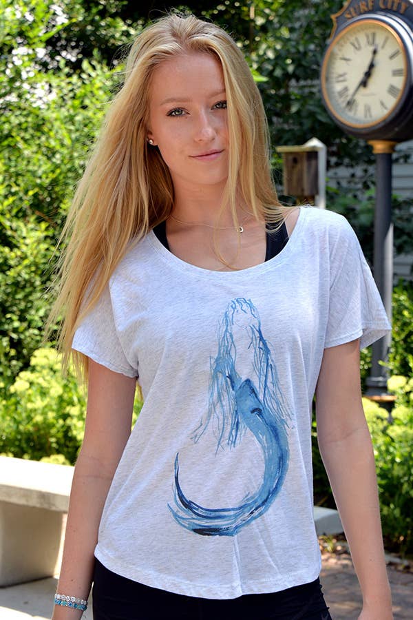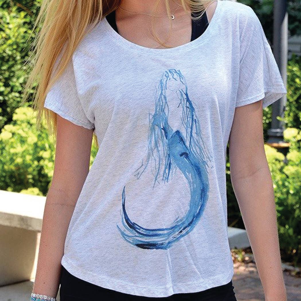 A mother and daughter team who create original watercolor designs that inspire and delight. Joanne has been painting in watercolor for 20 years, mostly selling in her own Gallery, Firefly located in Surf City NJ. since 2004. About 5 years ago she replicated her Blue Mermaid on a tshirt, After great success , she began her blue mermaid tshirt line! She convinced her daughter Emily, an accomplished artist when she was quite young, to join in her creative fashion endeavor. Emily has a great sense of humor and a marvel and almost childlike wonder for all creatures, nature and the sea. This is quite evident in the children's line she has created..