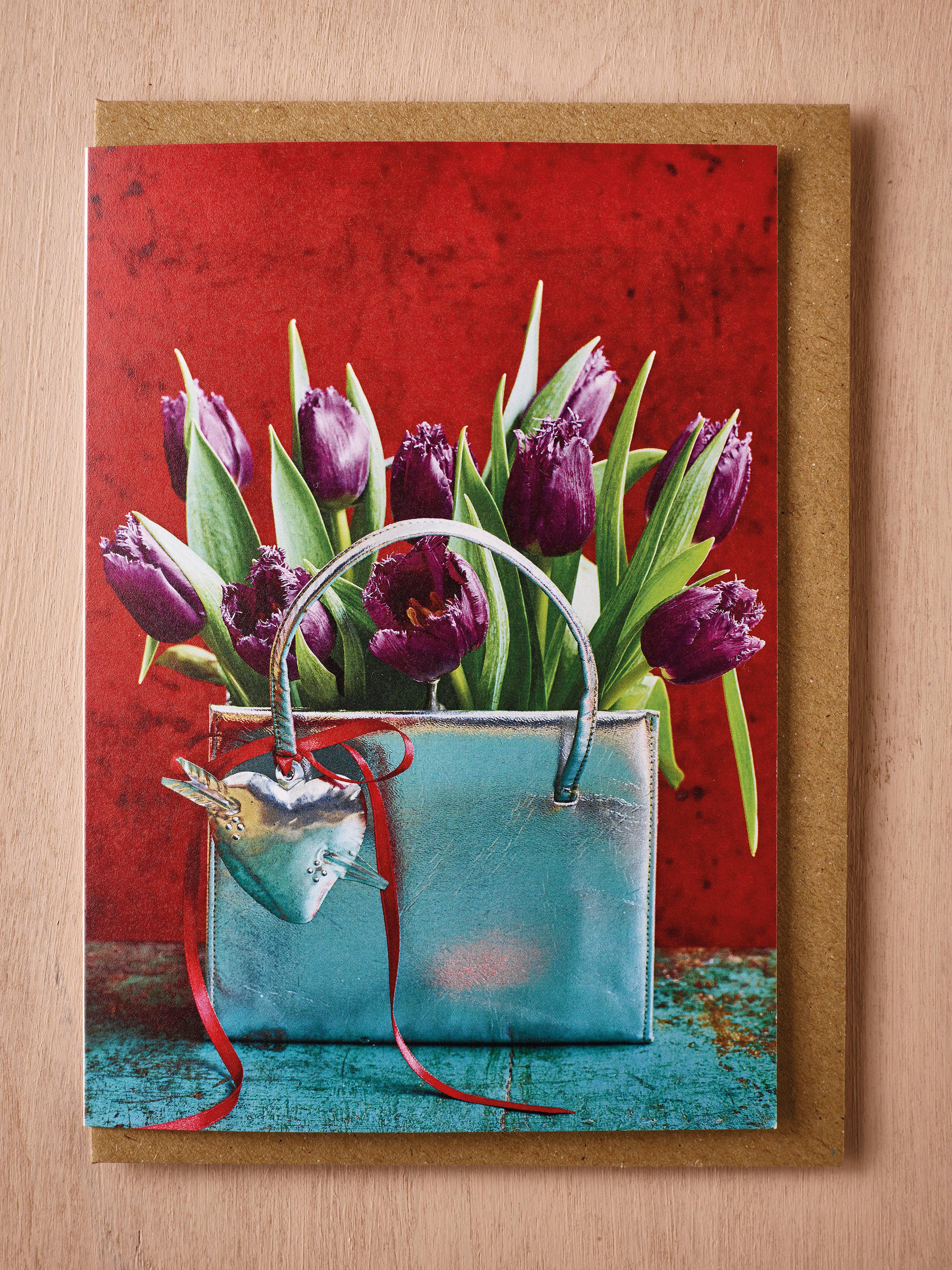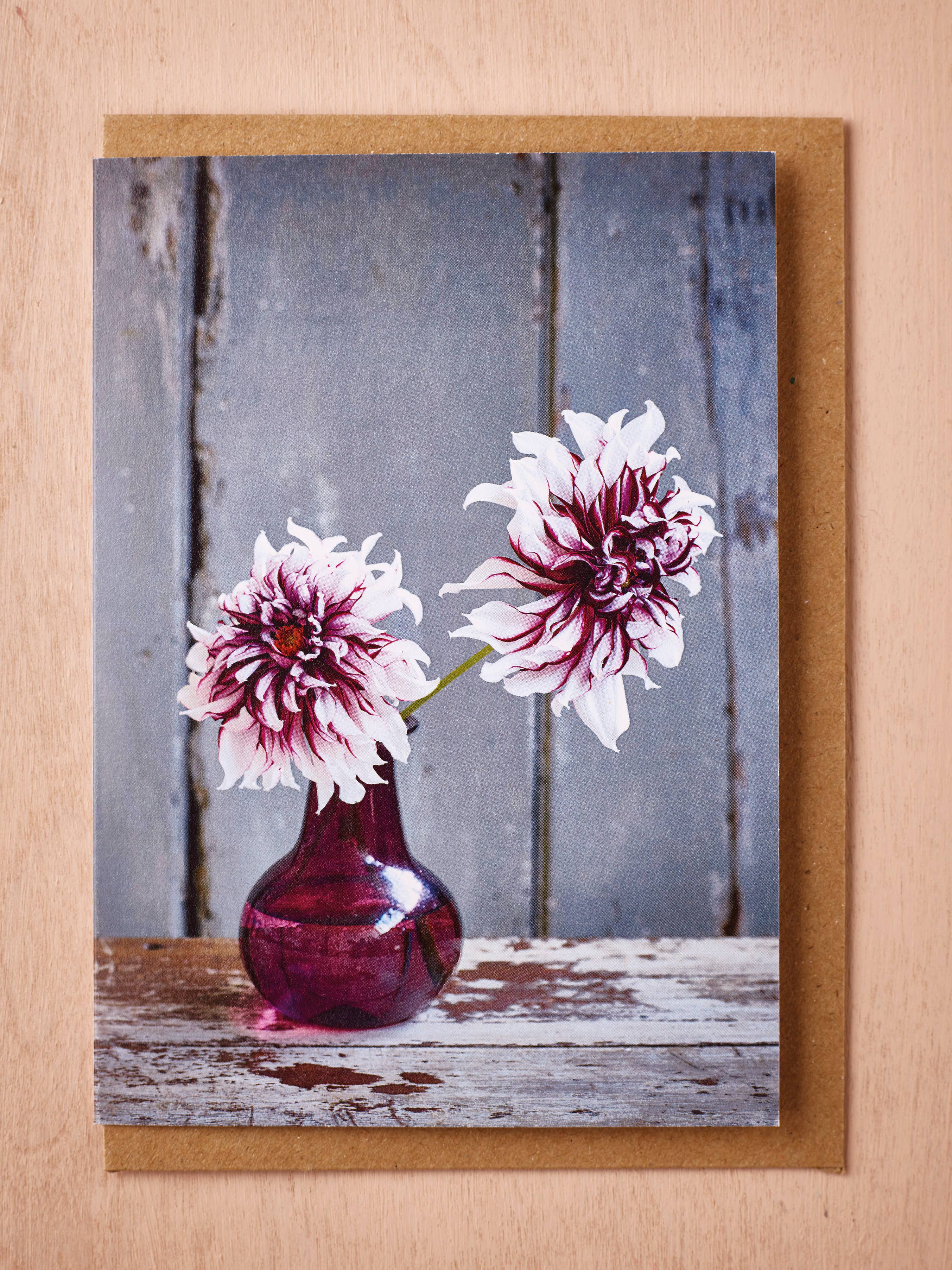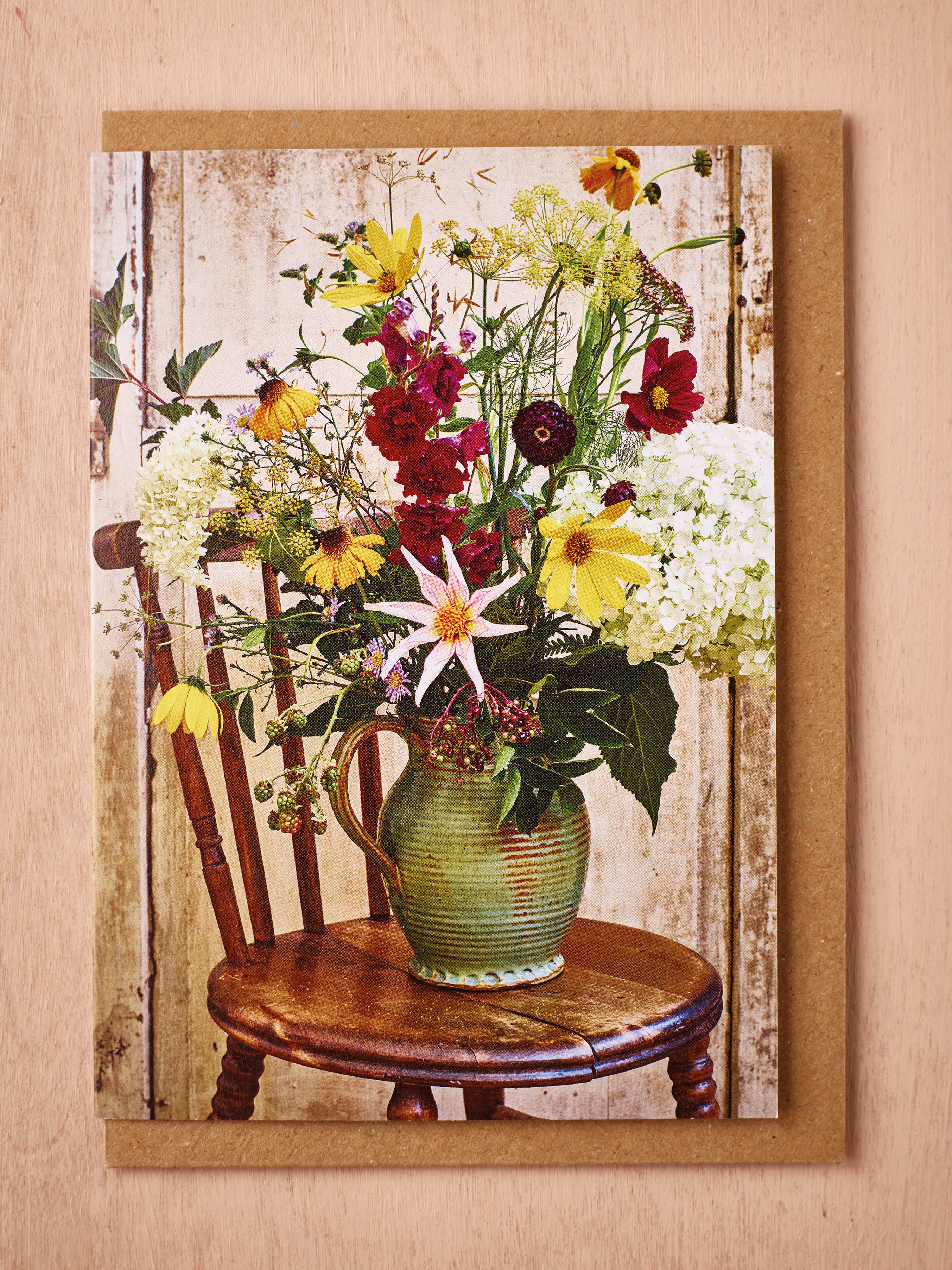 Our card range is a blossoming collaboration between two creatives. The colourful and eclectic flowery work of florist Jane Scott is captured forever by the sumptuous photography of Simon Smith. Just like fresh flowers these floral art photographic cards follow our beloved seasons. Each one has its own joyful story with the character of the flowers t unfurling on the back. They are eco-friendly and lovingly designed, styled and photographed in London. We’ve showcased our favourite signature blooms, created floral collages and styled fresh flowers in vintage vases, bags and pots. Our cards are A6 size, blank inside, and printed on recycled 350gsm luxury card. The clear sleeve is compostable and the envelopes are made from recycled Kraft paper.
