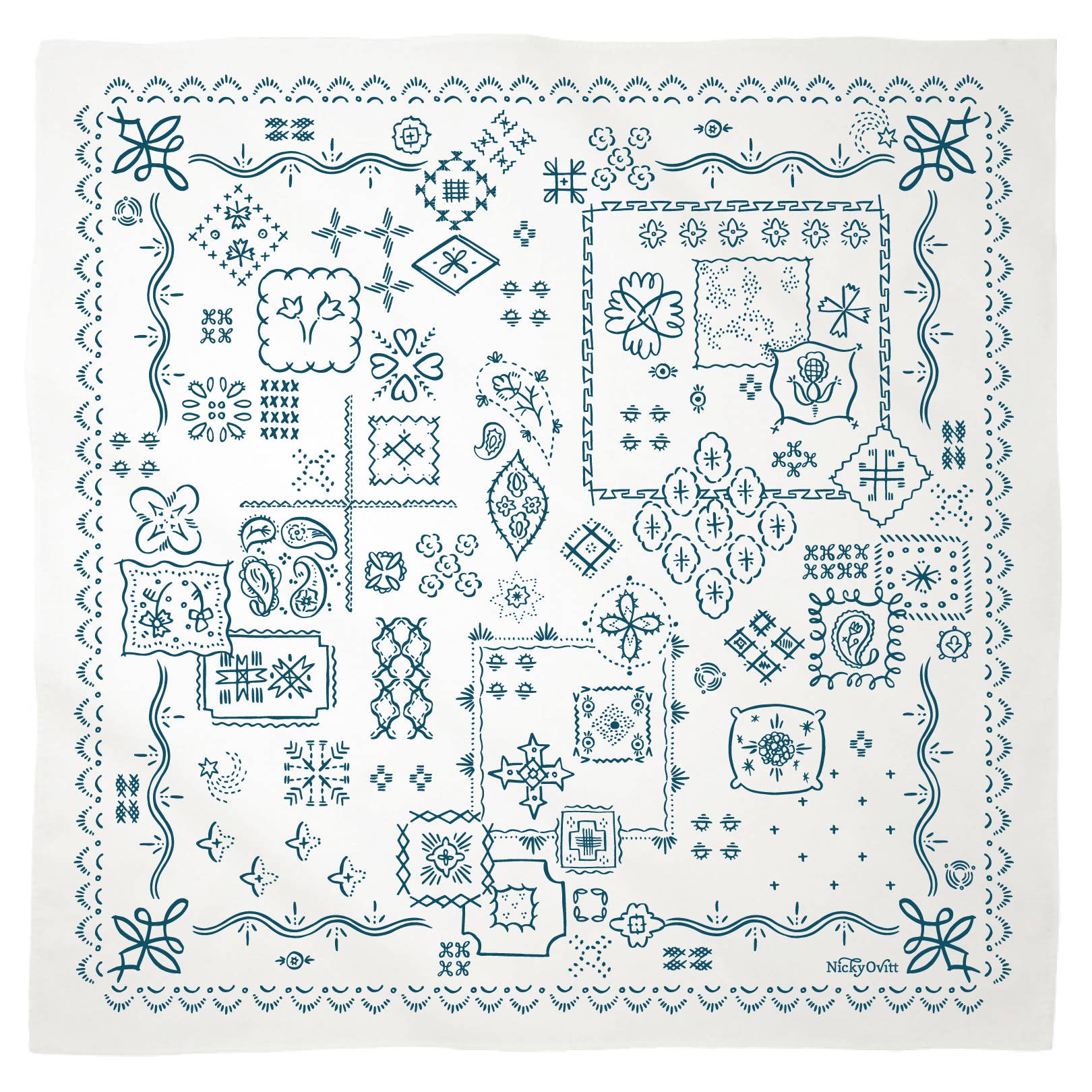With a life-long love for collecting and wearing vintage, Nicky Ovitt developed her first line of premium, unisex Bandanñas influenced by the tried-and-true original workwear classics. Her long career in design and illustration for private label fashion clients helped prepare her for developing her own lines. With a particular interest in souvenir-style and Americana, Nicky’s beautifully-packaged goods display prominently on store shelves and make exceptional gifts. Glittered cards, bright kitchen towels and her anchor Bandanñas are top sellers for selective shops. Dedicated to sustainably sourcing domestic labor and materials, Made in USA will always be an important foundation in her manufacturing decisions. Nicky Ovitt Gifts + Goods is a proud, hard-working, Latina, woman-owned business based in her hometown of Albuquerque, New Mexico. Collaboration clients include Los Poblanos Historic Farm and Inn, Mollyjogger, Bespoke Post and La Fonda Hotel.