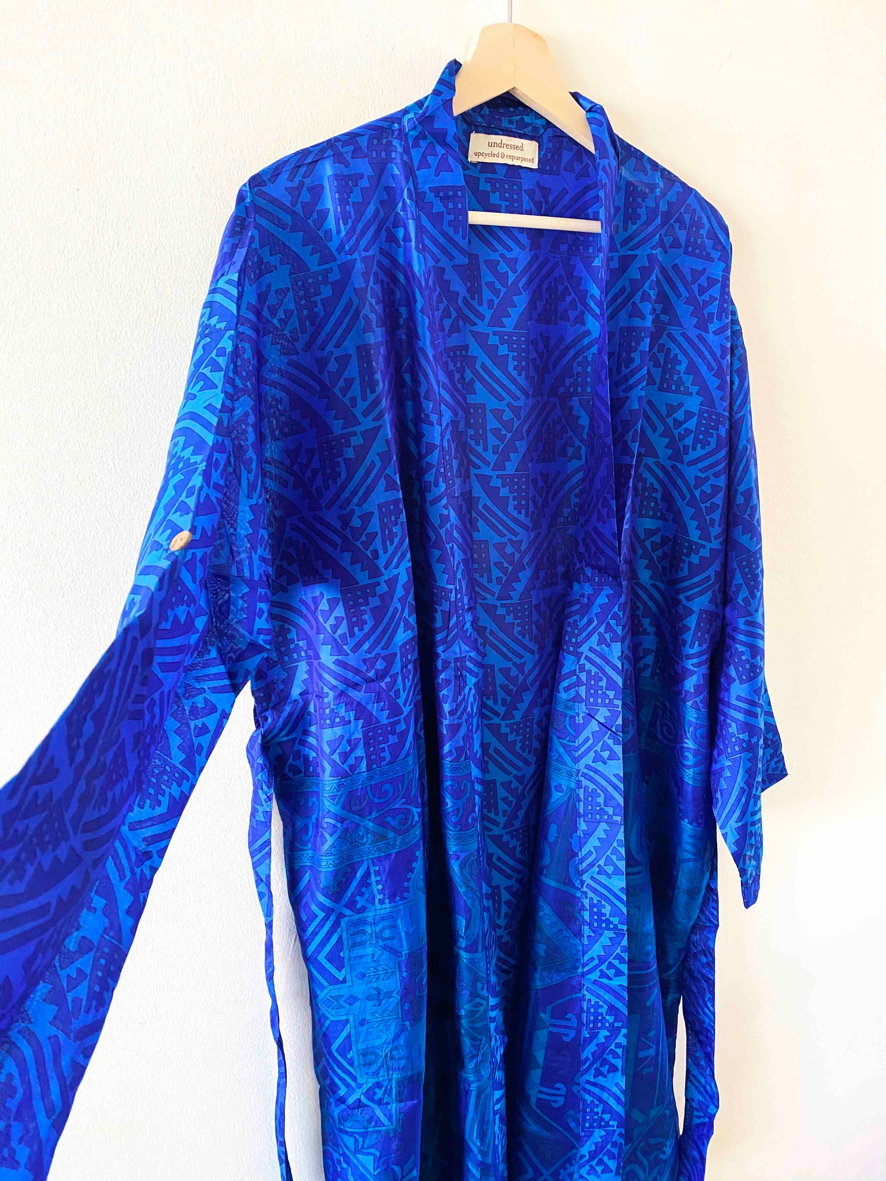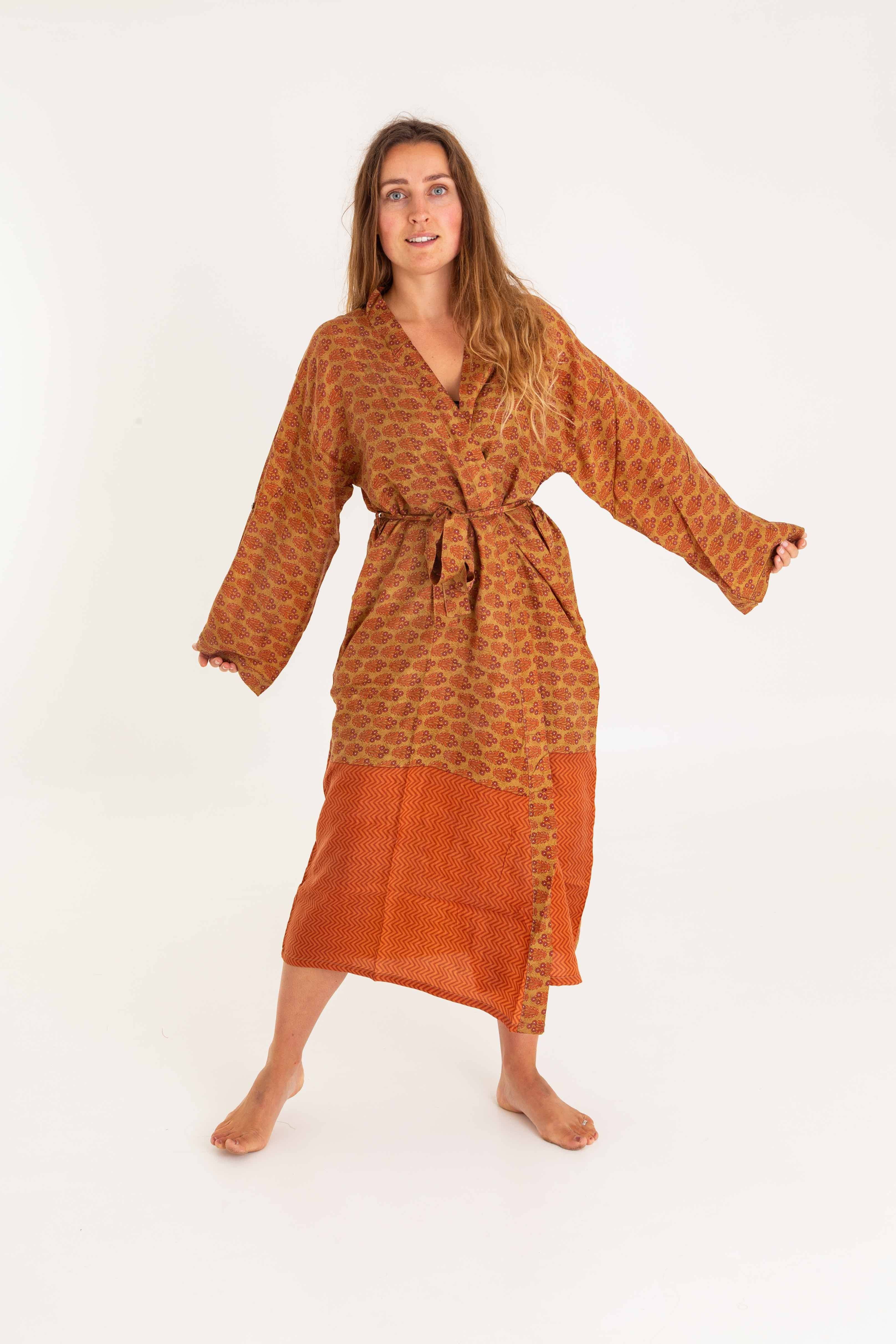 After designing lingerie for Gap in New York Kez moved to live in the Bahamas with her lobster Will. Here, they lived like islanders, went diving everyday and stayed warm in the sun. Living in the tropics, Kez found that all she would wear was her kimono. It would keep her cool, sun protected and covered up. "In every Bahama photo I am wearing my only blue kimono! Friends would joke about how much I wore it, I was in love with it!" So, after a year of Bahama life, Kez and Will moved to Australia to surf every day, live in a van and design for some epic brands. Still wearing her fave kimono, Kez decided it was now time to start building her brand! I couldn't think of a name so to start with my brand was called "The Kimono Company" Leaving Australia, Kez travelled to India in search for a factory who could bring her designs to life. Whilst walking through Rajasthan, Kez fell inlove with the vibrant and lightweight saris. If only they could be made into kimonos. Kez found her maker and was told that she could upcycle saris that were headed to landfill! Kez had her first market in Bristol with one rail full of kimonos, no card machine and no business cards. But hey, it was a hit and it gave Kez the confidence to continue following her dreams. To be continued....
