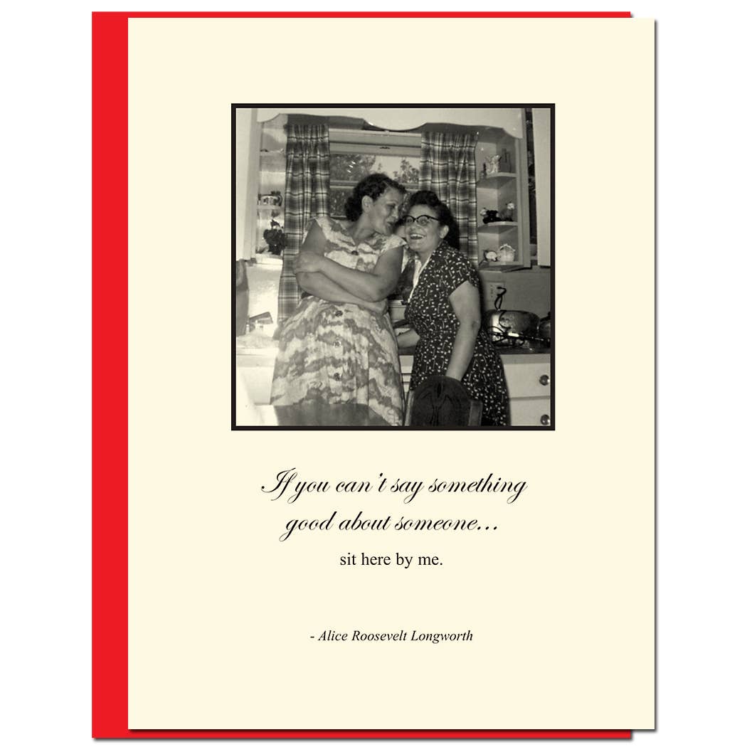 Bloodshot Press was originally created by screenwriter Alicia Gronke. Alicia desperately turned to writing when her kids were on a particularly neurotic spree during Spring Break 2002. They were bored and doing the usual sibling thing: "She's LOOKING at me!" "He's pulling my HAIR!" Alicia could have followed the advice of any number of parenting books and made an attempt to mediate their dispute. Fortunately, she instead chose to tune them out and start writing. The sarcastic, occasionally bitter, often emotional results were the first Bloodshot cards. Alicia took these fruits of her labors to a local card shop. The owner took a long look. Her response? "What took you so damn long?!" In 2010, Mackenzie Jeans, owner of fellow card company Allport Editions and friend of Alicia, adopted Bloodshot Press. Since then “BS” has become known as the naughty little sister of the Allport Editions family. Using mostly family photos and a few dashes of wry wit, Bloodshot your go-to line for wicked humor. As Alicia always says: “laughter is contagious—infect someone today!”