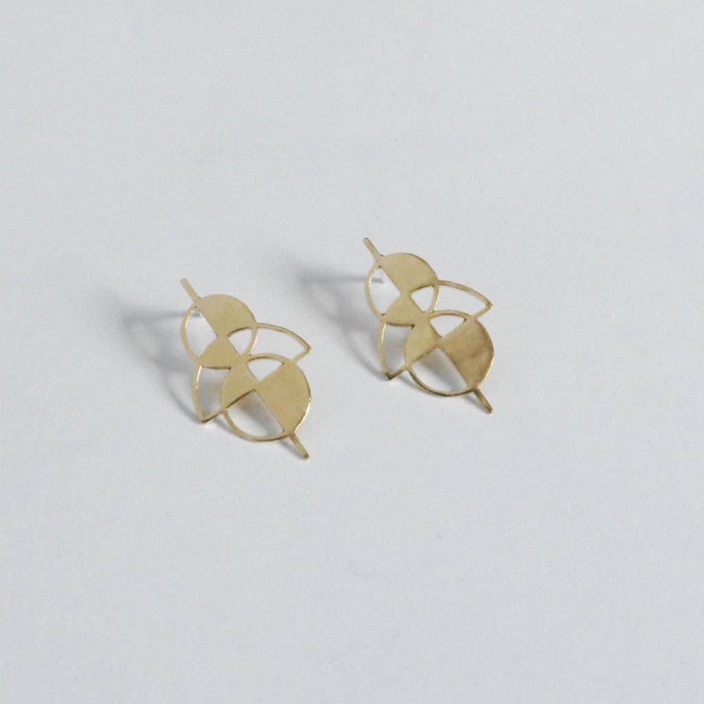 Using playful shapes and impactful lines, jeweler Sophie Silverstein of Take Shape Studio designs jewelry inspired by geometric and abstract symbols, tactile experiments, art, and nature. Sophie’s love for jewelry and fashion started early; in preschool she would layer skirt over skirt, and necklace over necklace to achieve the broadest and most colorful twirl. She loved playing with texture and color, a passion that continues today. While crafting persisted throughout her life, her real jewelry journey started in 2014 when she took a metalwork class at Scintillant Studio in San Francisco, where she immediately started renting studio space and eventually taught. She now has a studio in Berkeley where she designs and hand makes each piece with love and care. Her business values include sustainability, inclusion, quality, and creativity. She incorporates timeliness designs into current trends, making thoughtful heirlooms that inspire confidence and joy.