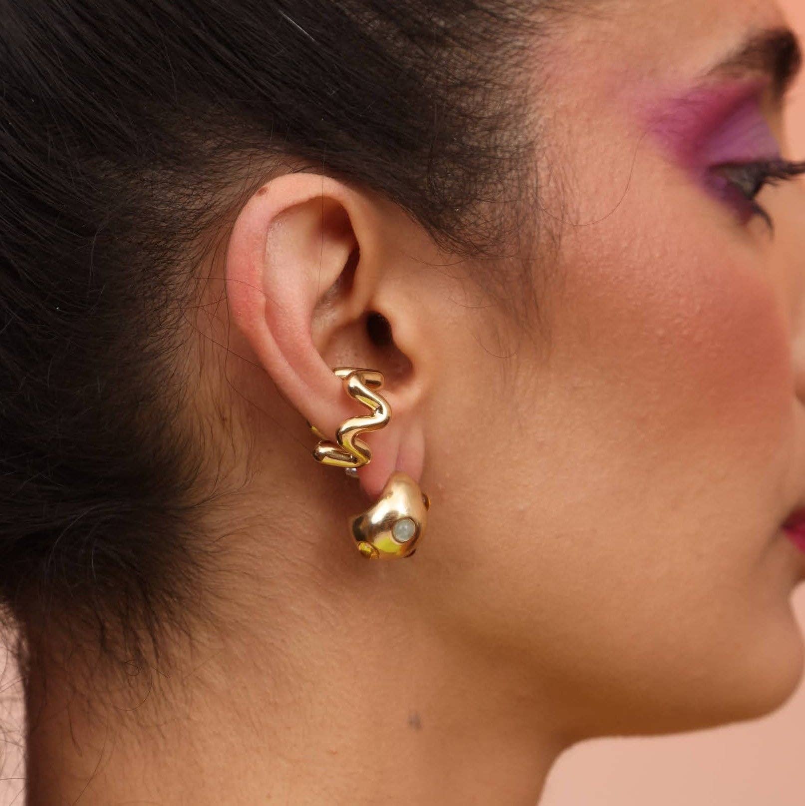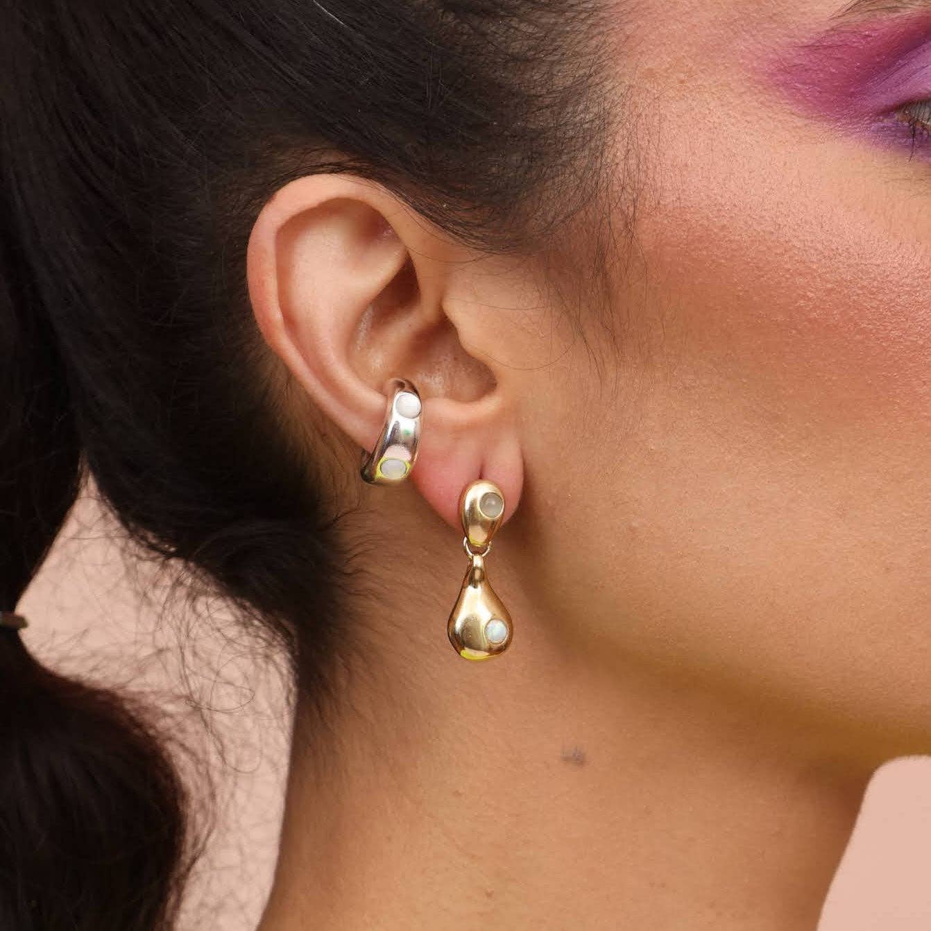 Using playful shapes and impactful lines, jeweler Sophie Silverstein of Take Shape Studio designs jewelry inspired by geometric and abstract symbols, tactile experiments, art, and nature. Sophie’s love for jewelry and fashion started early; in preschool she would layer skirt over skirt, and necklace over necklace to achieve the broadest and most colorful twirl. She loved playing with texture and color, a passion that continues today. While crafting persisted throughout her life, her real jewelry journey started in 2014 when she took a metalwork class at Scintillant Studio in San Francisco, where she immediately started renting studio space and eventually taught. She now has a studio in Berkeley where she designs and hand makes each piece with love and care. Her business values include sustainability, inclusion, quality, and creativity. She incorporates timeliness designs into current trends, making thoughtful heirlooms that inspire confidence and joy.