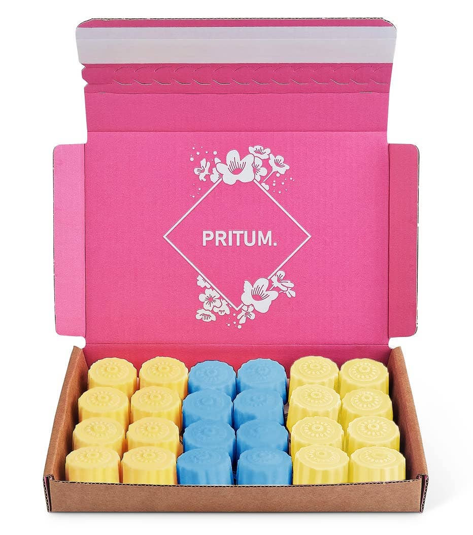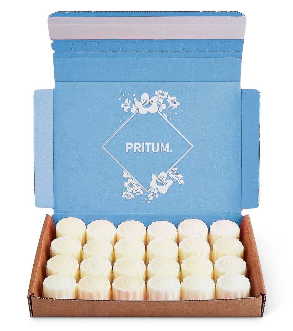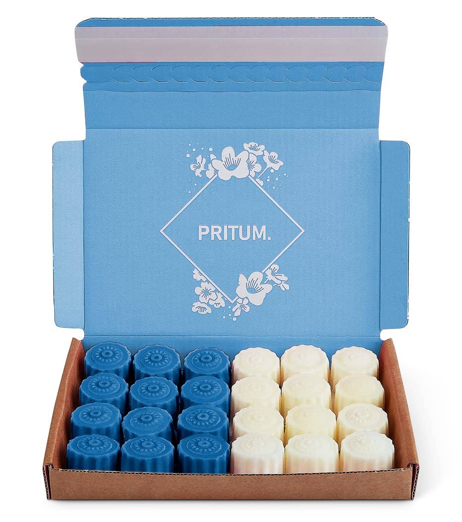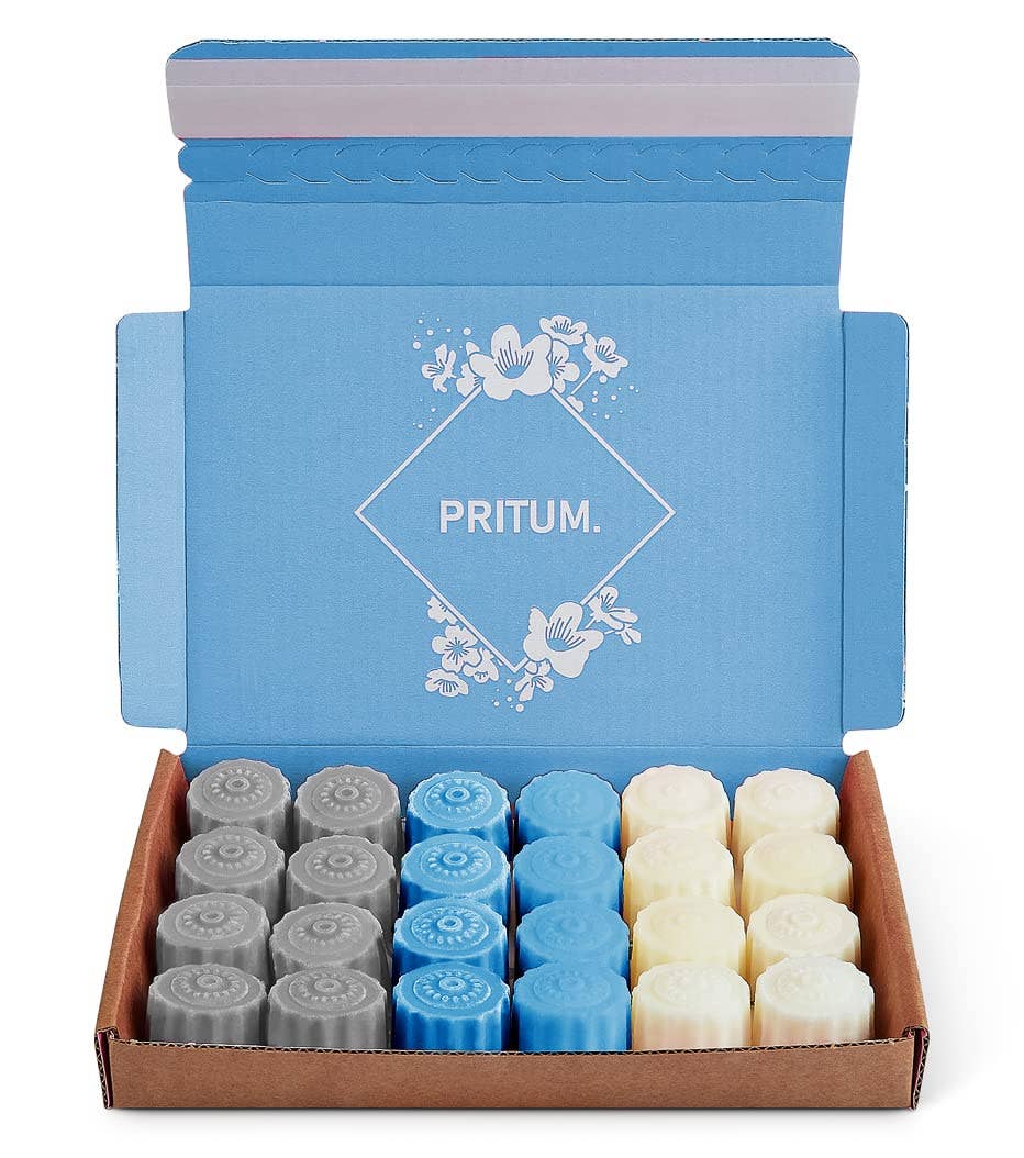 At PRITUM. we strive for high quality and design. Soy melts have been a popular choice for wax melts historically, however with our vegetable wax blend, we have achieved an excellent scent throw which we hope you will love. o 100% Recyclable Gift Box And Packaging. Perfect As Present. Using cardboard and papers, we are plastic free whilst still giving a high-end polished product. o Delivered In A Gift Box Which Can Be Used For Storage. Perfect for storage taking minimum space, there is no need to remove from the box, saving you the cost of wax melt jar holders. Box and melt colours may differ from image. o Orders Designed To Fit Through Your Letterbox. We have purposely designed our gift box to fit through the UK standard letterboxes making it easier for customers to receive single orders. o Made From Vegetable Wax Giving Excellent Scent Throw Moving away for traditional Soy and Paraffin wax, PRITUM. used a coconut & rapeseed blend which is vegan friendly. We selected this wax as we find it gives an excellent cold and hot scent throw.