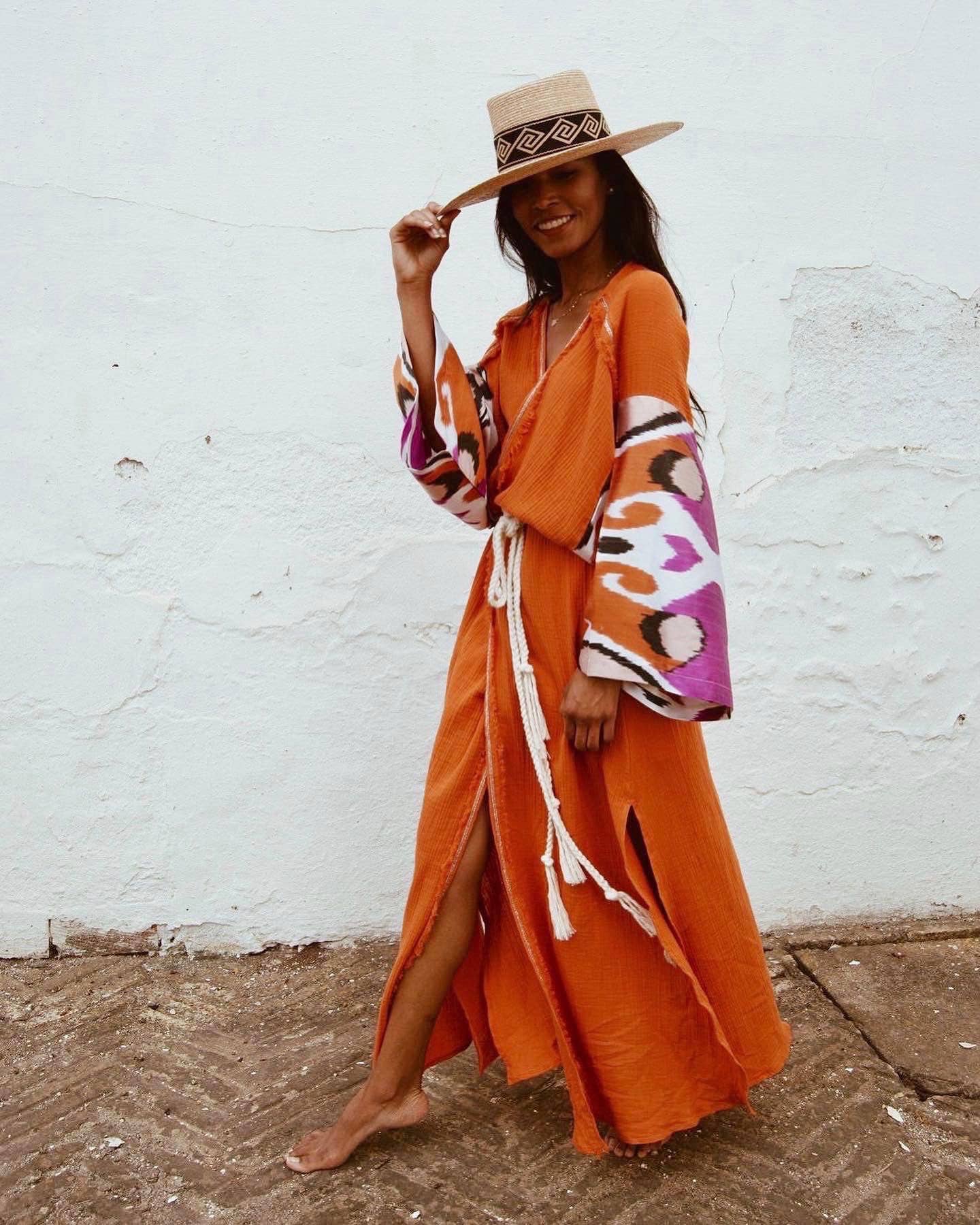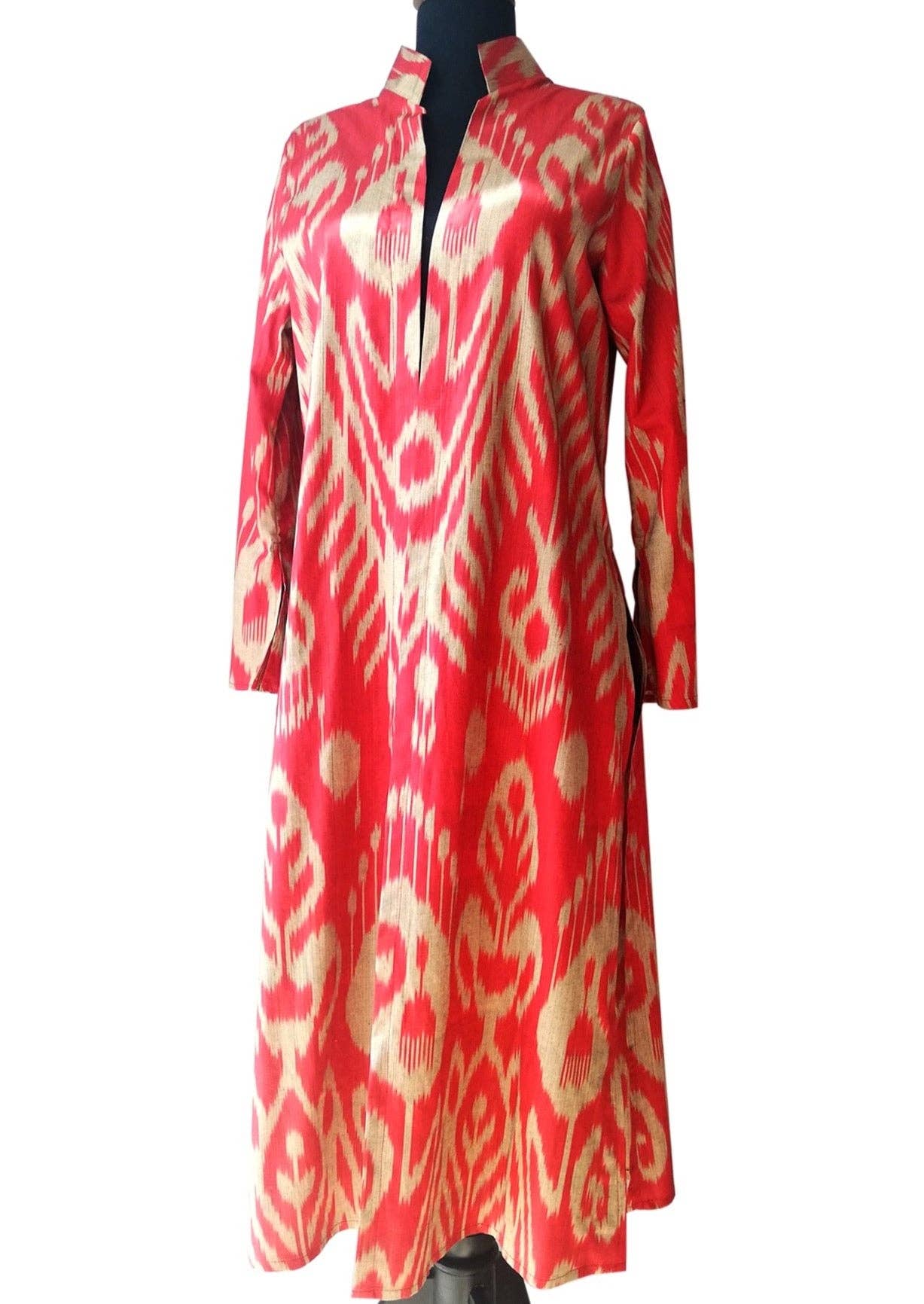 Authentic hand woven wholesale and retail silk ikat women's bags and silk ikat caftans, hand woven caftans, clutches, ikat fabrics, ikat sling bags, ikat cushions, suzani and ikat lampshades. Ikat bags manufacture and supplier.