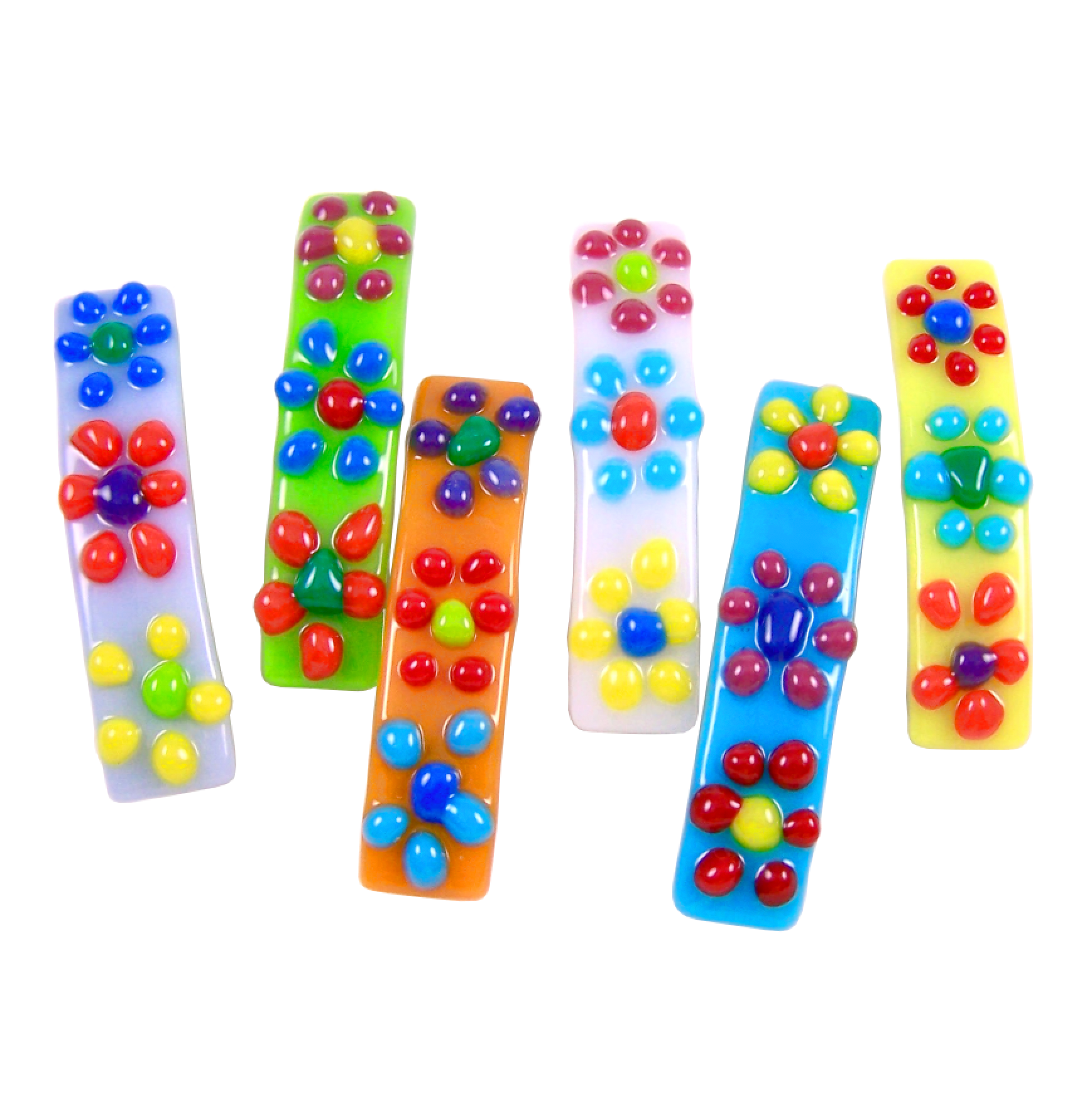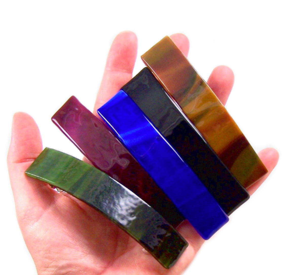 Glass Town USA is the natural outflow of "glass geek" enthusiasm. This is how it began: In between freelance jobs in art conservation, we bought a kiln. It was meant to be a hobby. No money left, but we craved more glass. Beautiful shiny art glass! So many styles! Ripples, swirls of color, iridescent, DICHROIC!!! We were addicted. We ended up selling completed glass pieces to get more glass. Ahhh… all for the love of the glass. And so it remains. We buy glass in bulk. Hundreds of sheets, colors and styles. We share this love, in the form of our gorgeous glass pieces, with the world, and simultaneously feed our passion. Of course you will share in our love and enthusiasm. The prices are fair, and people buy several at a time. The barrettes and jewelry sell well. (When it fits, buy them in every color! And we make lots of sizes and colors!) Thank you for visiting us here on Faire~! Charities: Because one of our founders is a returned Peace Corps Volunteer (serving in West Africa), we are aware of the drinking water problem in the Sub-Saharan region. Part of our proceeds goes to clean water action in Africa. We also have a heart for the parentless children in Mozambique. We contribute to help feed, clothe, and educate the youth in that region. Locally our passions and donations turn toward homeless animals and artisans who have had disastrous emergencies (via cerf+, the artisans safety net). When you shop at Glass Town USA, you help us help these causes.