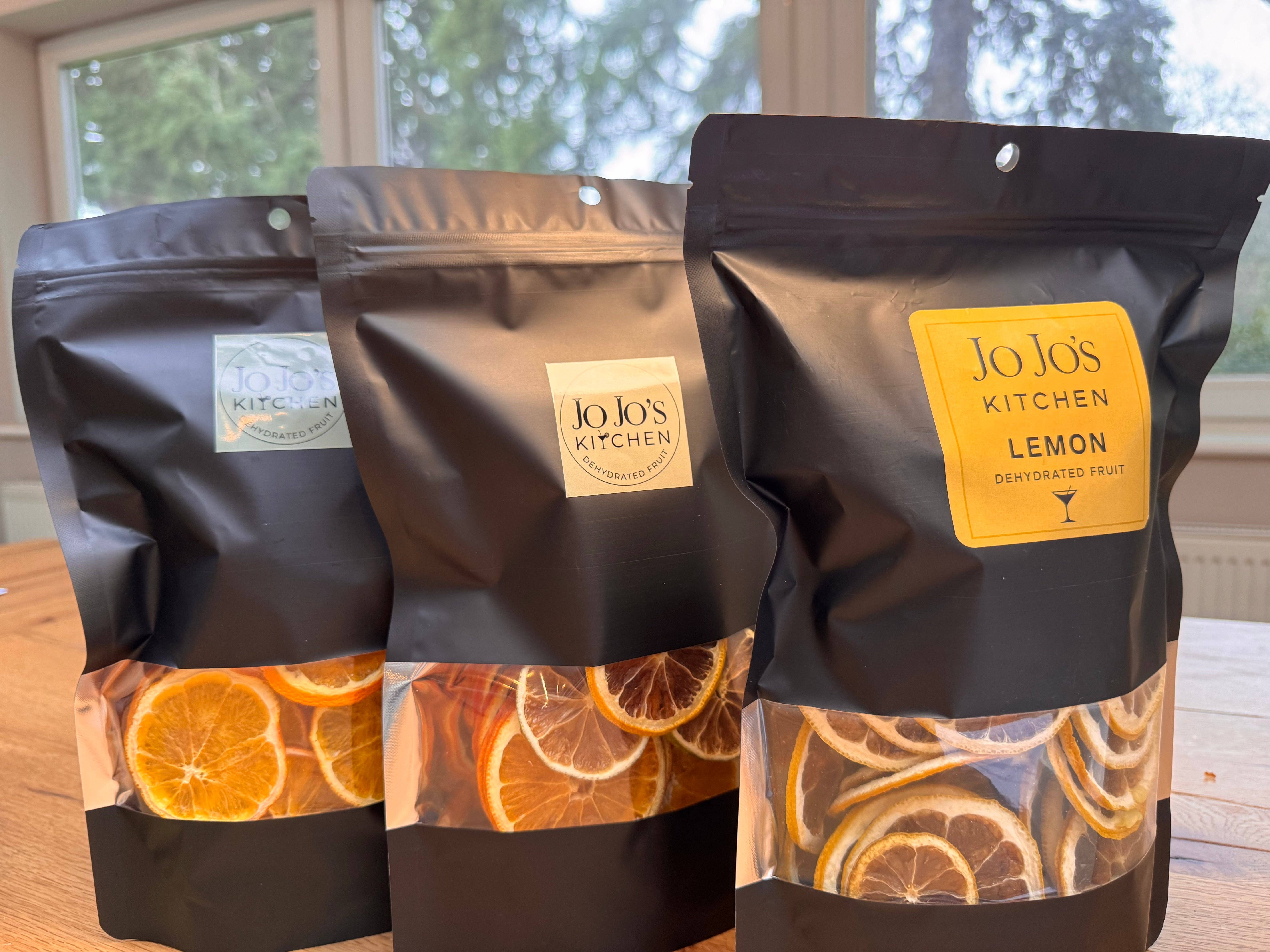 Jo Jo’s Kitchen is a small-batch producer of premium air-dried fruit, created for retailers looking to offer something both beautiful and practical. Founded after a personal shift toward slower, more intentional living, Jo Jo’s Kitchen was built around one simple idea: great food doesn’t need to be complicated. By gently air-drying fresh fruit in small batches, we preserve natural flavour, colour, and aroma — without added sugar, preservatives, or unnecessary processing. Each slice is carefully hand-selected, hand-sliced, and slowly dried to lock in vibrant taste and visual appeal. The result is a versatile product that works effortlessly across multiple categories: cocktail garnishes, hot and cold drinks, cheese boards, baking, gifting, and natural snacking. For retailers, Jo Jo’s Kitchen offers strong shelf appeal and easy selling points. Our products have a long shelf life, require no refrigeration, and come in pre-portioned packs that reduce waste for both store and customer. They’re lightweight, easy to merchandise, and naturally lend themselves to impulse purchases, gifting, and cross-selling with spirits, mixers, cheese, and home entertaining ranges. Customers are drawn to Jo Jo’s Kitchen for its simplicity and quality — 100% fruit, thoughtfully prepared, and ready to use. No chopping, no mess, no waste. Just a small, intentional upgrade that makes everyday moments feel considered. Jo Jo’s Kitchen products are created to be useful and feel premium.