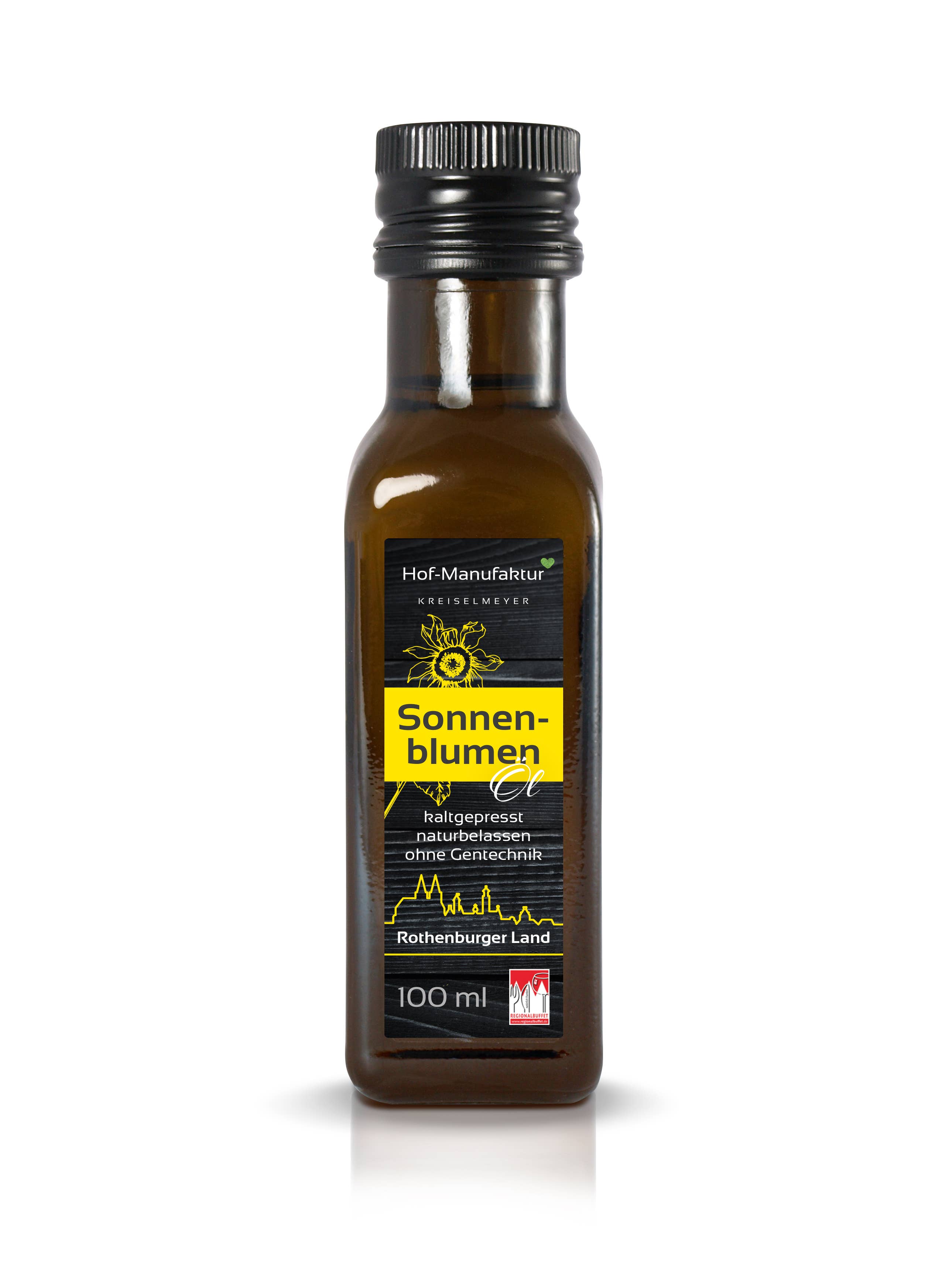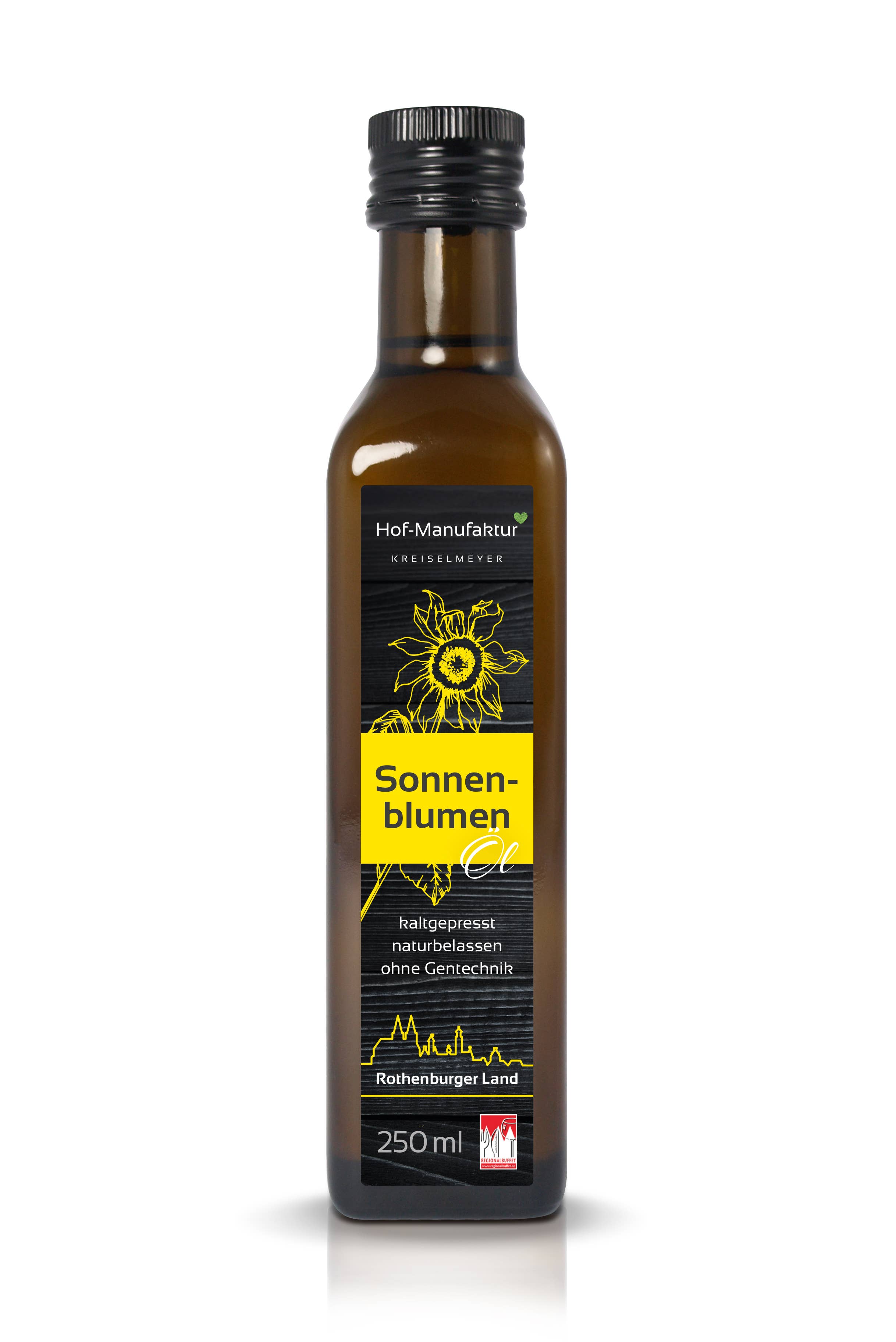 Welcome to the farm manufactory Kreiselmeyer Hello, greet you! We are the Kreiselmeyer family. Like the domestic oil plants that we use in our farm factory to produce our high-quality cold-pressed oils, we too are firmly rooted here in the region, in the Frankenhöhe Nature Park. The cultivation of oilseeds is a tradition in our family business. With the production of cold-pressed oil specialities, we set out in 2017 to break new ground. In two generations, we grow the plants ourselves, harvest and process them on our farm. With modern screw presses, the seeds are gently processed in our own farm factory. In this way, we ensure that the natural taste and valuable ingredients are fully preserved. Homeland love that you can taste. Try it yourself!