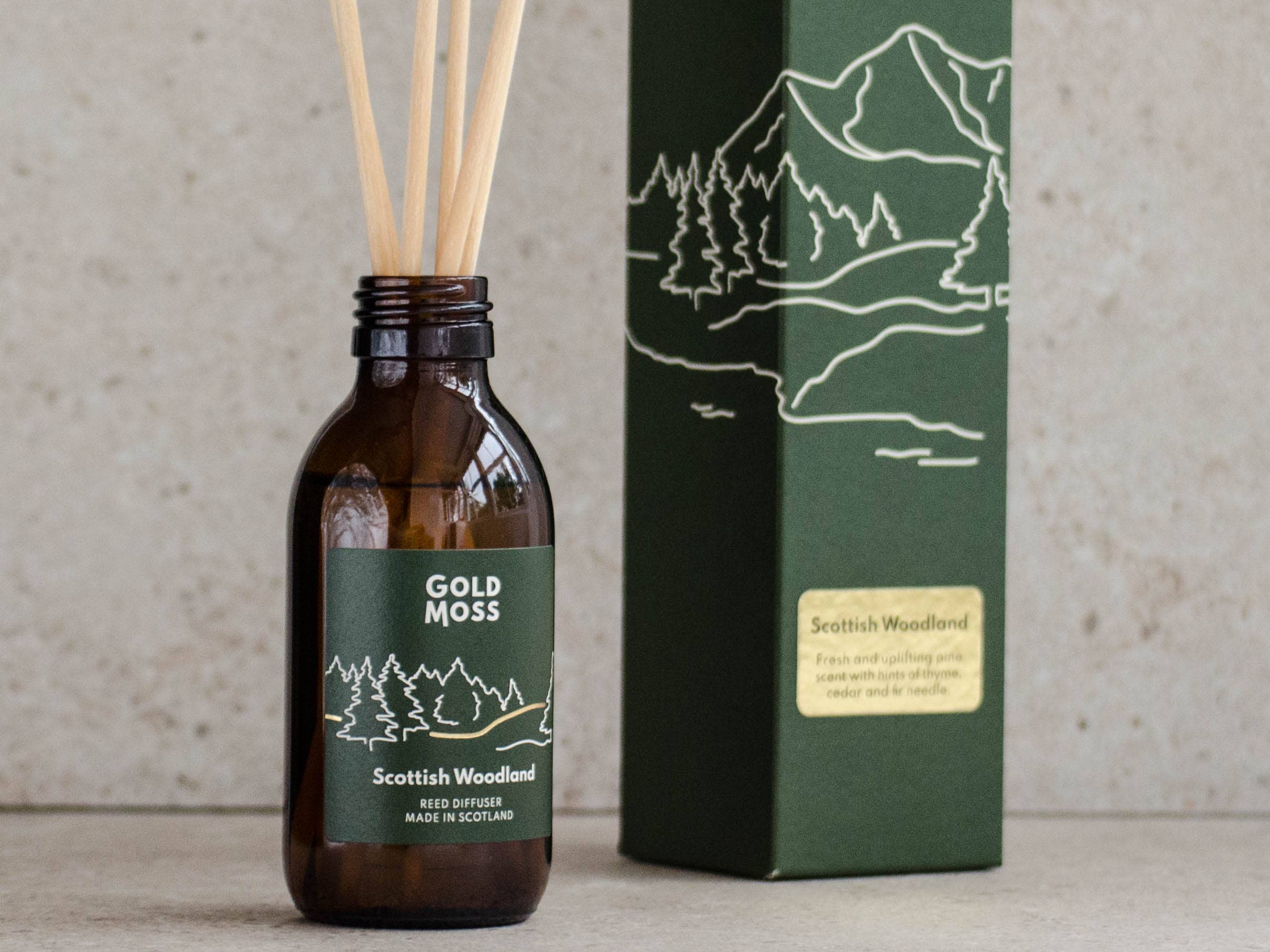 Combining a love for home comfort, a desire for adventure and a passion for fragrance, Gold Moss creates home fragrance products to enhance your space and connect you with nature. Gold Moss is an independent home fragrance company based in the Scottish Highlands, offering a selection of hand poured soy wax candles and reed diffusers. Only the highest quality ingredients are used to bring you the best results. As part of their commitment to sustainability Gold Moss plants 10 trees for every sale. When you order from Gold Moss, you will notice that caring for the environment is a priority. From the natural soy wax used at the start of the candle making process to the plastic-free packaging that safely delivers their products, every step is carefully considered to give the best possible experience whilst minimising the impact to the environment.