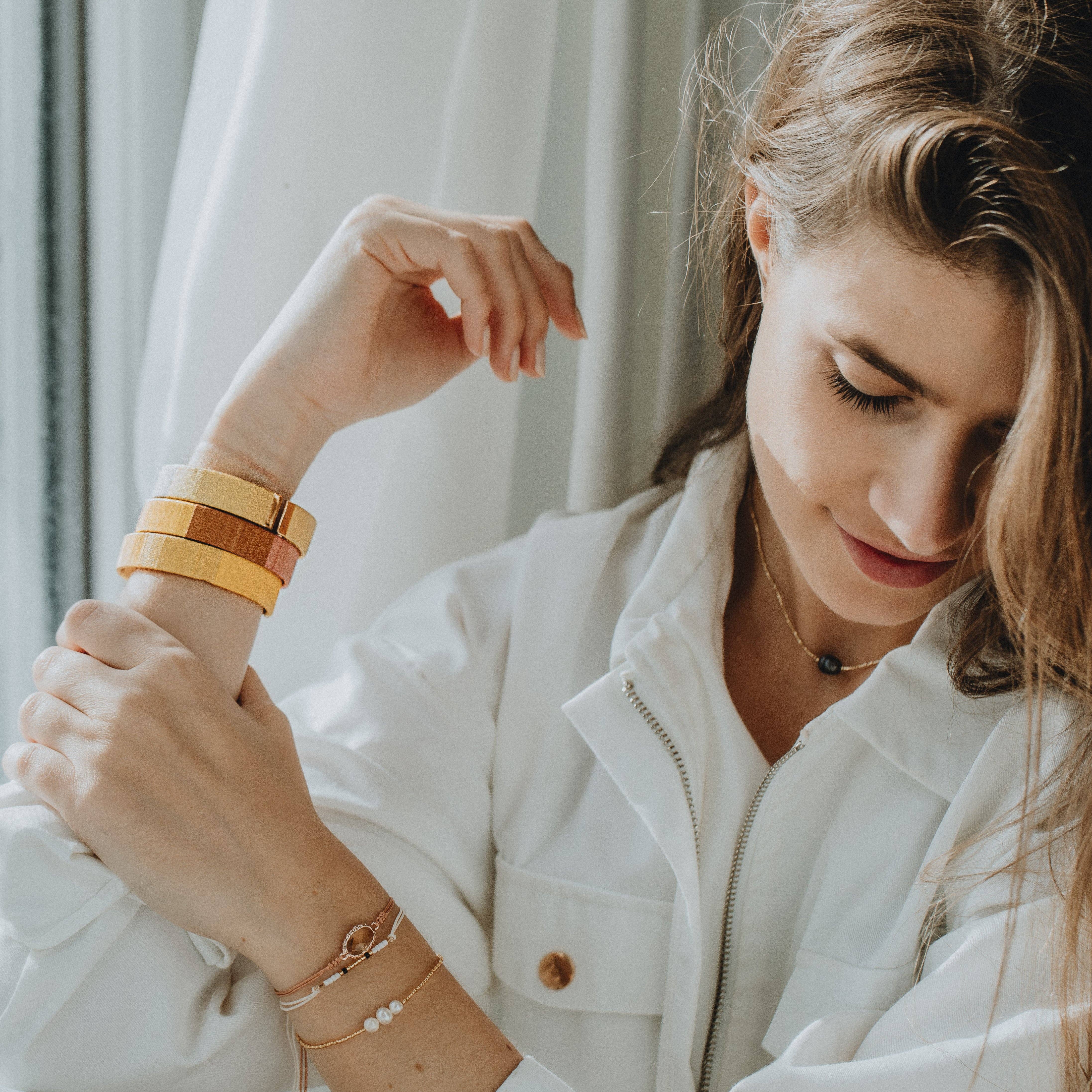 TAO RINGS, THE Lilie and Koh SIGNATURE COLLECTION SINCE ITS CREATION IN 2016 White sand beach and turquoise sea... Lilie & Koh jewelry takes you to the islands. Mix and Match, TAO bangles can be worn alone or accumulated endlessly according to your desires: choose from 40 variations in warm, soft or acidic colors to create the combo that suits you. Chic and bohemian bracelets that are on your wrists as a foretaste of summer! After ten exciting years in the world of jewelry, then a world tour, a desire became obvious: the desire to combine two passions and create jewelry that is sunny & imbued with the vibrant colors of the islands. This is how Lilie and Koh was born: “Lilie”, I am the creator, and “Koh” means island in Thai. Have a nice trip to the sunny world of Lilie and Koh...