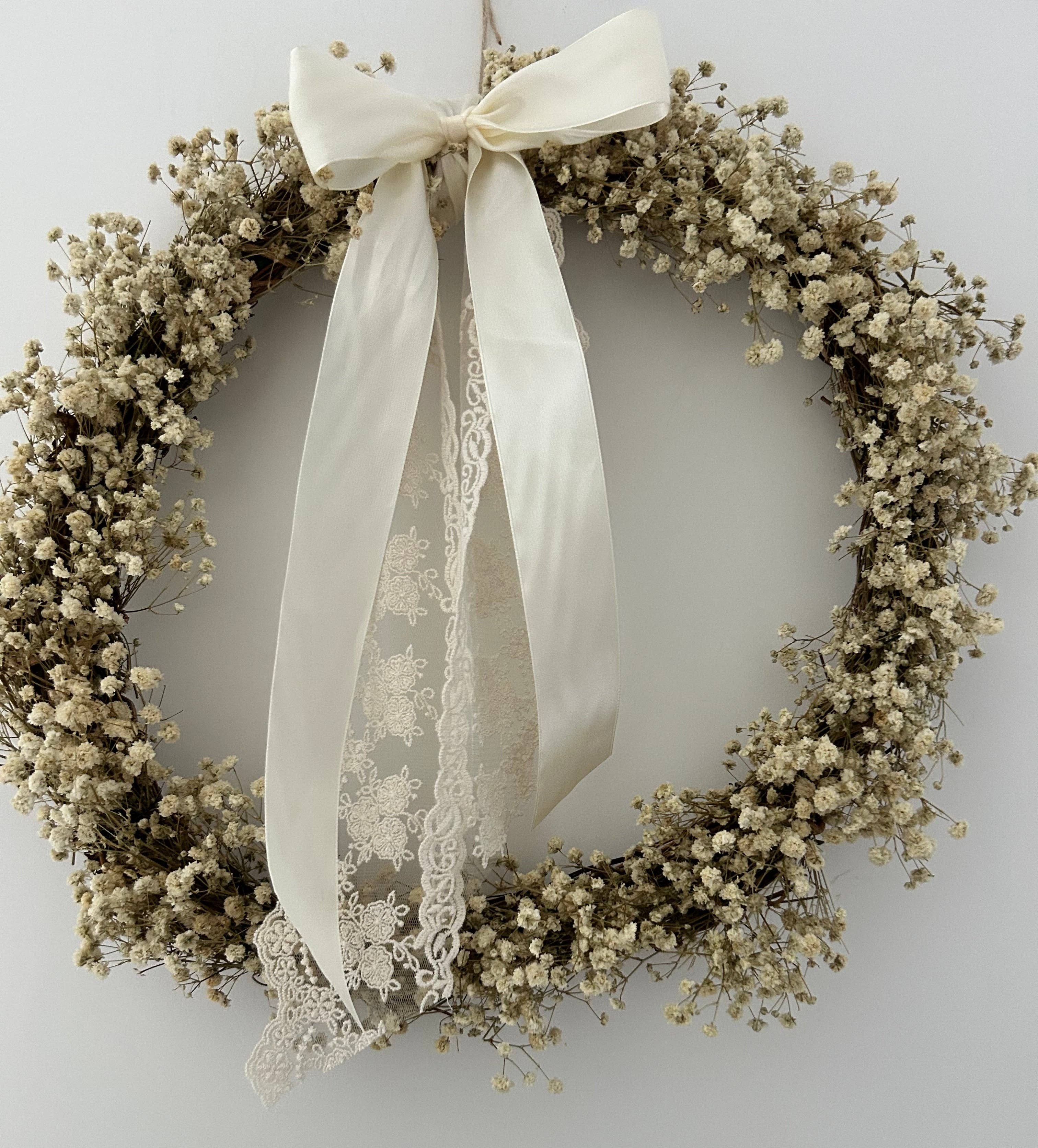 Handmade with love in the Cotswolds by Sophia… Cotswolds Willow Wreaths are made with Gypsophila’s and Daisies, we also do other designs with Gypsophila’s and different flowers, please take a look at our menu page for all our wreaths designs
