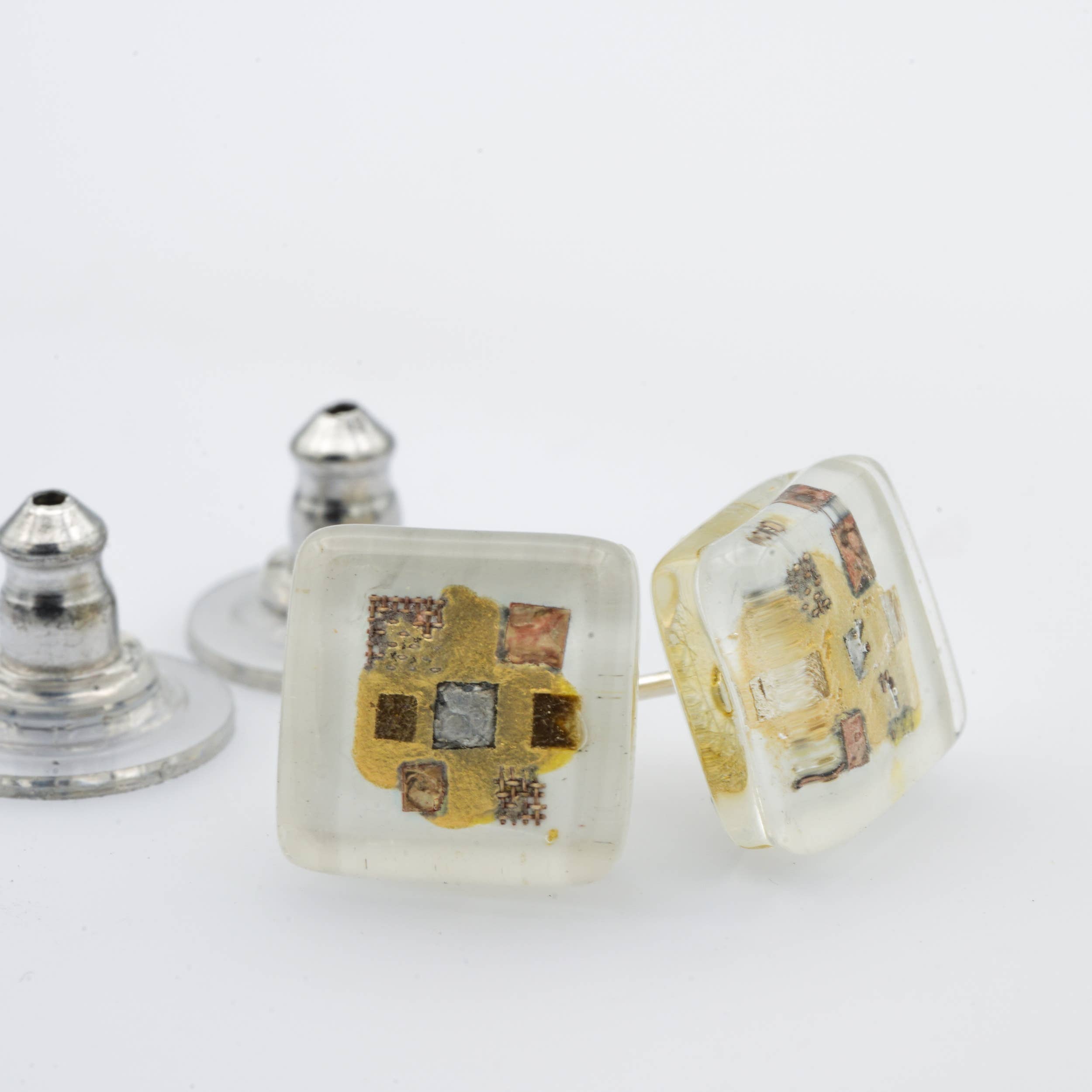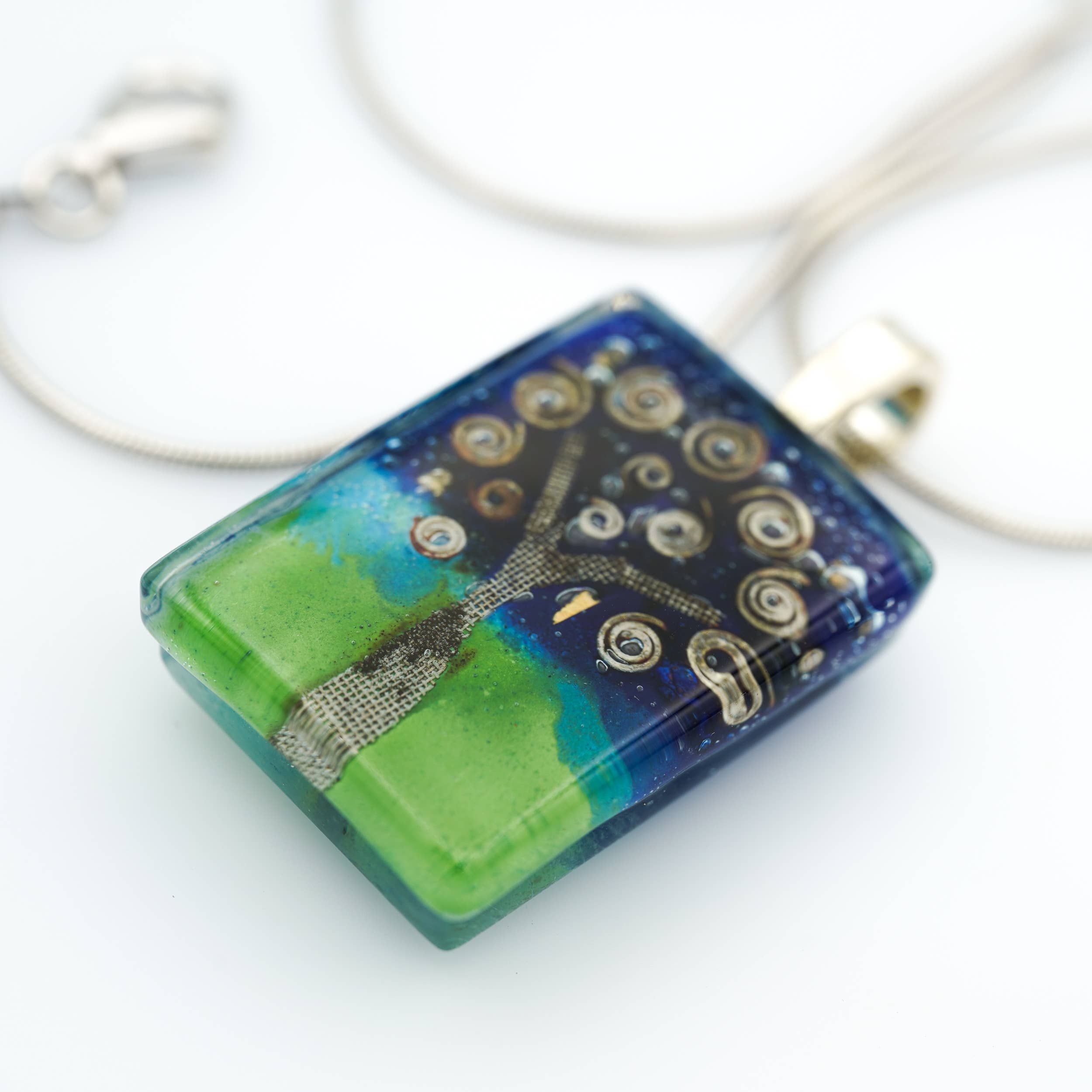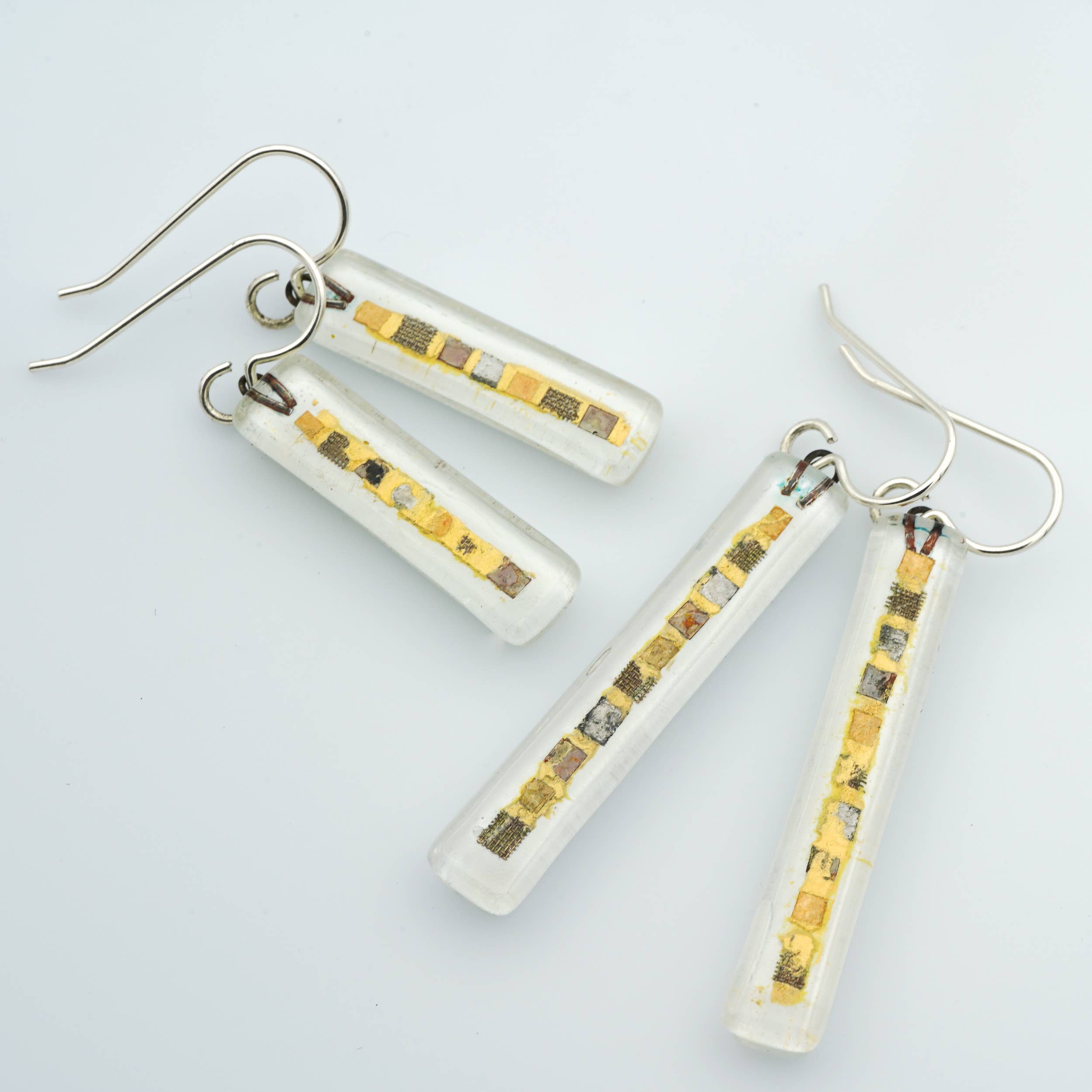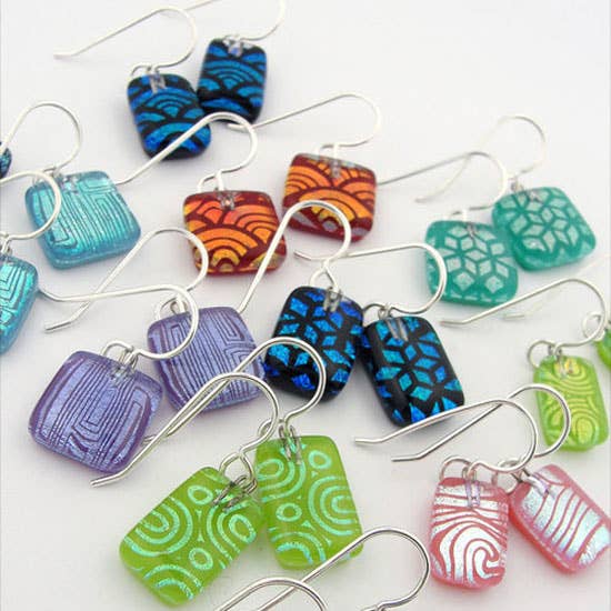 We met in Andalucia. Partly because of a dog. And we traveled all over Spain that first year and as we went we read a book out loud together called "Momo." ❊ ❊ ❊ Later on, when we started working together and putting names to things, the title of that book resurfaced, bubbling with meaning. If you'd like to know why, you should read it yourself. But without giving it away: It is an allegorical story that asks big questions about work and time and modern life. ❊ ❊ ❊ Our designs are made in small batches from our live/work abode in Western Mass. Our studio is powered by 100% solar energy, and we use up-cycled float glass whenever possible (primarily in our GLASS CANVAS line). ❊ ❊ ❊ The work is broadly divided into two techniques: (a) the GLASS CANVAS line, where layers of painted enamel and metal collage are trapped between two layers of glass; (b) the BRIGHT MOSAIC line, a colorful, sparkling, modern and contemporary interpretation of dichroic glass jewelry. ❊ ❊ ❊