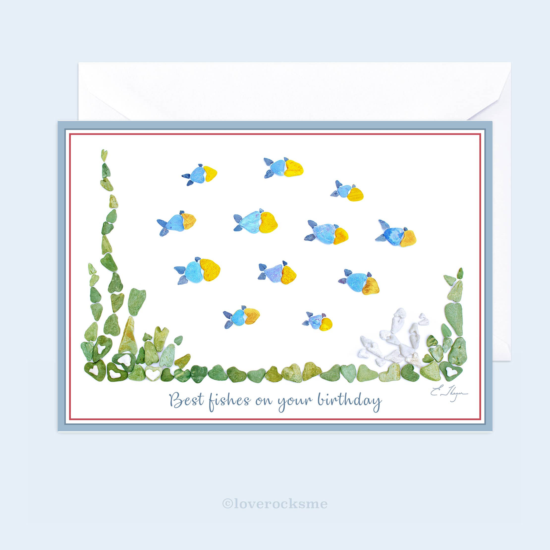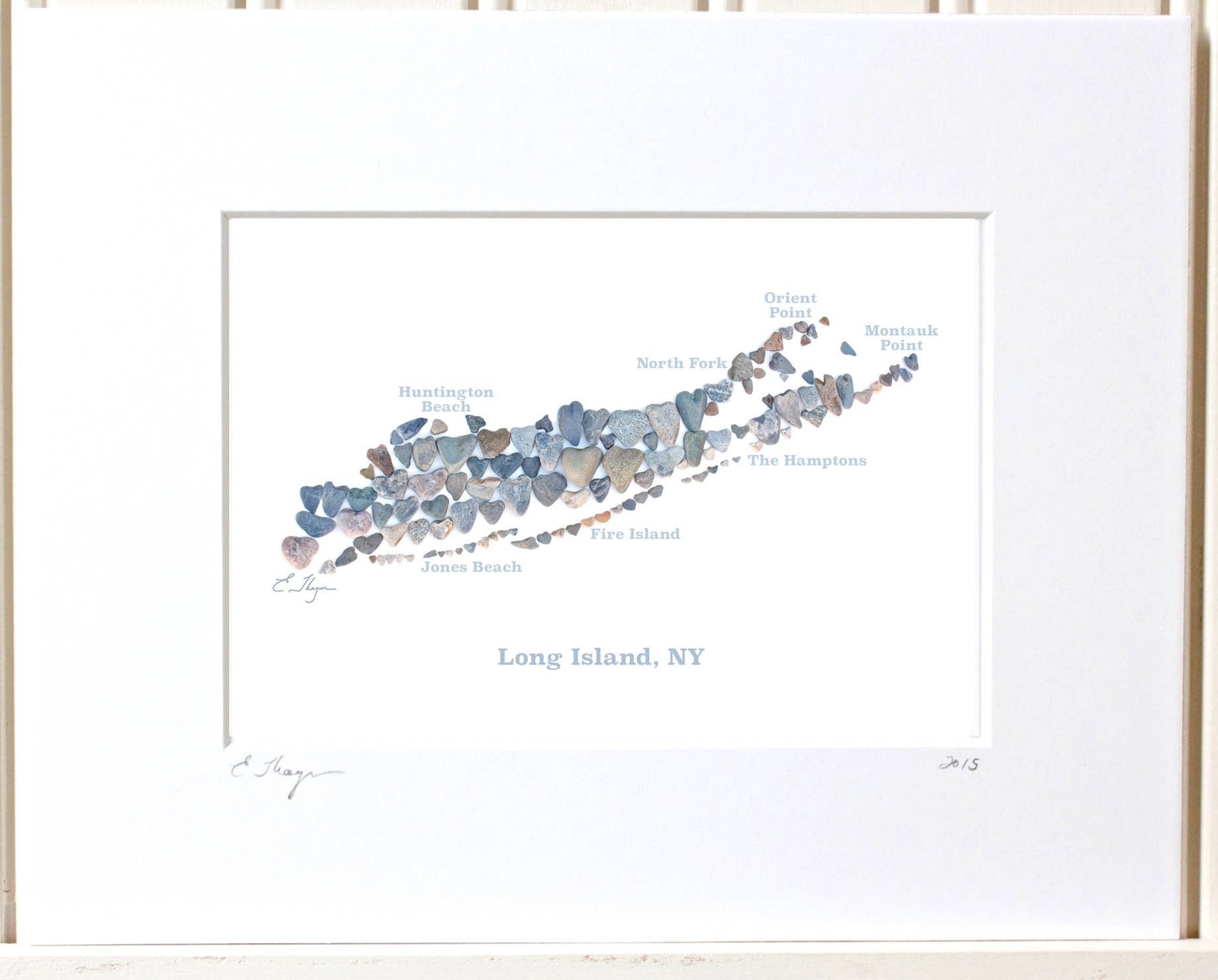 Welcome to gifts with heart from the Maine coast! Founded in 2011, Love Rocks Me® features my photographs of 2 to 3-1/2 foot flat-lay designs created with my collection of heart shaped rocks from Maine's beaches and islands. I've collected hundreds over three decades and have my Westies Winston, and now Findlay to thank for the many beach walks. Each design has been photographed from a ladder outdoors beneath diffused sunlight. This brings out the natural beauty in each heart rock and adds a three-dimensional, realistic quality to the art in print. There are now over 250 designs in the series which are printed on note cards, art prints, sandstone coasters & trivets, candles, notepads, vinyl stickers, and magnets. In 2025, I've added digital tints to some of the rocks for a pop of color. Most products are made in New England; all are made in the USA. In 2016, I was honored to receive the SBA award for Maine and New England’s Home-Based Business of the Year. Feel free to inquire about custom art or if you'd like to name drop any product in my line. And if you'd like a few heart rocks with your order to display alongside my products, I'm happy to include them - I have plenty to share. All my best, Ellen Thayer