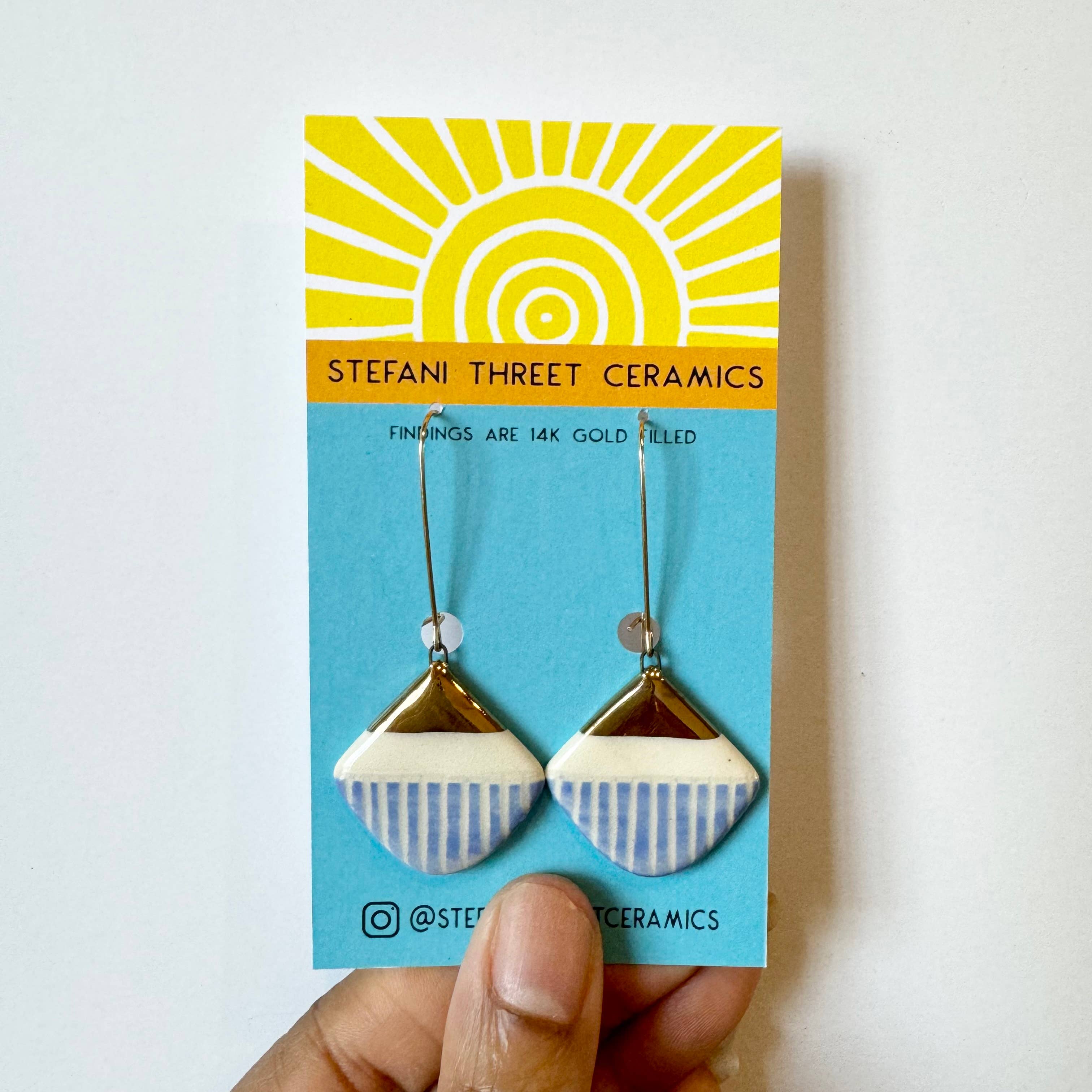 Threet Ceramics is a handbuilt pottery and jewelry line made by Stefani Threet in small batches in her Philadelphia studio. Her line is handmade from slabs of clay, handpainted with vibrant pops of color, and hand carved with design motifs. Stefani studied Ceramics at Alfred University and has taken many workshops with internationally known artists. The color used in her work is heavily influenced by the time she spent living in the vibrant city of Oaxaca,Mexico. She visits there frequently.