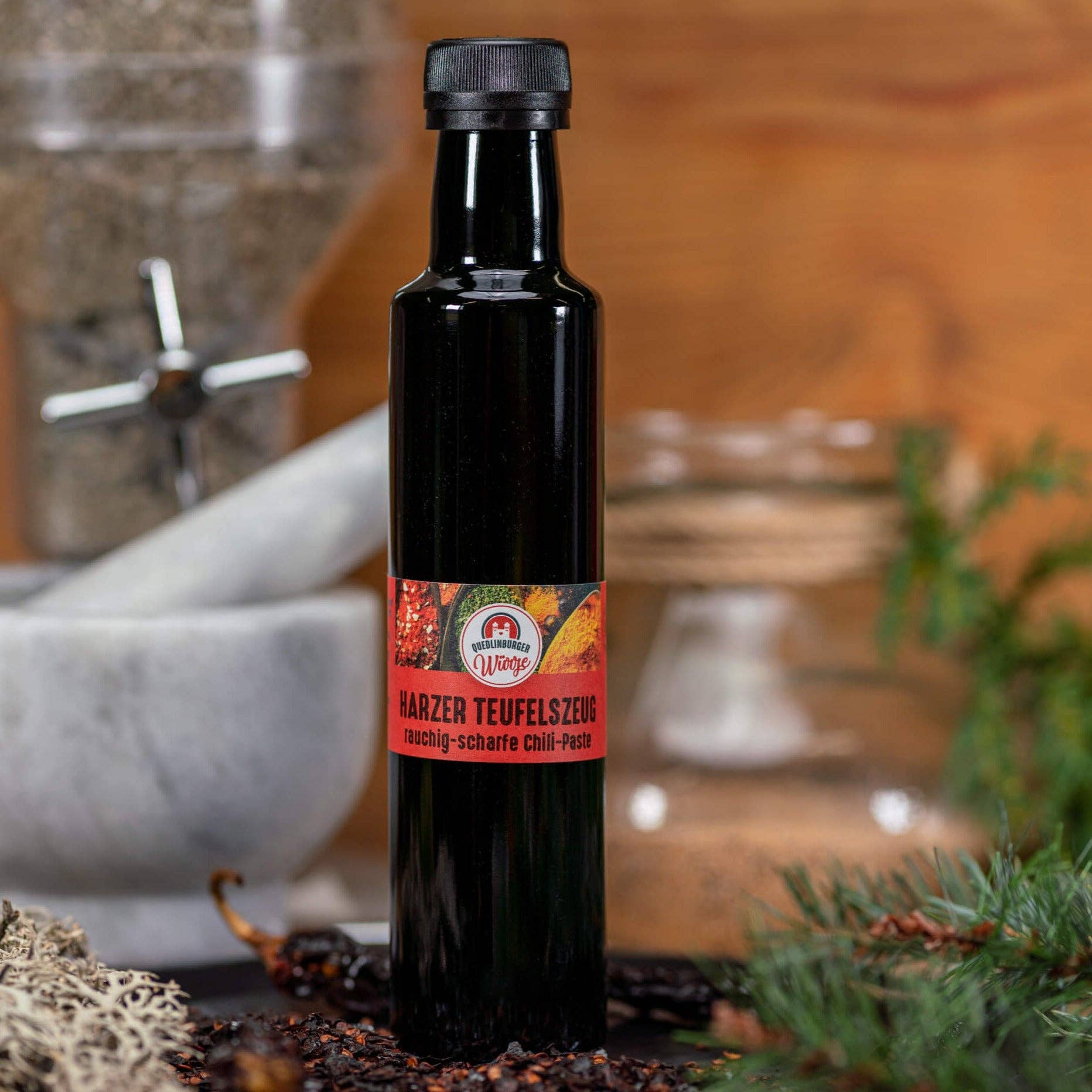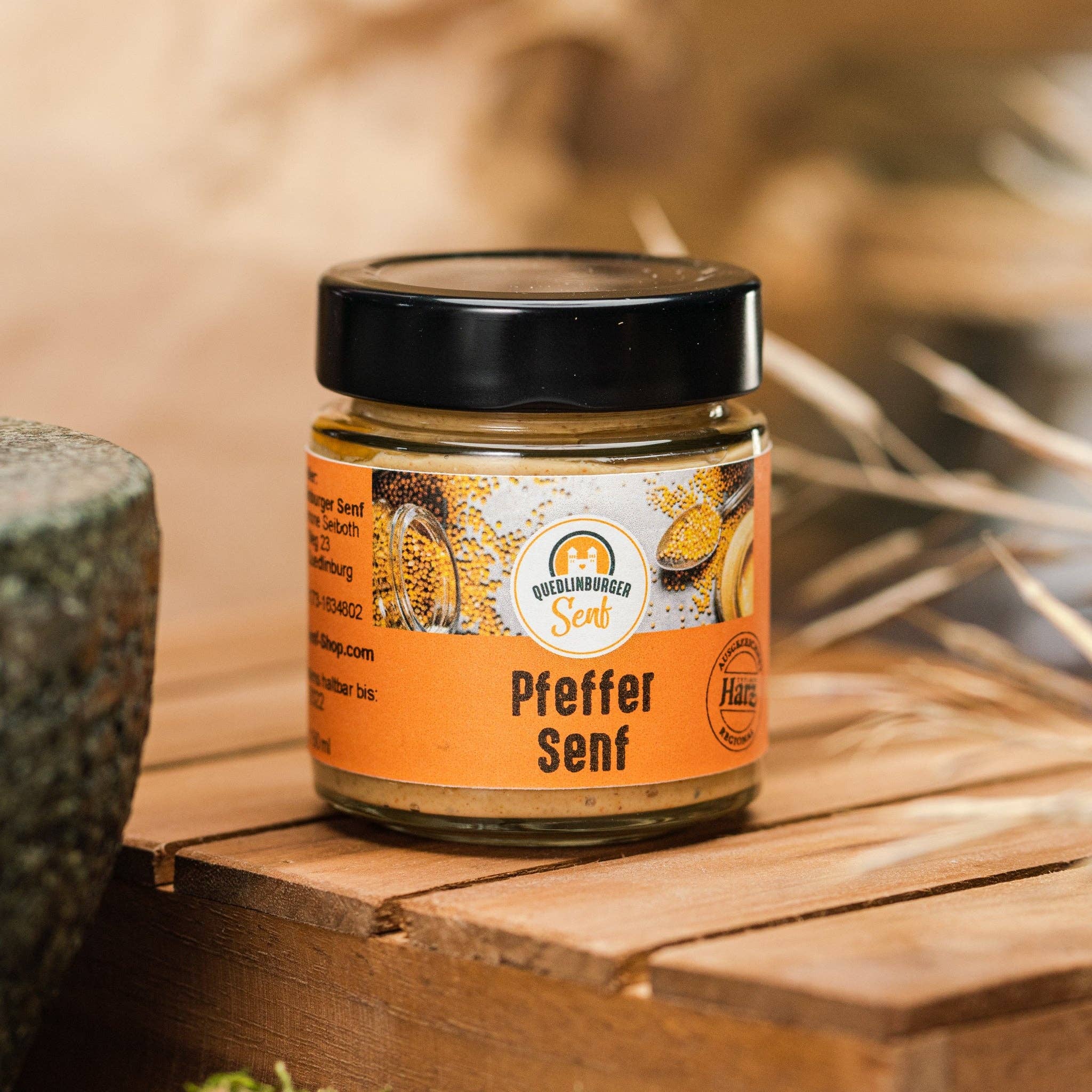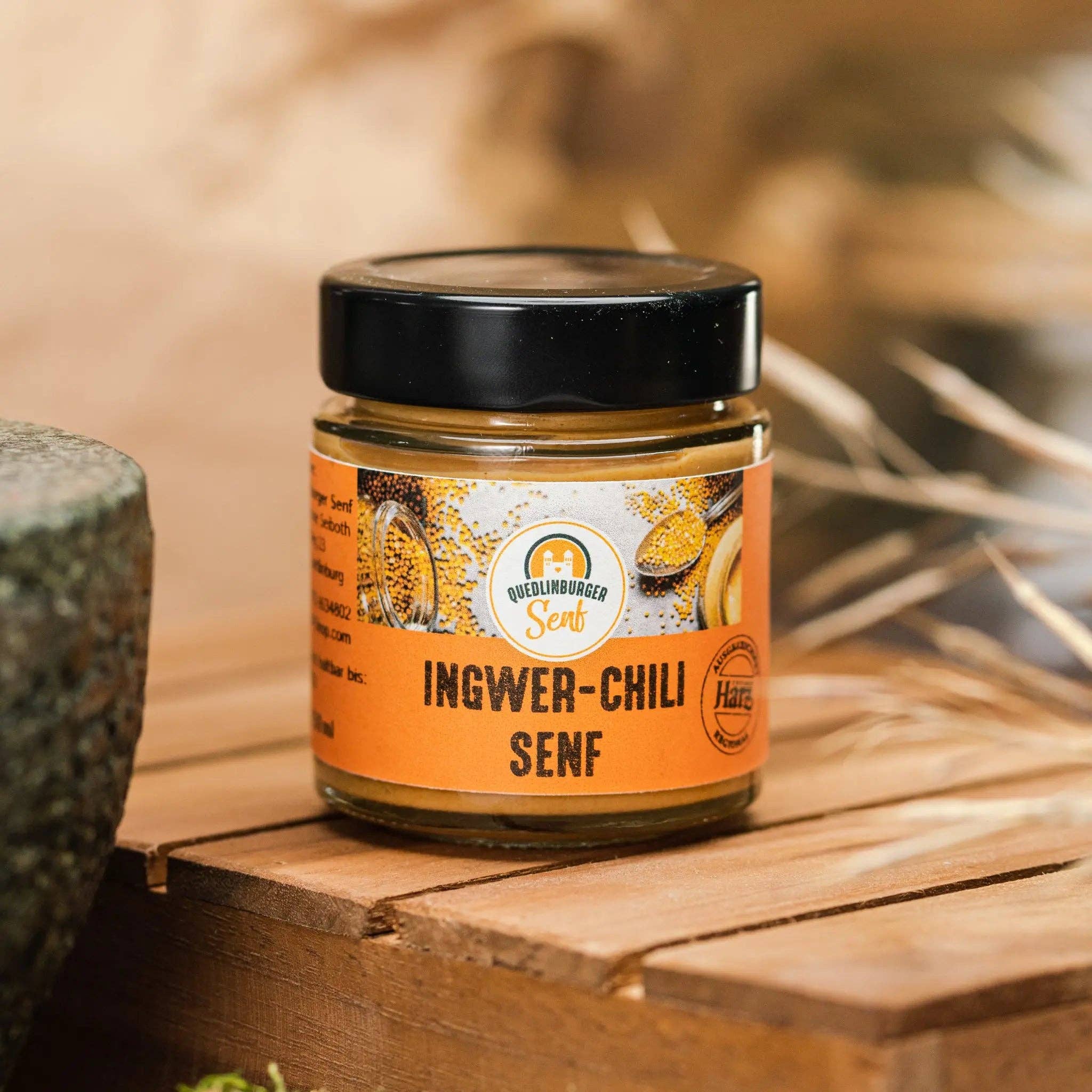 Our goal is to create flavorful products that enrich our lives and our meals. We place great importance on natural ingredients and avoiding unnecessary additives. During our recipe search, we came across a 1,000-year-old mustard recipe. We started with this recipe 15 years ago. Back then, there was no sugar, so the mustard was sweetened with local honey. There was also no distilled vinegar, but good fruit vinegar. For a special kick, local horseradish was used. Today, we season and refine our fine Quedlinburg mustard according to this medieval recipe orientation. A beekeeper from the neighboring village supplies us with good beekeeping honey for this purpose.