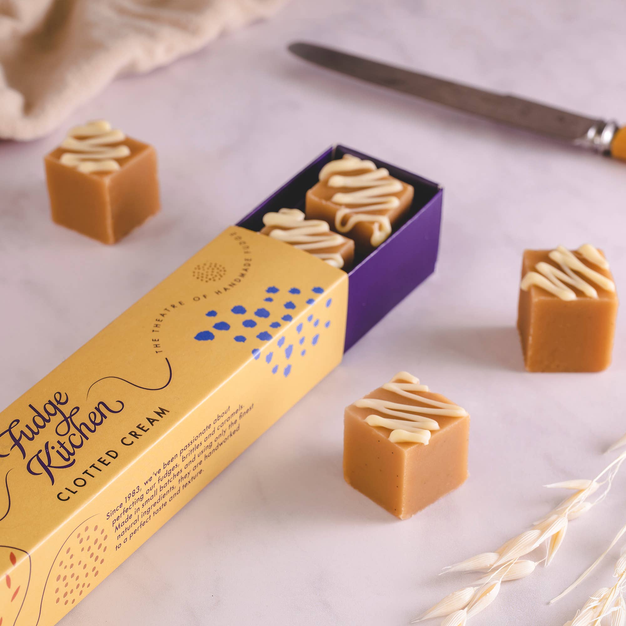 Over 40 years ago our founder Siân Holt introduced an unknown concept to the UK: creamy, premium fudge, handmade in small batches, using traditional techniques, all-natural ingredients, and decorated individually by skilled artisan hands. With a string of awards, and the opening of our SALSA-accredited production kitchen in Kent, we took our much-loved traditional whipping cream fudge to new heights about 10 years ago, developing more than 70 unique products and formats in over 140 flavours. From the highly skilled team of confectioners who produce our innovative and award-winning products to our supply chain, and social/environmental impact, we understand the importance of transparency and outstanding quality, ensuring that everything we do not only tastes good but feels good too. In 2022 Siân made the decision to secure the future of fudge in a unique and lasting way; we became employee-owned. Through an employee ownership trust (EOT) the business ownership was put into the hands of the people that helped get us to where we are today. By purchasing Fudge Kitchen products through Faire the Buyer agrees not to sell, or to sell onto other parties who sell, through Market Places such as (but not limited to) eBay, Amazon or Etsy without obtaining written consent from Fudge Kitchen Managing Director in advance.