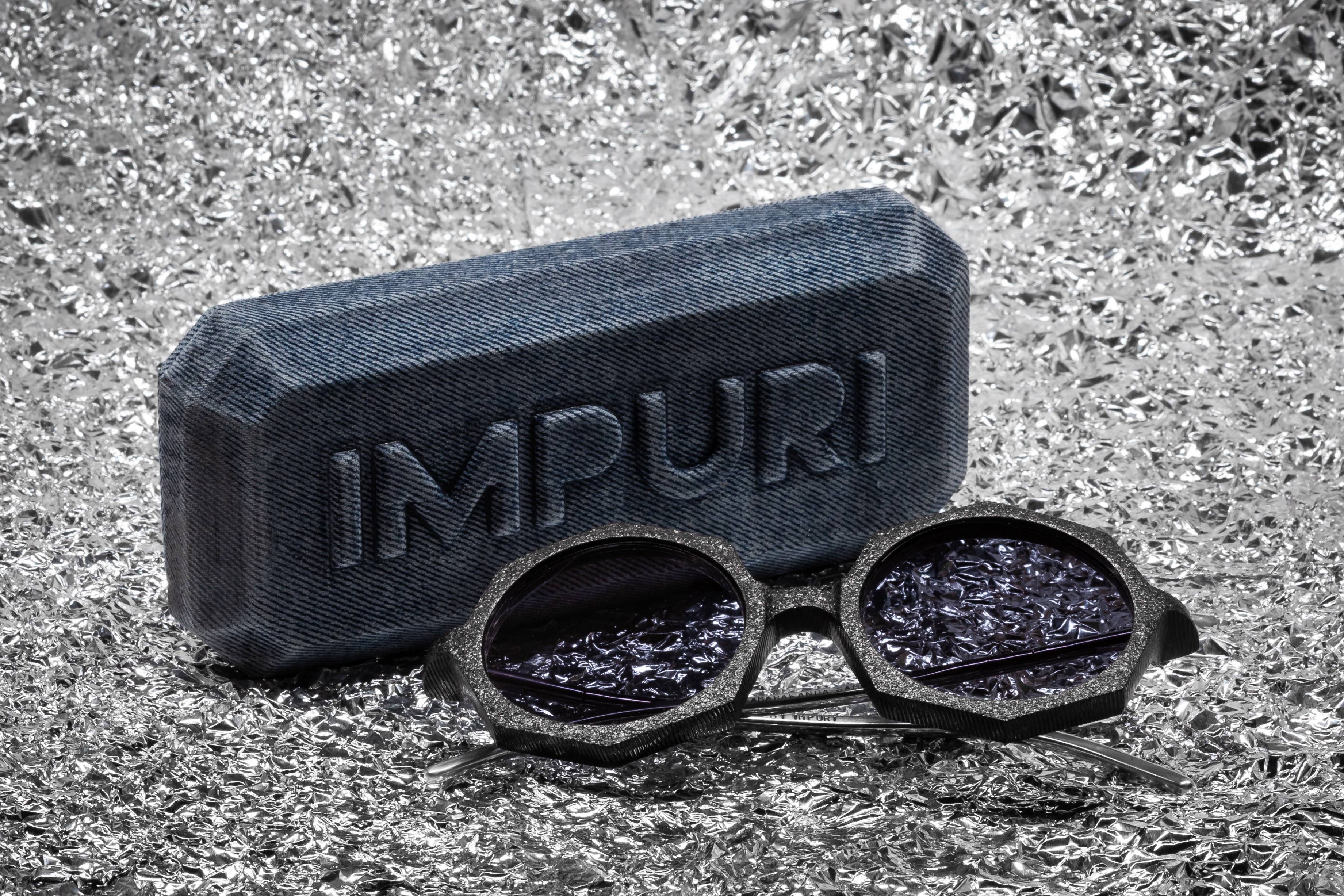 We are making a great effort in using progressive materials and every step in the production of these masterpieces is led by the principle of real handwork and no or almost no leftovers. We waste only a few grams of the material for every produced frame. Since day one we felt responsible to express ourselves by creating objects that are durable and repairable with a very limited negative impact on nature. This mindset has pushed us to create unique manufacturing solutions and technological processes, mixing traditional techniques and modern materials. At Impuri we are doing everything in-house: from drawing and prototyping to final polishing. Dedication to our product pushed us to create an unparalleled hardcase molded from recycled Denim that is not just mere protection for the eyewear but a true design piece.