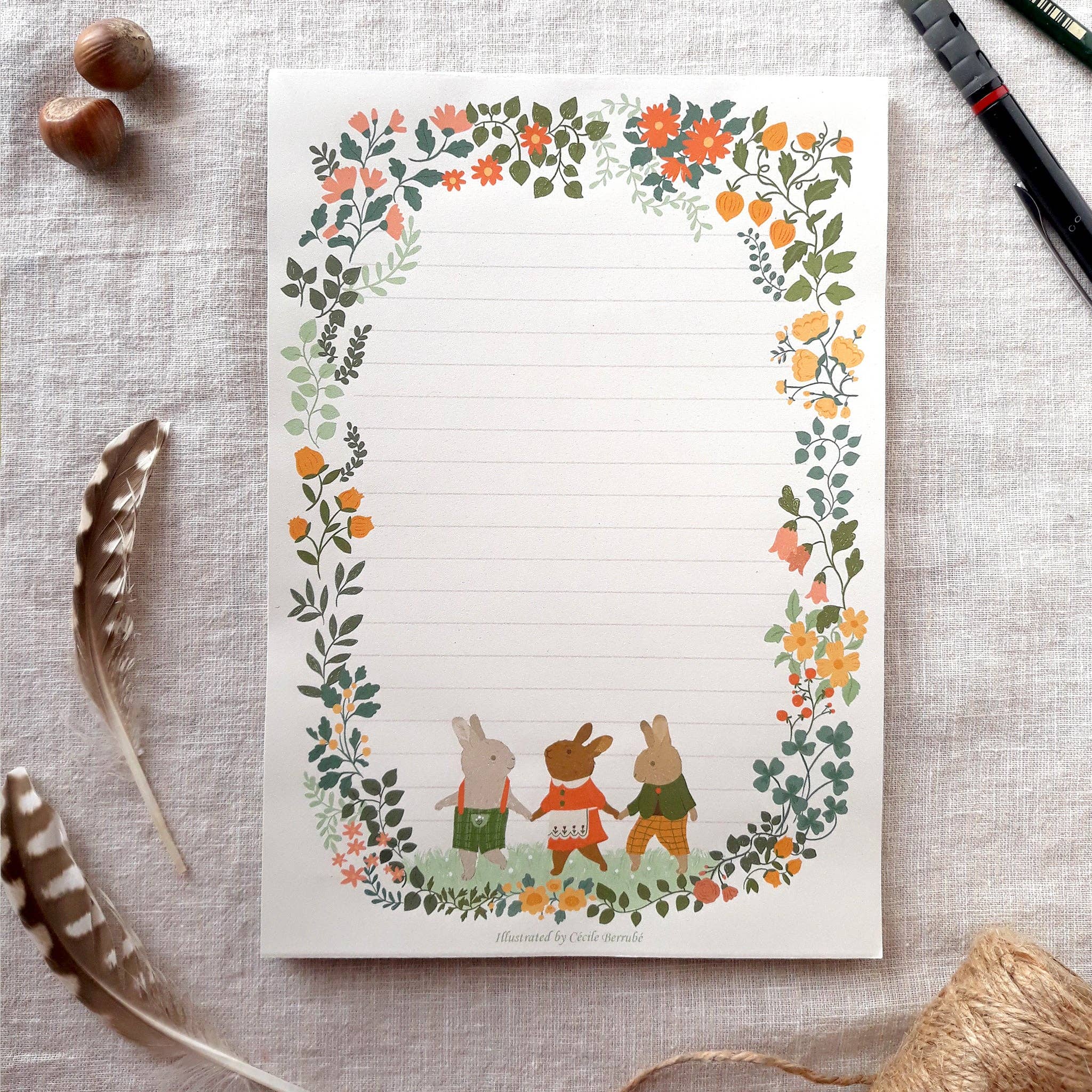 Cécile Berrubé is a french illustrator and painter based in Scotland. She is greatly inspired by animals, nature and cosy little homes. When she is not making art in her studio, she enjoys going on small adventures to observe the natural world around. Cécile ’s work is driven by the desire to capture little moments of joy. Through her stationery, she hopes to bring a bit of magic and tenderness into this world. All products are printed locally in the UK and are as eco friendly as possible, using recycled paper, envelopes and biodegradable sleeves.