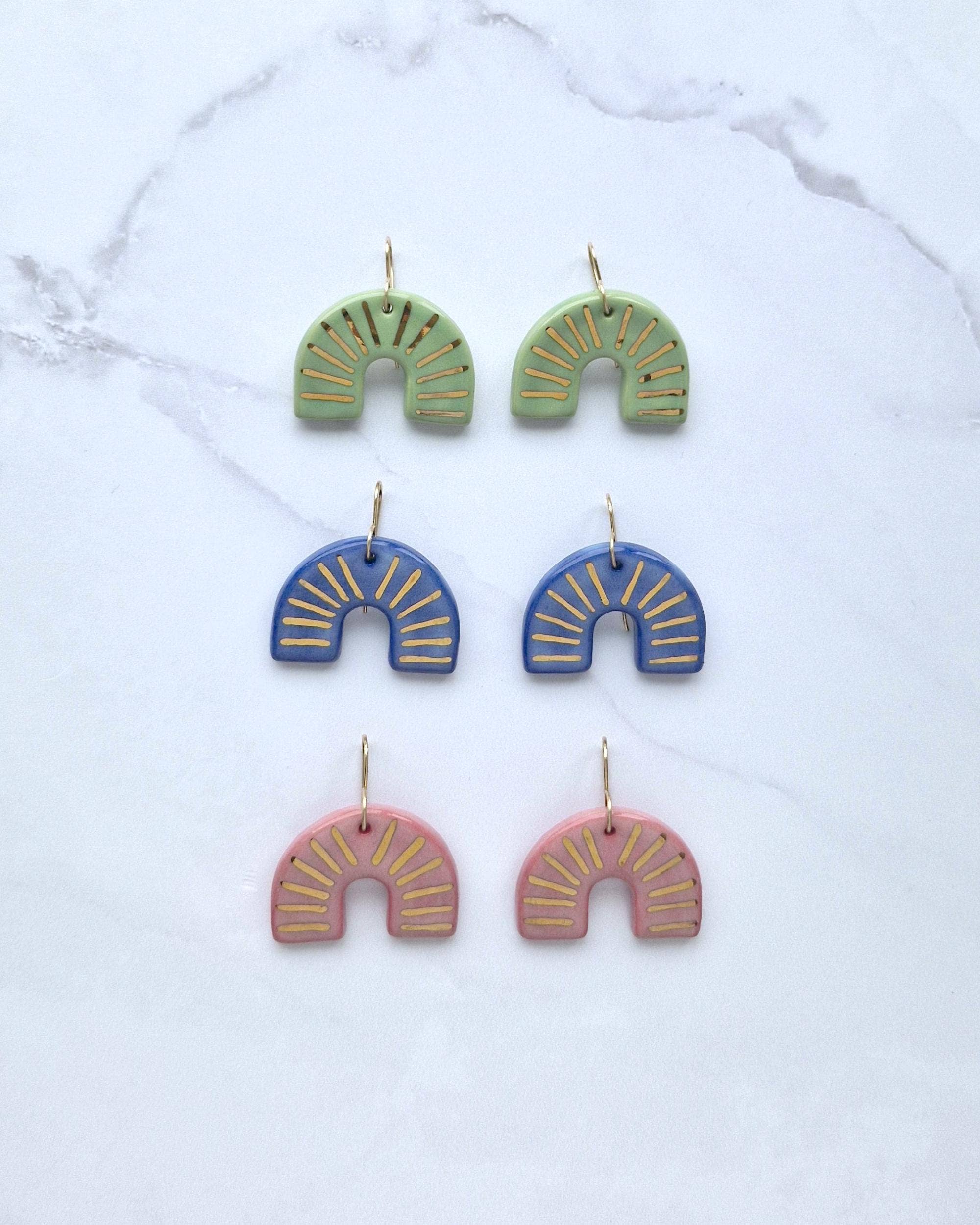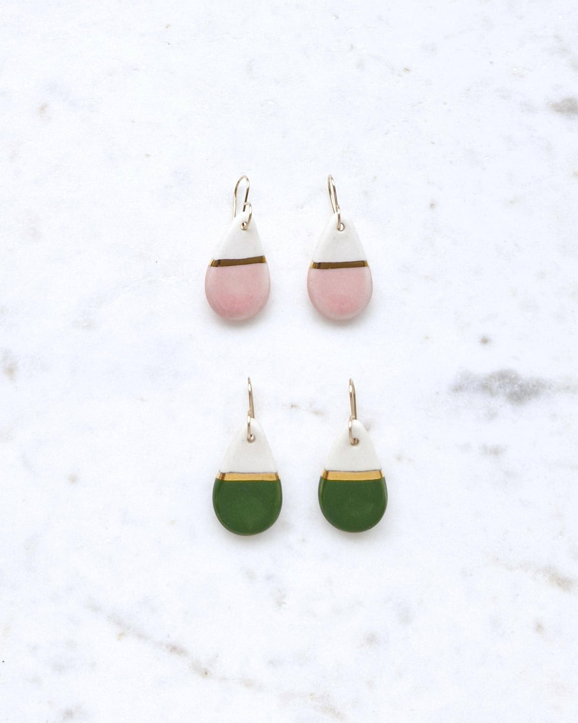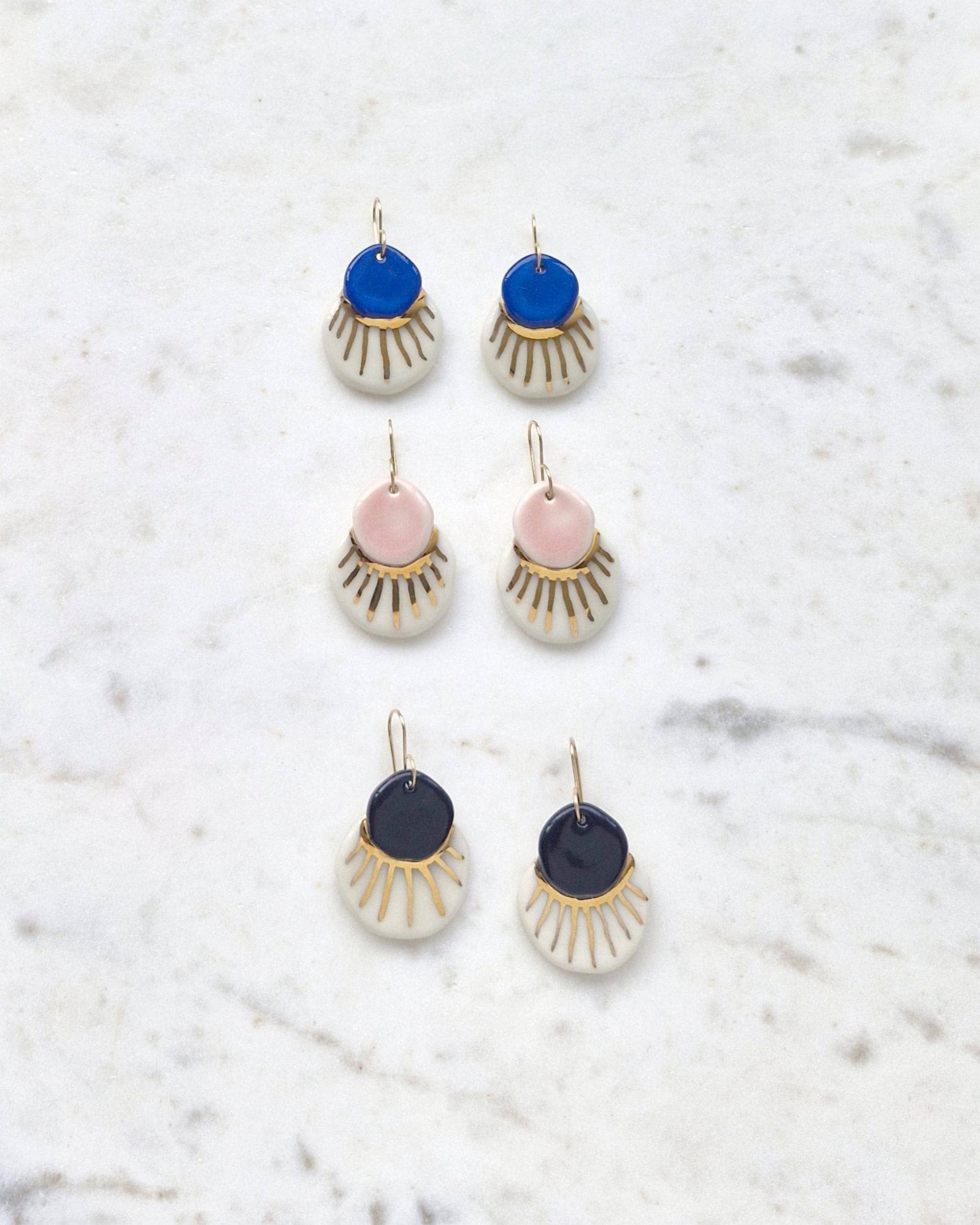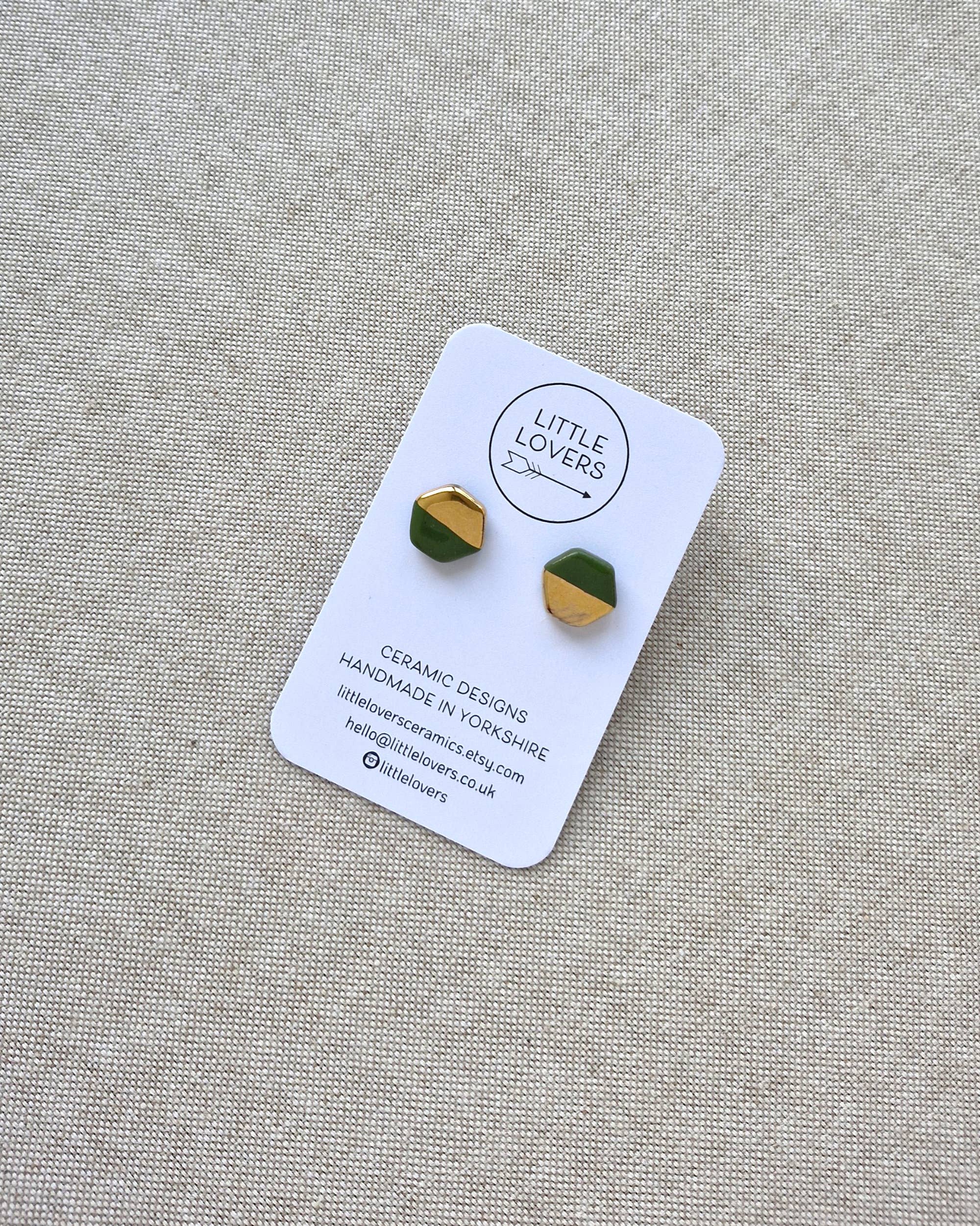 Crafted by hand in Yorkshire hills, Little Lovers is a brand of ceramic jewellery and decorative wares made by me, Kate Lovery. Using natural materials, genuine stones, glass beads and non-toxic glazes, designs are produced in small batches so that collections can evolve each season. My love of vintage and retro ceramics started at a young age and I went on to study Ceramic Design at Harrogate College. Whilst experimenting with small intricate work I developed my first porcelain jewellery collection which launched in 2018. I take inspiration from vintage shapes and colours, landscapes and the natural environment. Everything is handmade in my studio - from colouring clay and hand polishing each shape to decorating with metallic lustres, making every earing wire, and constructing necklace chains. As a natural product, clay doesn't add to plastic production for the purpose of fashion. My designs are intended to be classic pieces that are loved and worn for years to come. In that sense they become more sustainable over time. Every piece is made with great care, premium materials and a lot of love.