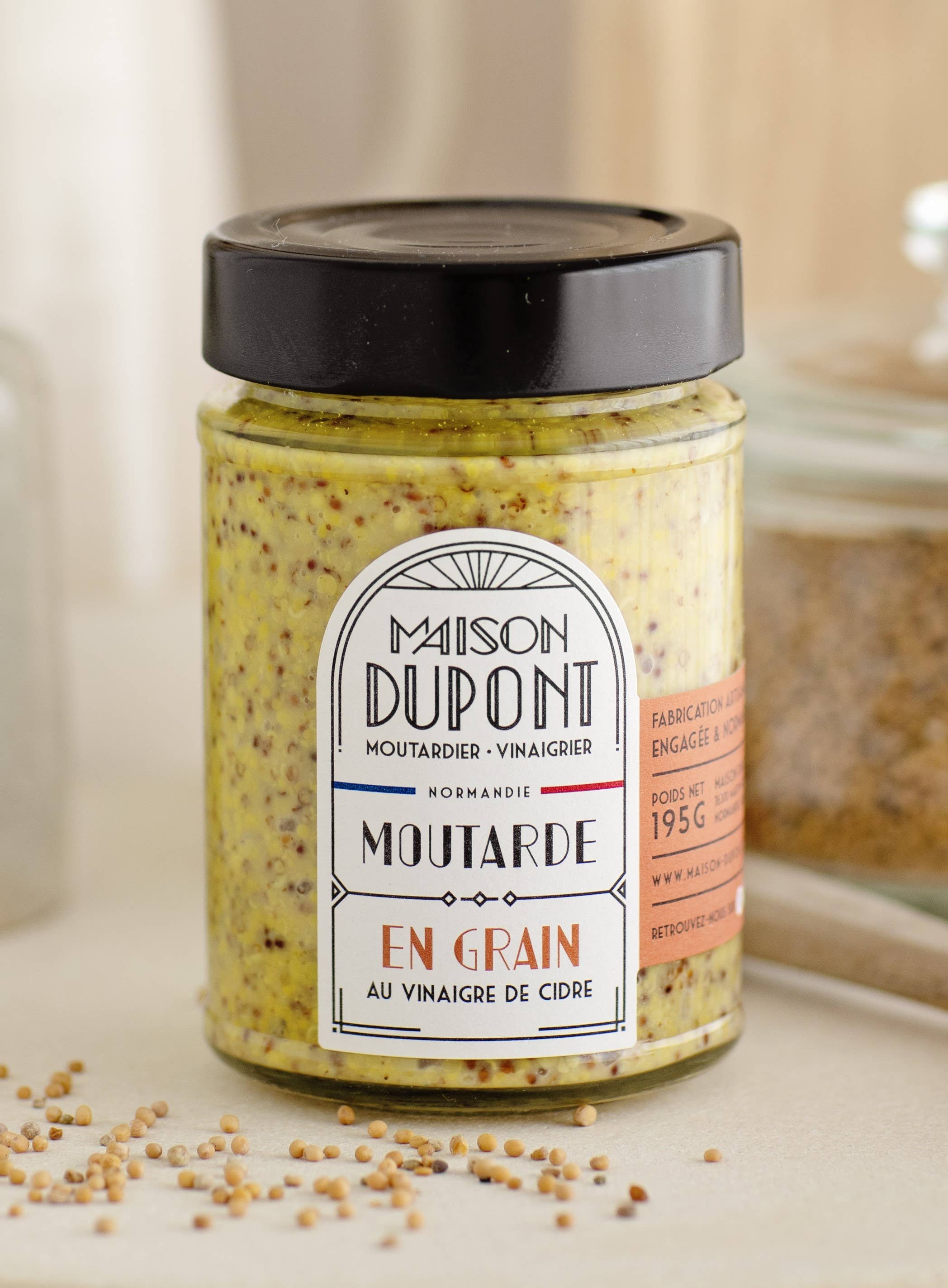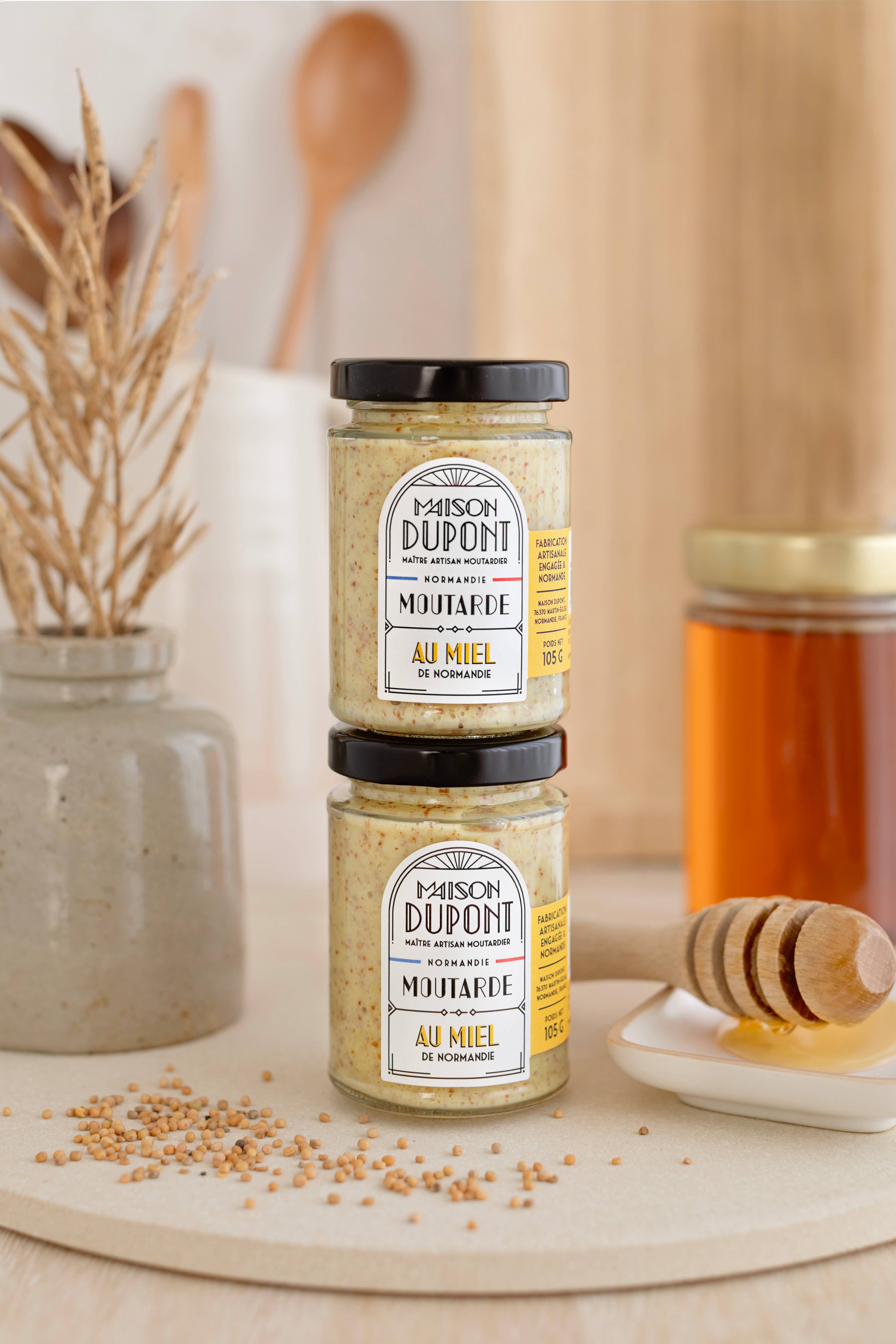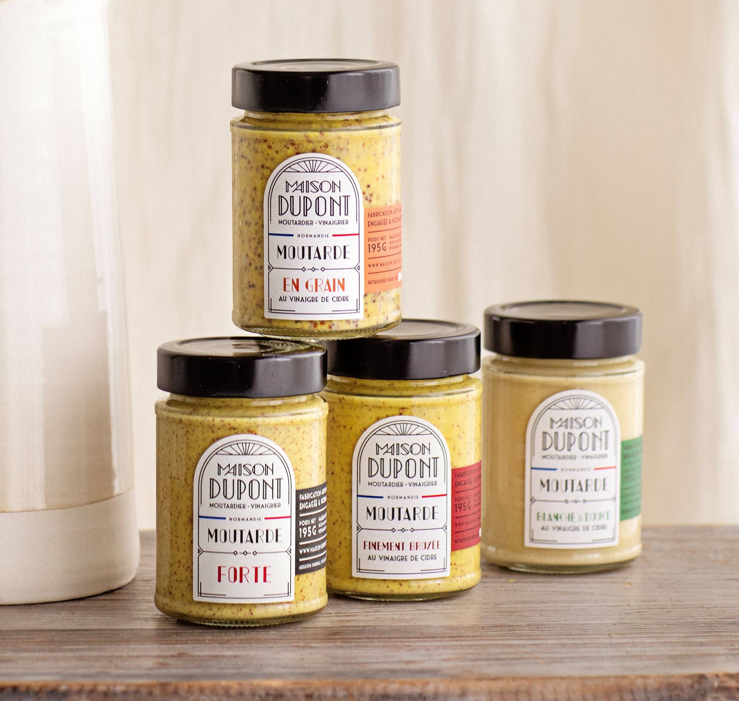 The Dupont House is an artisanal mustard and vinegar factory, founded by the Dupont family in Normandy, France. Master Artisan Mustard Maker and Vinegar Maker, we revive this passionate craft with a committed approach driven by culinary creativity. We produce our mustards from French mustard seeds. Since our beginnings, we have been relocating the agricultural production of mustard seeds to Normandy. All our products are made by us at the mustard factory. We practice long fermentations and work with a stone mill. Here, we do not simply flavor industrial mustards!! Our recipes develop a balanced aromatic note with a tempered spiciness and a round, fruity acidity carried by cider vinegar. Our Art Deco visual identity illustrates who we are: authenticity, elegance, and accessibility. This Maison Dupont range is dedicated to fine grocery stores and food artisans = it is not available in large retail stores! Lovers of good products, welcome! Richard, the Mustard Maker & Vinegar Maker & Co.