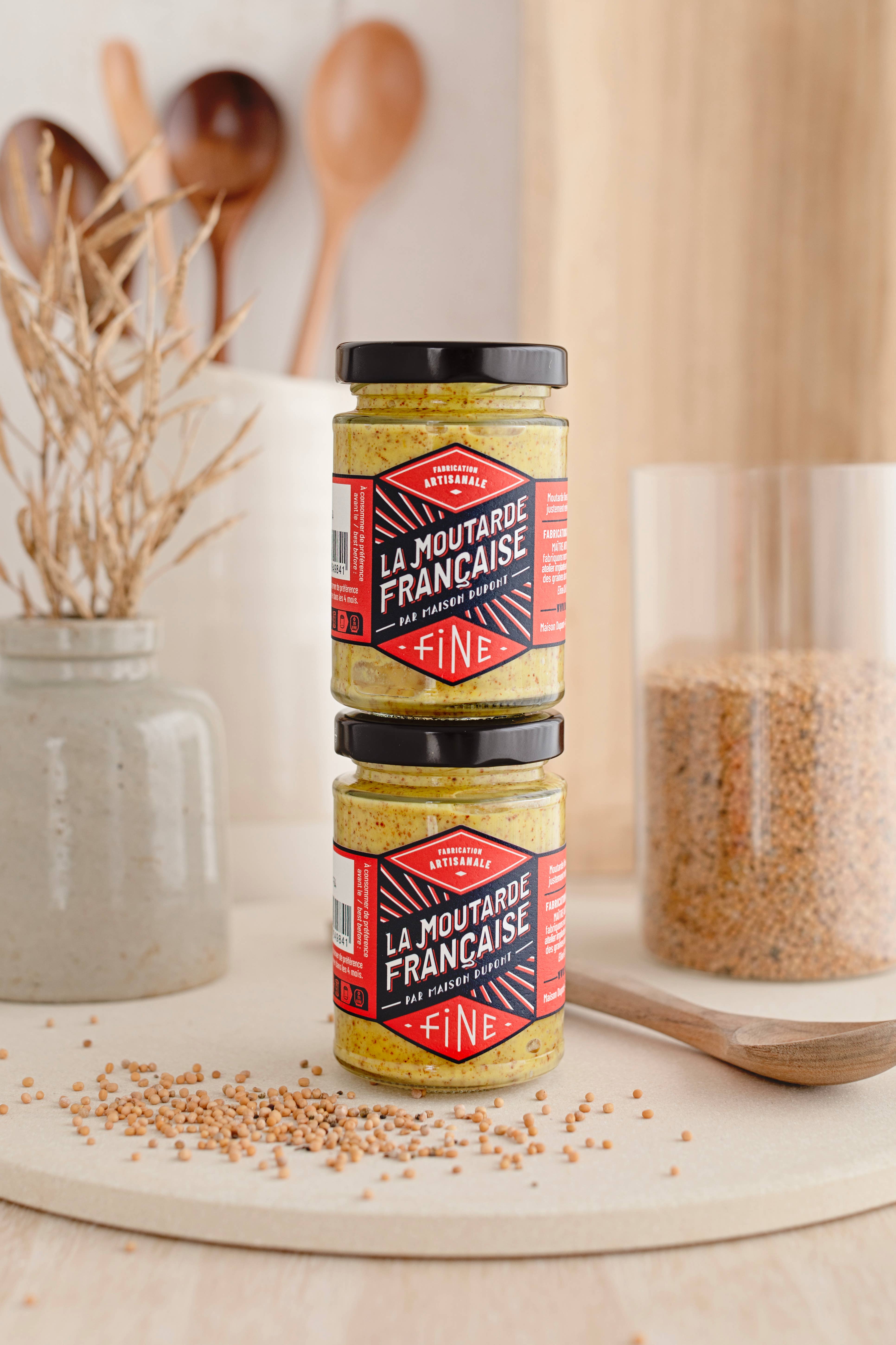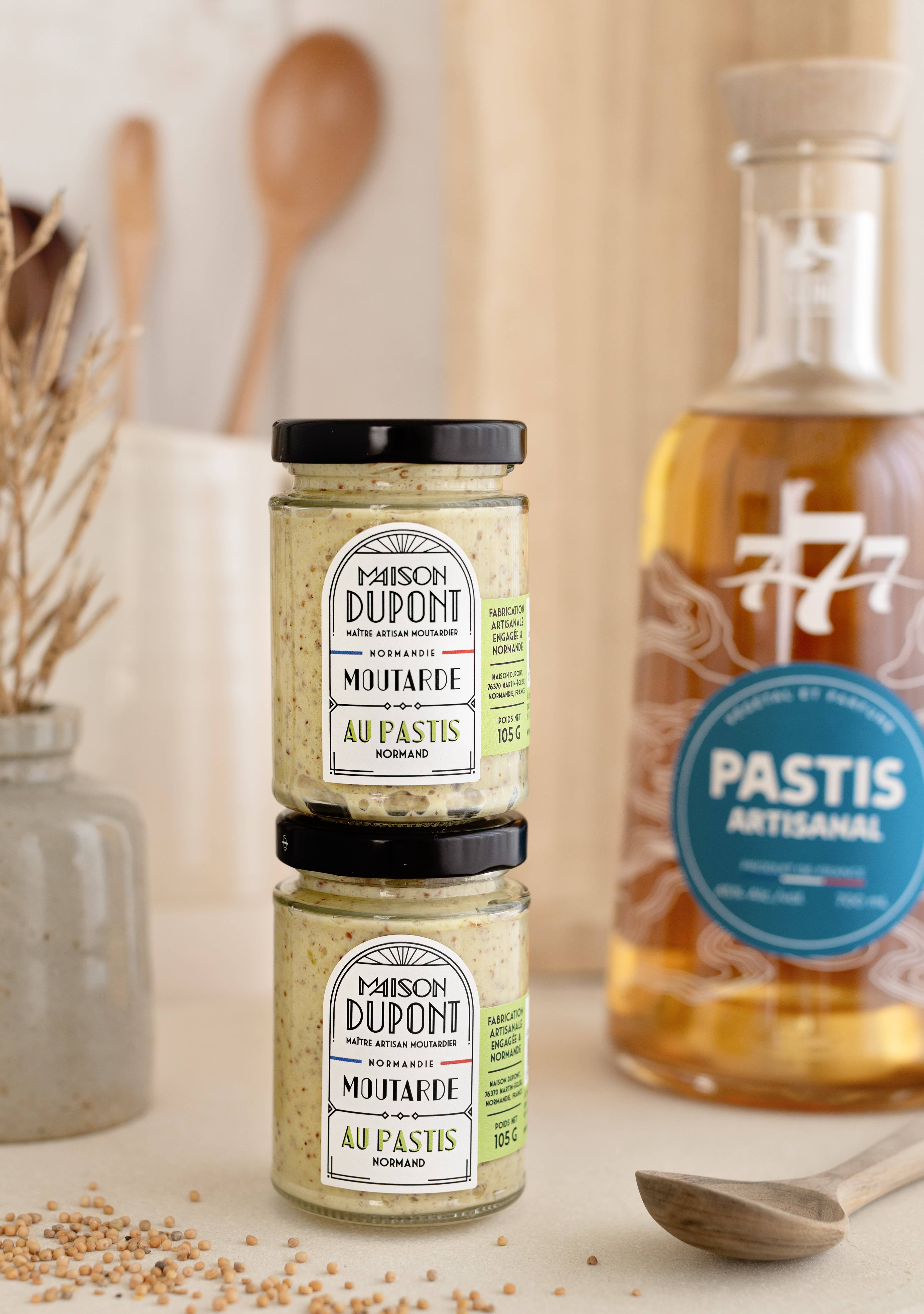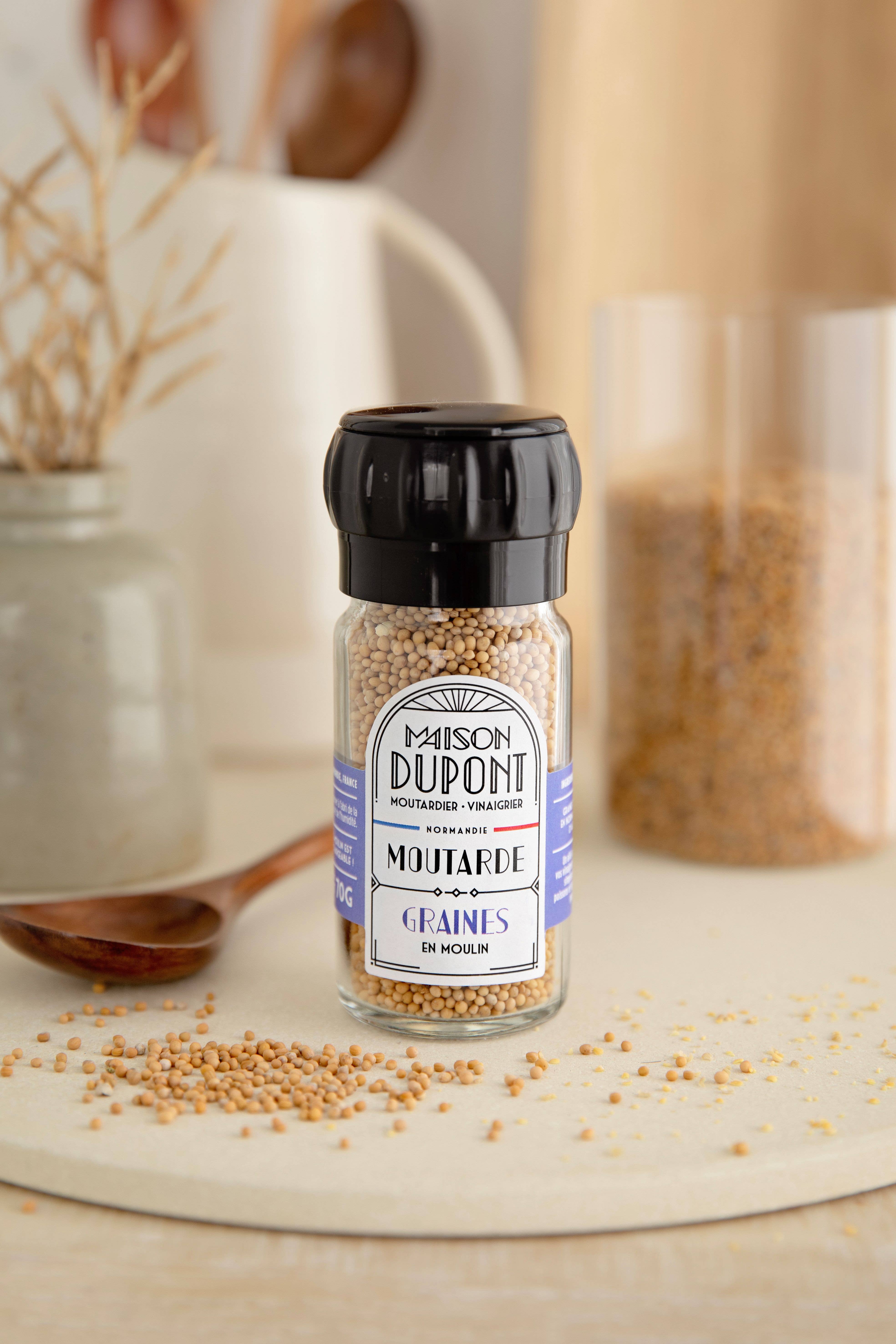 The Dupont House is an artisanal mustard and vinegar factory, founded by the Dupont family in Normandy, France. Master Artisan Mustard Maker and Vinegar Maker, we revive this passionate craft with a committed approach driven by culinary creativity. We produce our mustards from French mustard seeds. Since our beginnings, we have been relocating the agricultural production of mustard seeds to Normandy. All our products are made by us at the mustard factory. We practice long fermentations and work with a stone mill. Here, we do not simply flavor industrial mustards!! Our recipes develop a balanced aromatic note with a tempered spiciness and a round, fruity acidity carried by cider vinegar. Our Art Deco visual identity illustrates who we are: authenticity, elegance, and accessibility. This Maison Dupont range is dedicated to fine grocery stores and food artisans = it is not available in large retail stores! Lovers of good products, welcome! Richard, the Mustard Maker & Vinegar Maker & Co.