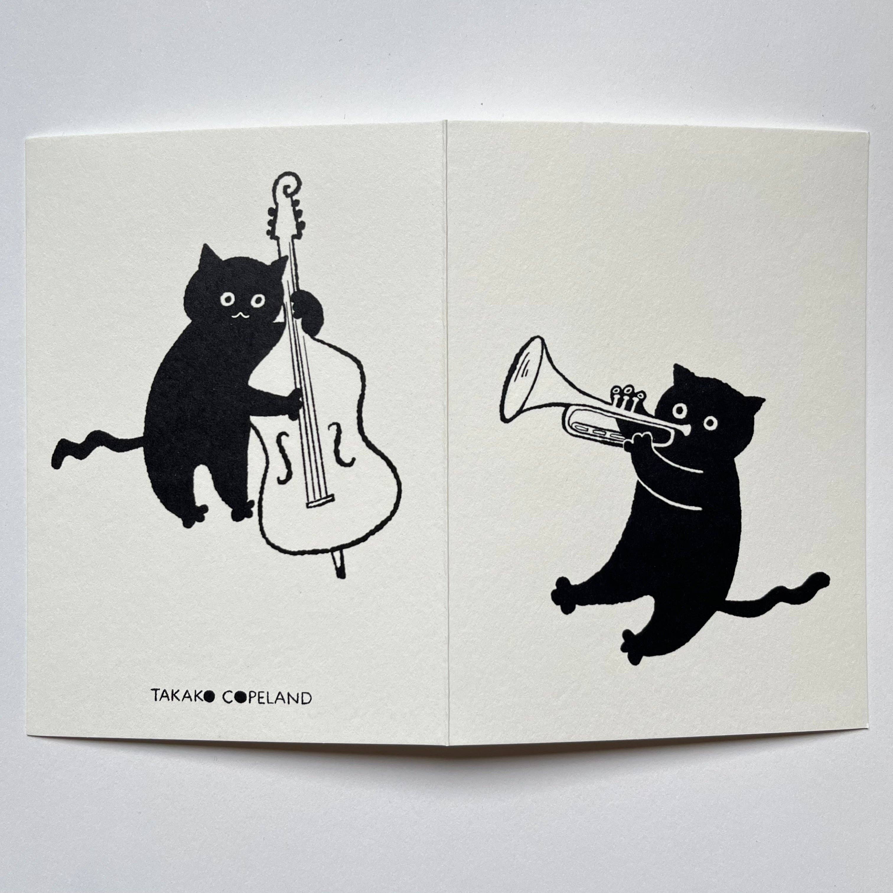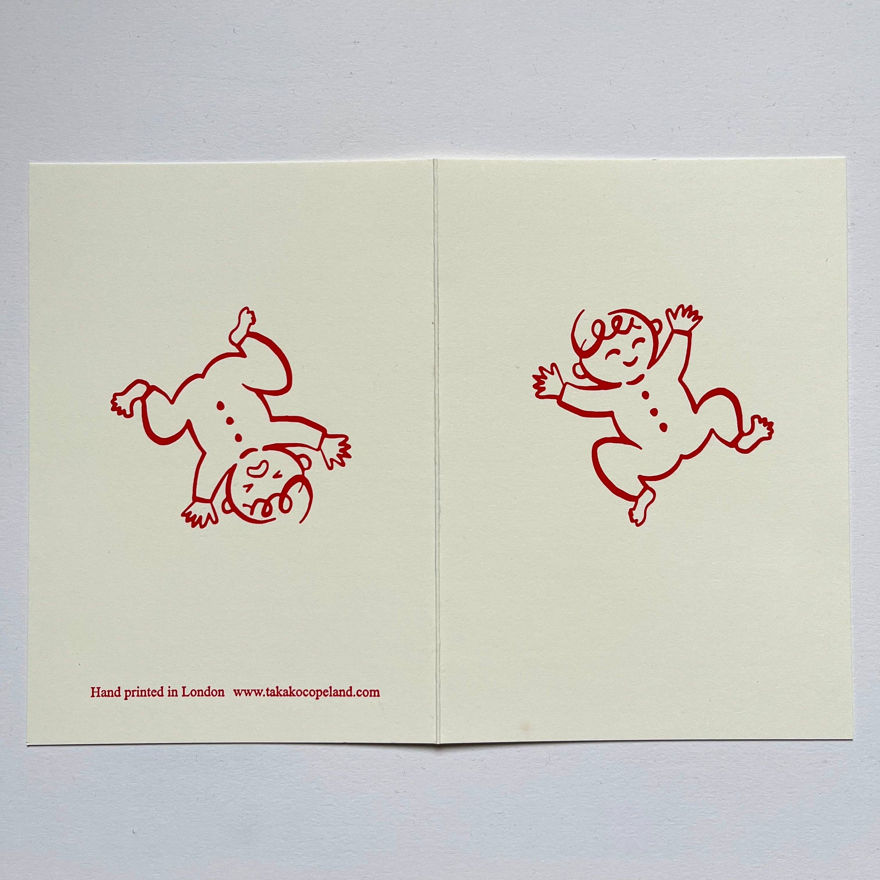 Takako creates illustrated greeting cards that celebrate patterns, character, and warmth of connection. She combines hand-drawn illustration with printmaking, including designs printed from her original lino blocks and others hand-finished using her foil blocking machine, giving each card a handmade, tactile quality.