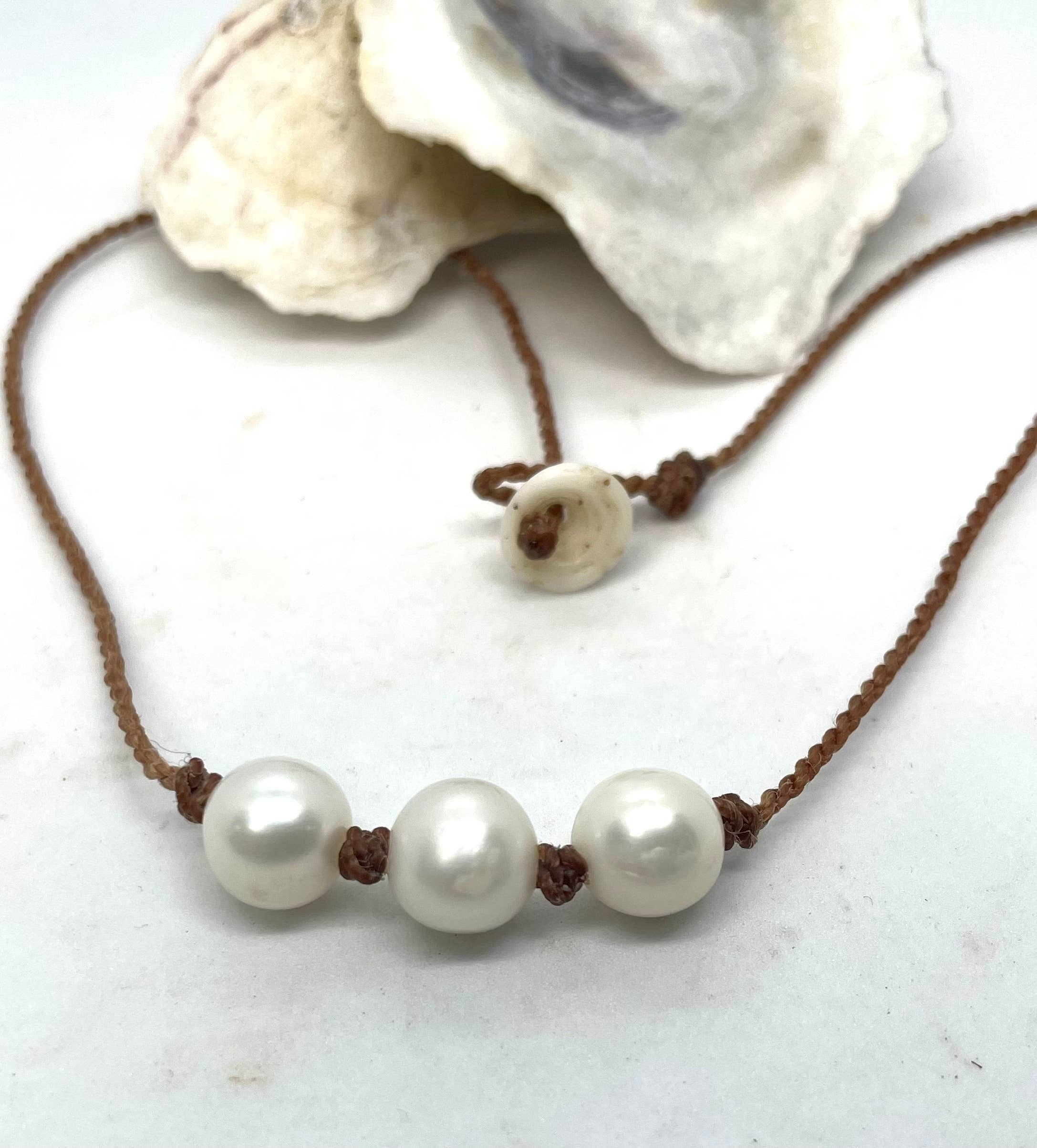 I learned how to spin cord when I was in high school in Home Economics class, I was about 15, we made all kinds of items but what I loved making most was rope that could be used as jewelry.. I have been in the pearl business for many, many years and use all kinds of materials, from leather to silk to linen and my own hand spun nautical grade cord.. made from a combination of nautical grade polyester, which will stand up to daily wear and getting wet, BUT super soft against your skin. My Mermaid Rope is made to TAKE IT.. My MERMAID ROPE comes out to app. 1.5mm in size, delicate but super strong! I make four different colors of my Mermaid Rope, medium tan, dark reddish brown, black and steel grey.. I make a standard 17" necklace but this can be changed according to your wishes. I use AAA grade freshwater pearls and fine gemstones. We also cast our own sterling silver charms and pendants.. All my products are made right here in Florida on the gorgeous Emerald Coast, northwest Florida.. All made by the ladies of Chartier (with a little help from my husband Wayne) Connie ( Mc A Lily ) Chartier aka Lily Chartier