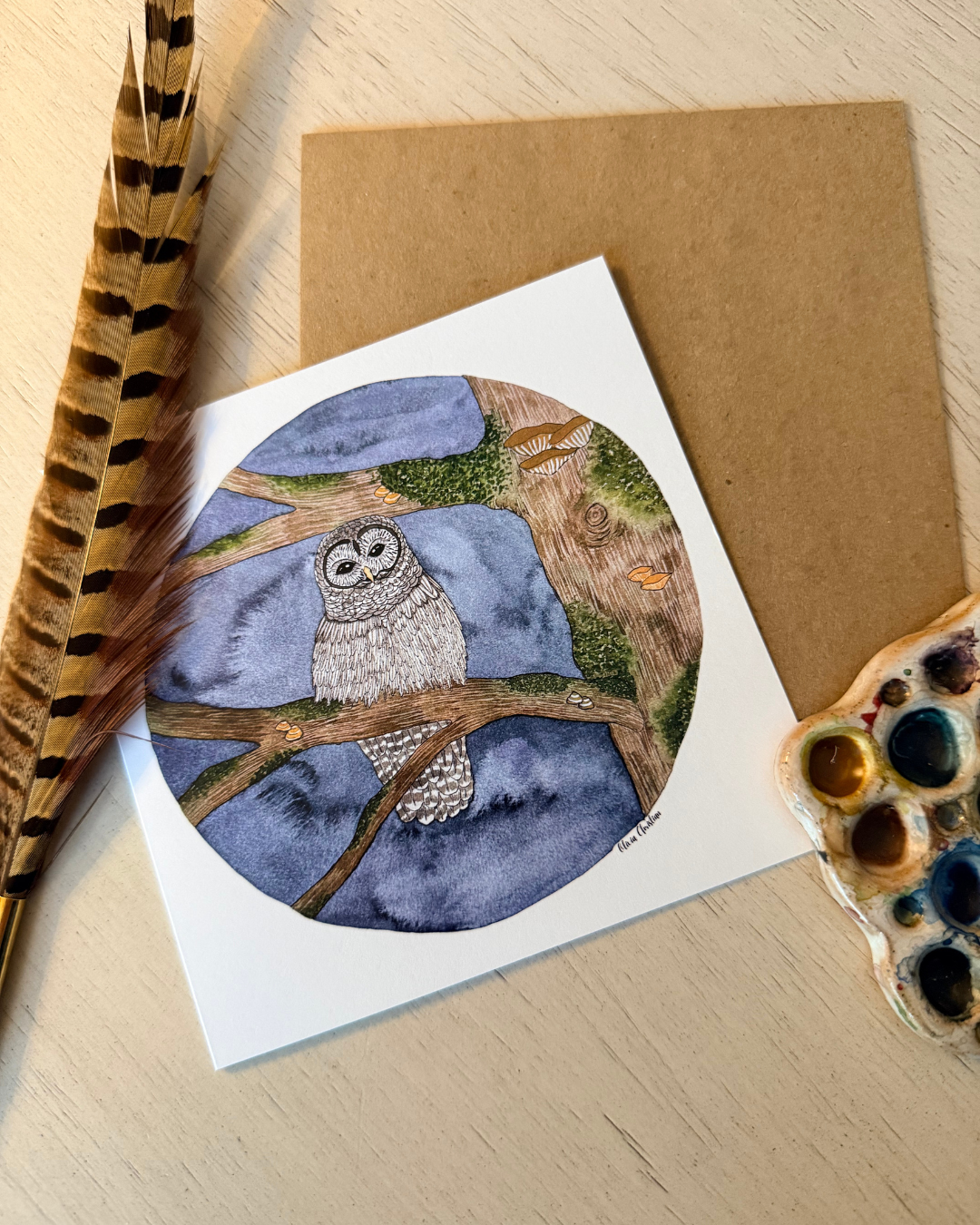 Hello there! My name is Olivia Christian the artist behind Mossypathart, I am a watercolor and pen & ink artist that is inspired by nature. I love to garden and take hikes in the woods with my family and that is often when I find new inspiration for my artwork. One of my favorite tools is a vintage dip pen because it lets me create unique art and helps to tie in my love of the simplicity of olden times. Most of my art starts out in circular fashion and then grows and changes into a beautiful aspect of nature. As someone who struggles with mental illness working in this way helps me to understand how my brain works in different ways. I love being able to see how something as simple as a circle can turn into a unique piece of art.
