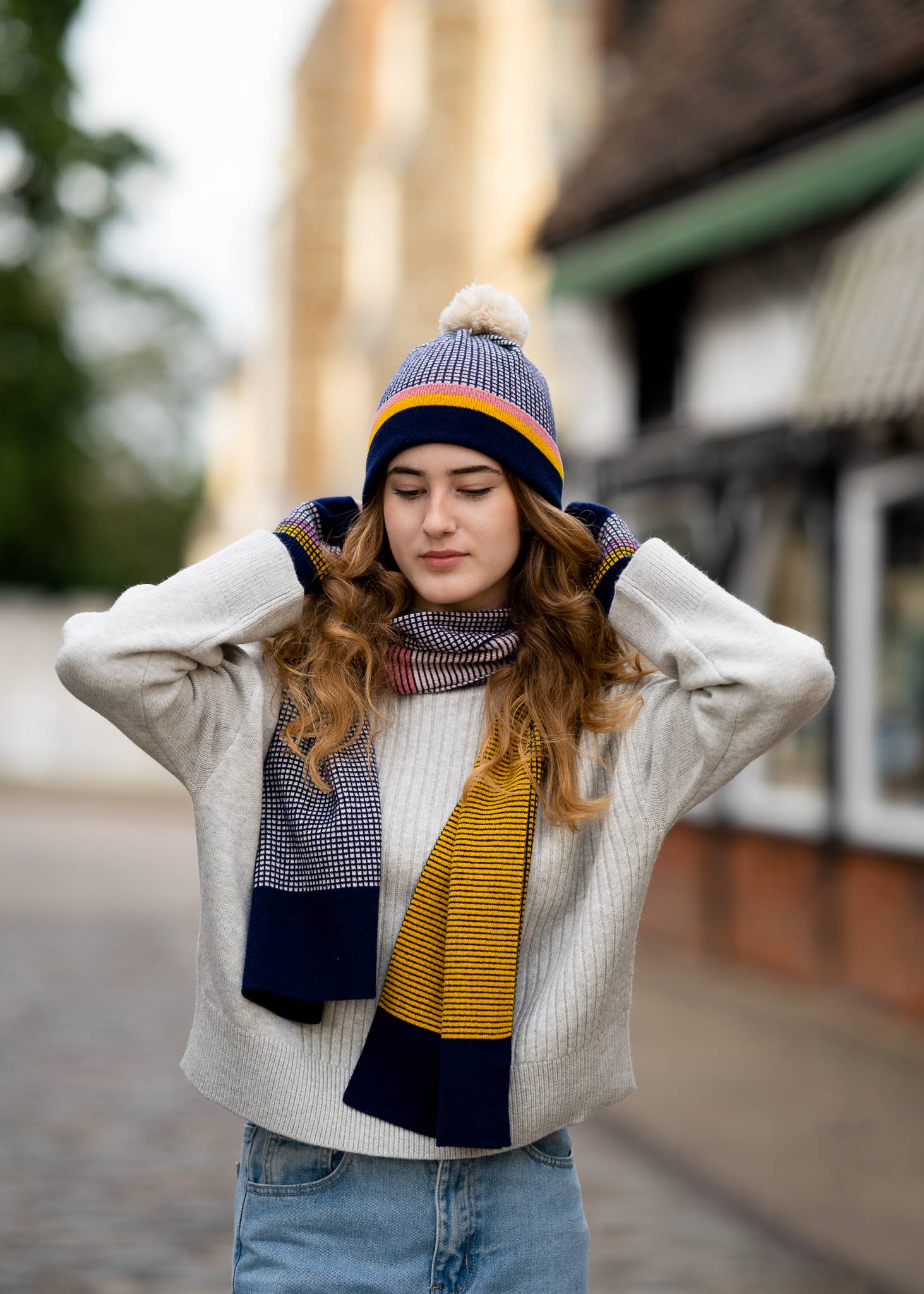 Knitluxe Studio is a British design studio, creating sophisticated yet playful winter accessories, gifts and homeware using ethically sourced and sustainable luxurious Merino Lambswool. Knitluxe Studio aims to challenge and transform the perception of knitted textiles while retaining craftsmanship, traditional machine knitting techniques mixed with modern contemporary knitwear designs. It is designed to make the wearer feel empowered and unique, whilst maximising the natural performance properties of wool. Every piece is created and constructed by hand on a 12gg vintage knitting machine and hand finished to the highest standard. Szilvia is committed to sustainability and only selects traceable luxury yarns to encourage ethical practice, lifestyle and to ensure quality. Szilvia’s vintage knitting machine is a fine gauge hand flat Dubied knitting machine, considered vintage now as they are no longer being manufactured as digitally operated knitting machines took over. Learning and knowing how to create fabric on these machines is a skill that less and less people are taught and has a chance therefore to be a forgotten trade in the future. Szilvia is also a knitwear technician in the university where she undertook her degree, teaching machine knitting to the next generation. With her practice she aims to create timeless knitwear made entirely with the finest quality wool on the market to commit to a better future. She also intends to make woollen knitwear fashionable.