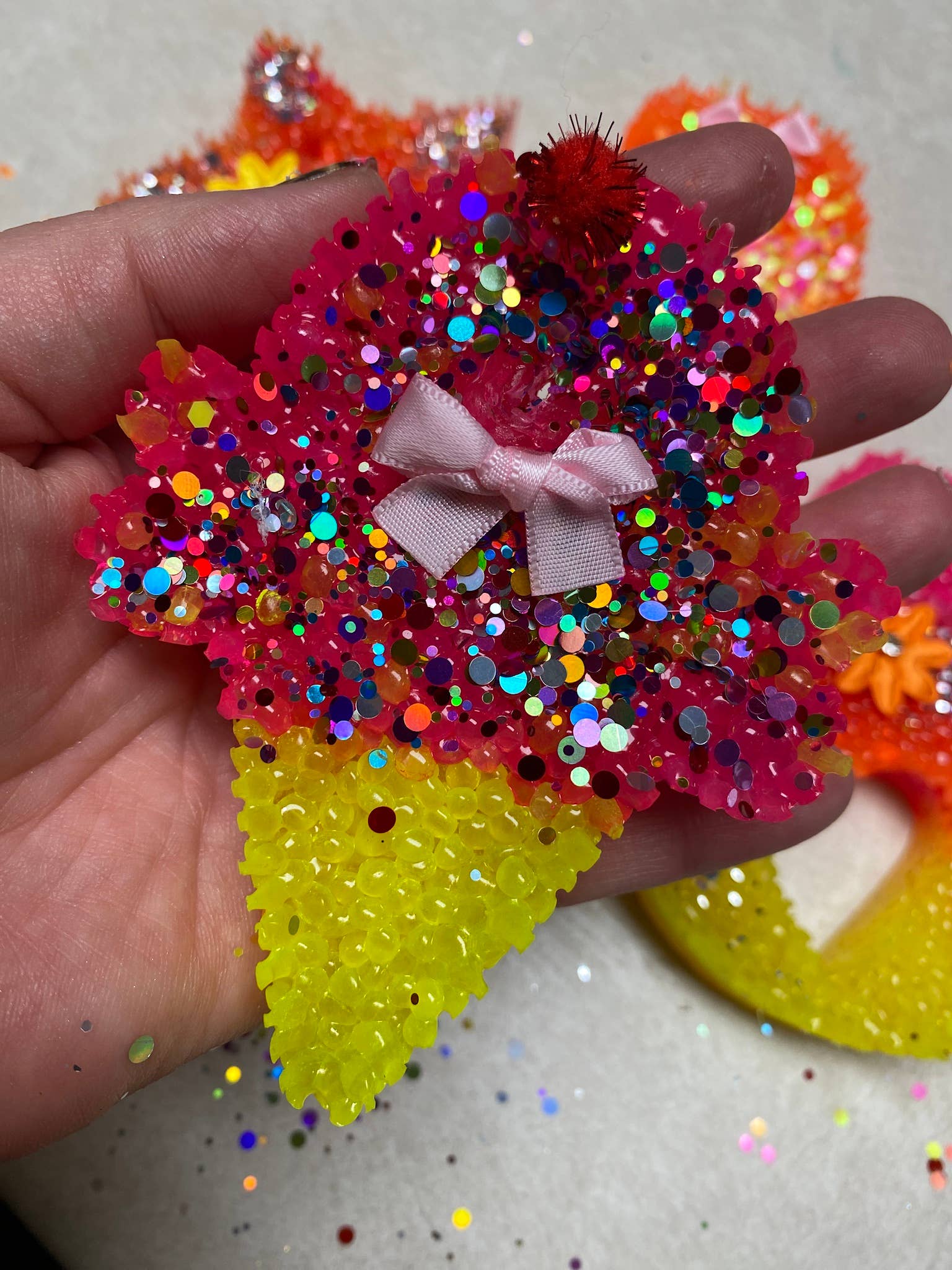 We are a woman-owned small wholesale business that was born from a love of glitter and bright colors! Mandy started making freshies for her own boutique, and she loved it so much that she decided to make it her main focus! Shortly after, she decided to add wholesale graphic tees— in bright colors and bold prints!! Her husband was recruited to help- it’s become a family affair! We want our customers to succeed- and we are happy to work on custom orders- just ask!