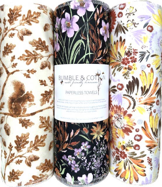 Having grown up in a family of artists, my creativity was nurtured from a young age. My father, a detailed countryside landscape artist and skilled graphic illustrator, brought nature to life through oils on canvas, often using his own photography for inspiration. My mother, a well-regarded figure in interior design, opened a retail store that blended Old-World charm with antiques, vintage textiles into handmade pillows, and dried floral arrangements. Inspired by this rich legacy, I bring a unique, art-infused approach to Bumble & Cotton, where timeless, sustainable designs meet everyday essentials. Building on this vision, I expanded to products that align with my commitment to sustainability, intertwining artfully chosen a botanical and nature-themed niche. In response to our growing need for eco-conscious choices, Bumble & Cotton offers alternatives from PaperLESS Towels and Beeswax Wraps, to handmade solid dishsoap & wooden kitchen brushes —everyday essentials designed to reduce single-use waste and contribute to a greener future. Our Earth Friendly Practices include: support local first source sustainable businesses recycle & repurpose end-of-life materials & supplies maintain minimalistic production & overhead eco-conscious & compostable product labels recycled & compostable printing material plastic-free shipping packaging Thank you for your support and I hope you enjoy our lovely eco home goods! BumbleandCotton.com