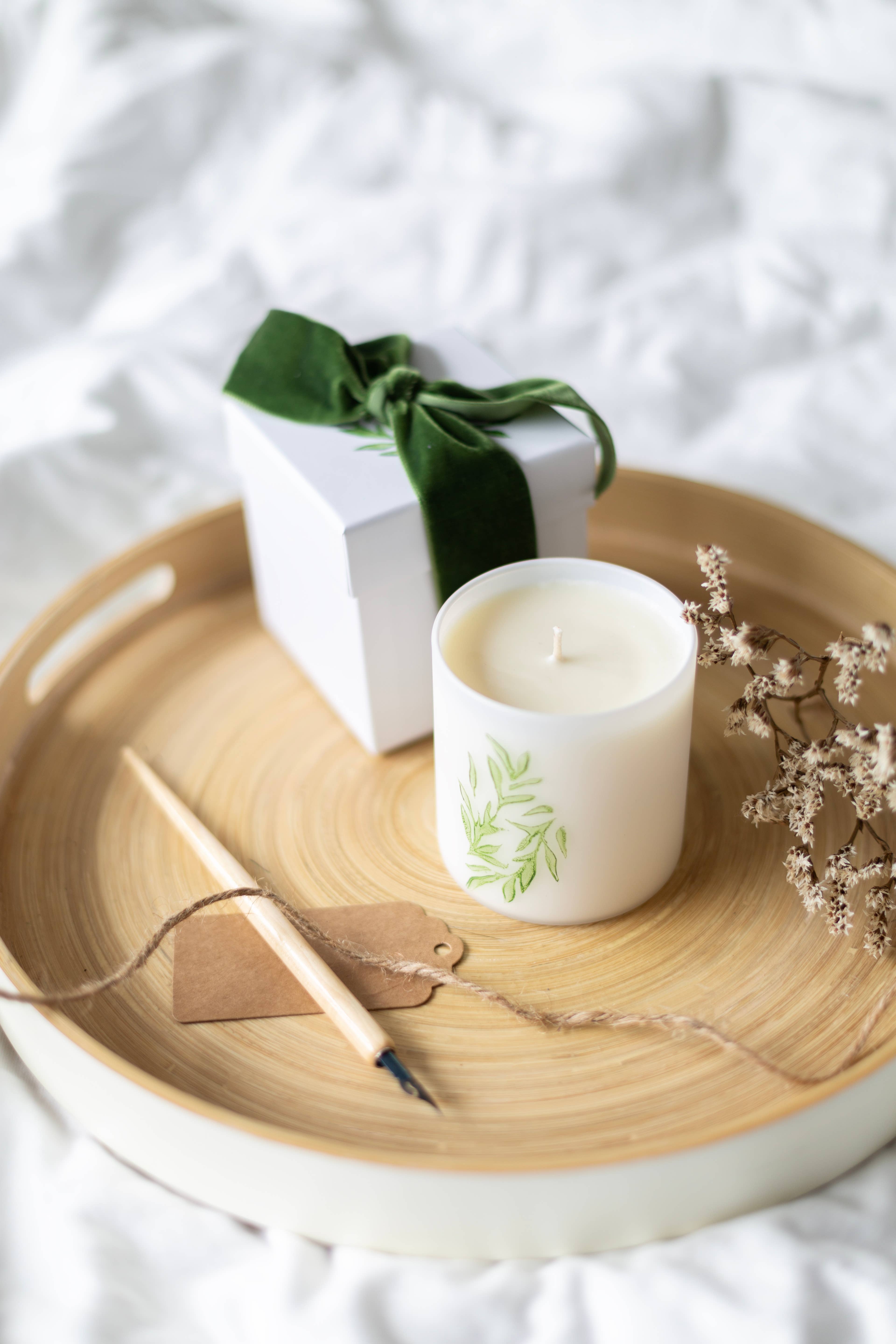I'm Helen, founder of Olivetrehome. My candle making journey began back in 2018 after a life long obsession with scented candles and a passion to share a product that could help create the beautiful, relaxing space we all deserve in our homes. After years of researching ingredients that I feel happy to create with, including pure soy wax, paraben and phthalate free fragrance oils and pure essential oil blends I personally feel I have mastered the recipe of a beautiful smelling candle. But I didn't want to stop there. I believe that a scented candle should not only smell wonderful but it should look wonderful too, something to admire and have use long after your candle has fully burned. This is why all of my candle pots can be easily washed out with hot soapy water and reused beautifully around the home. My boutique candle collection offers a delicate and unique screen printed olive branch design elegantly wrapping around each jar. These are all created using paraben and phthalate free fragrance oils. My newly launched Artisan Collection is very special and offers a unique addition to the scented candle world. Hand printed using a lino-cut designed and carved by me, then filled with beautiful essential oil candle blends. Complete with a hand printed gift box and olive green velvet ribbon, every artisan candle is unique and offers a special gift for any candle lover. Perfect for corporate gifting. Hand poured in small batches in my Essex based studio.