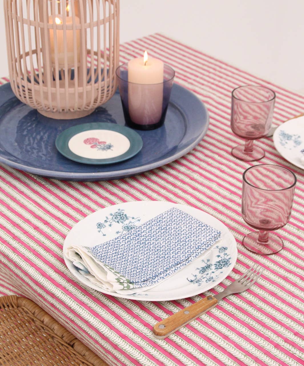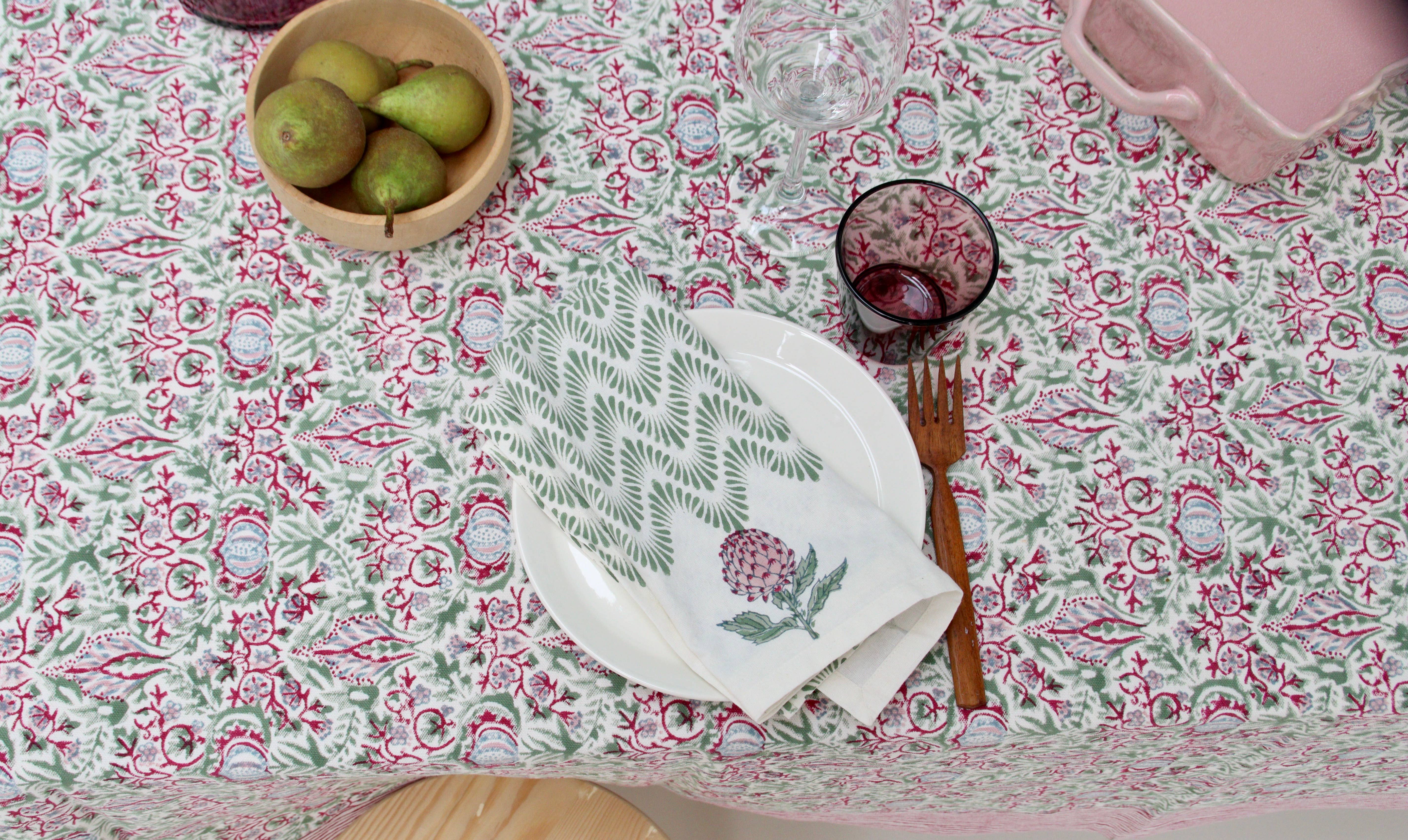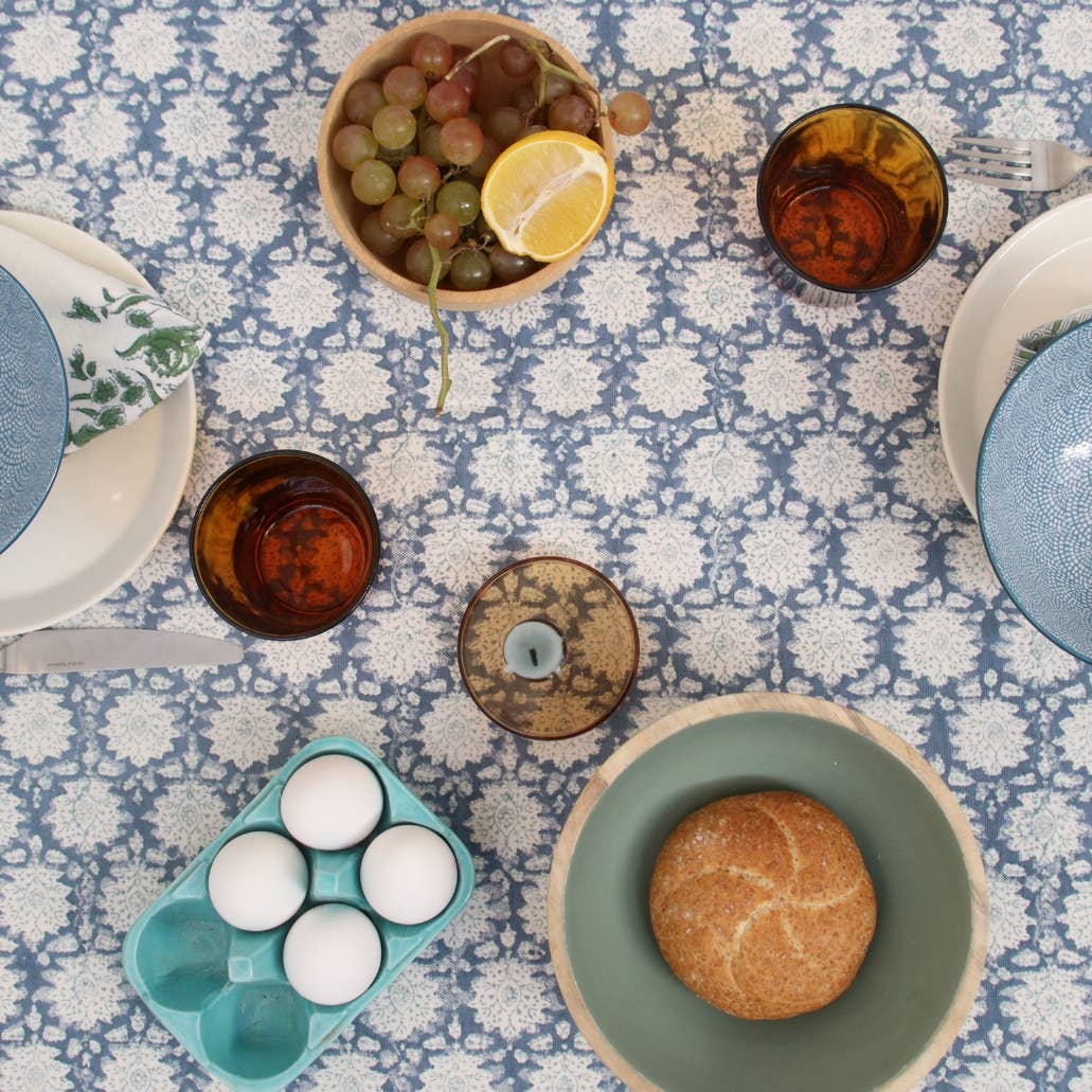 Rozablue: a unique blend of tradition and fairtrade When it comes to finding products that are truly one-of-a-kind, Rozablue stands out. Founded by Dutch entrepreneur Karlijn van Driel, Rozablue offers exquisite handmade and fairtrade home textiles printed in India using traditional block printing techniques. She combines Indian patterns with a rich history with contemporary interior and lifestyle products in the colorful shades of pink & blue, that are the 'red thread' in the collection. They are inspired by the bright cheerful colors that you encounter everywhere on the streets in India. Colors that make me happy, that make your house a home! How it began? During one of Karlijn's long journeys, she immediately fell in love with hand-printed block print fabrics. The age-old craft and the cultural aspect of the designs make these products unique. The irregularities in the patterns fit exactly with the way she wants to live. The beauty is in the imperfection! When she met Indu Kapahi and saw her designs and soft cotton fabrics she knew: this is the beginning of Rozablue! Indu is a special and artistic woman. She takes her inspiration from the rich Indian textile culture, flora, fauna, temples and palaces in India. She designs designs and patterns in a stylish way, from which she has wooden stamps made for stamping. The tablecloths are made from thick 100% high quality cotton, which stands apart from other Indian tablecloths. Want a sample first? Please send me a message :)