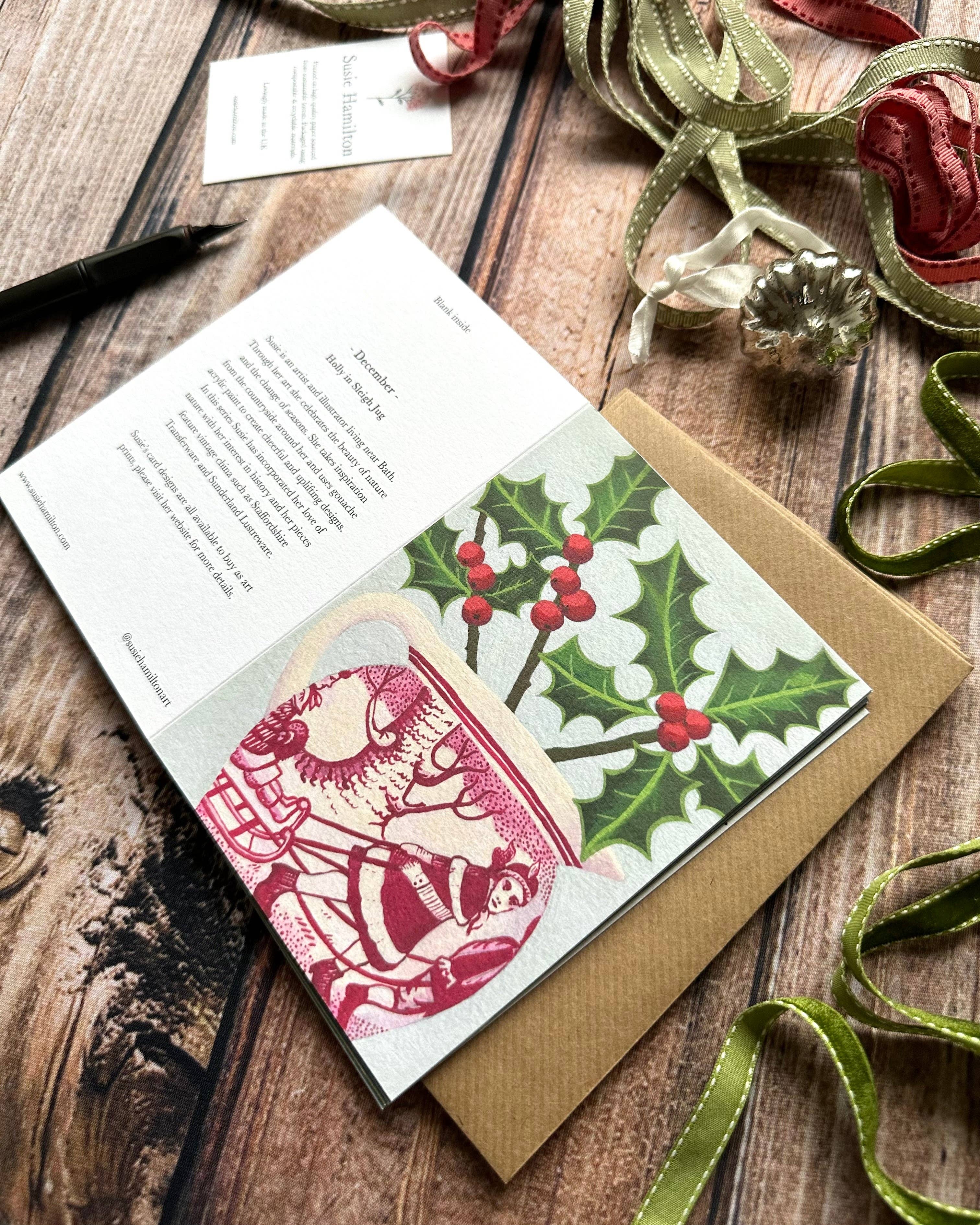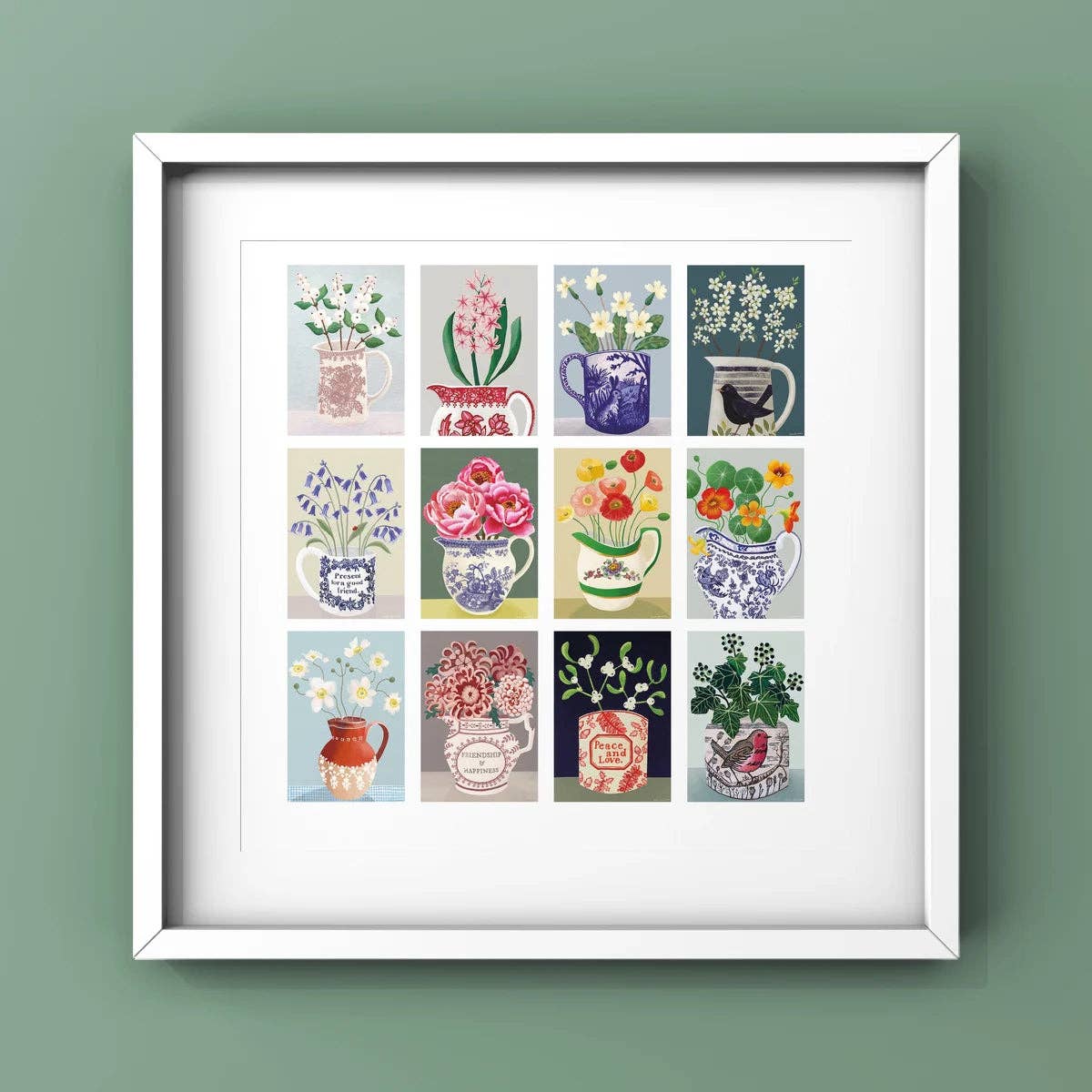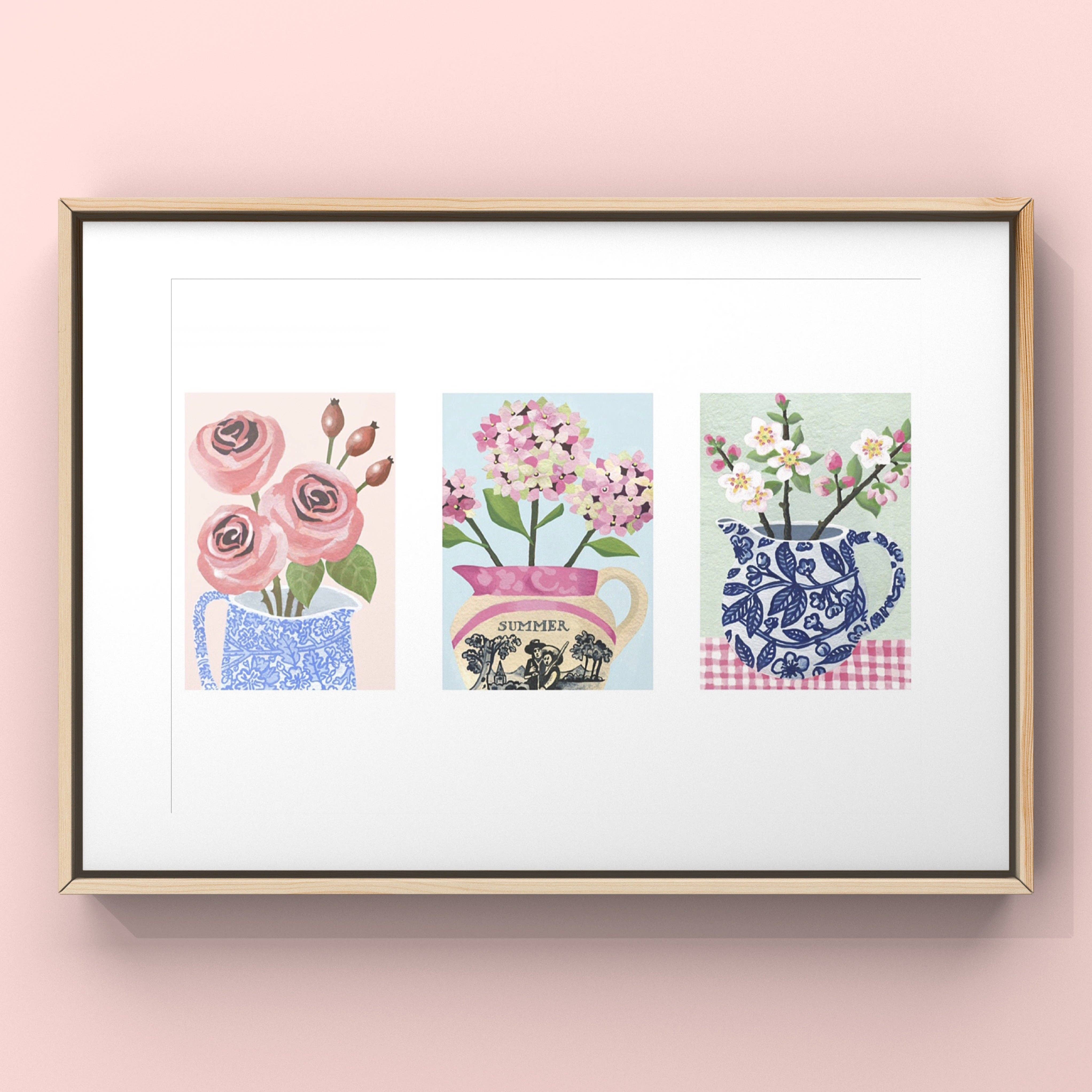 I love to celebrate the beauty of nature through the use of cheerful and uplifting colours and interesting patterns and form. In my latest series, I have created a design to reflect each month of the year and my artwork captures the essence of each flowering month and the shift in seasons. I begin each piece by collecting flowers from the garden or sketching them whilst out walking. I then returns to my studio to make some sketches and decides upon a composition. My colour palettes reflect the mood of the season and my use of gouache acrylic paints create uplifting and colourful designs. My cards printed on high quality 350gsm artist card and paintings are available as giclee prints, sizes A5, A4 & A3.