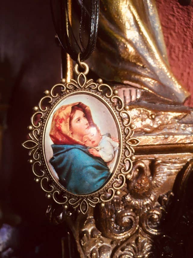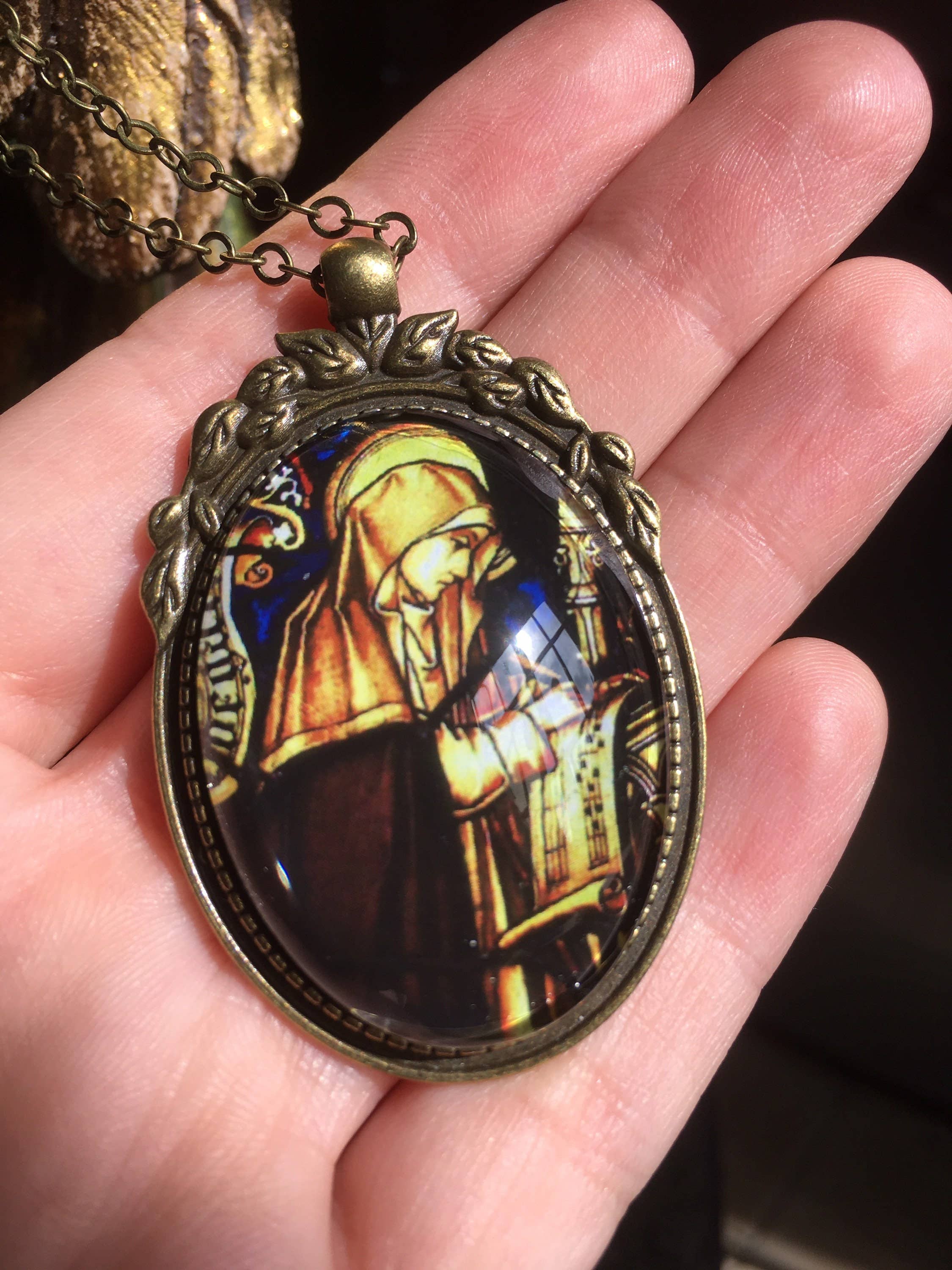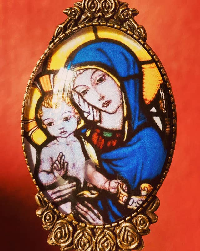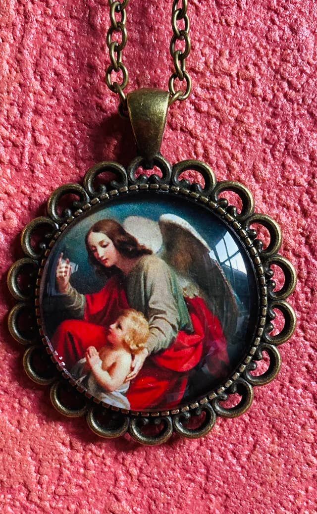 Hello everyone! I am Muriel and I live in the beautiful city of Bruges in Belgium. About eight years ago I was looking for a nice Archangel Michael pendant. And although there are many beautiful pendants available out there, I just didn't find what I had in mind specifically. So...I just had this brilliant and crazy idea: why not make my own? And that's how it all started. As I am an art historian, I could get plenty of inspiration in what the world's history had to offer and so I made it my goal to bring all this beauty out of the museum and round your neck! (and mine!) And hey, guess what? Apparently I was not the only one to like this idea...people started actually buying my creations and what started out as a nice idea for myself, turned out to be a thriving online and home-based business. God has a special place in my life, if not the first one. Hence my love for his beautiful helpers, the angels. These beings of love and light help and guide us, and there are so many stunning representations of them throughout art history. Lord Jesus and Mother Mary also have a great part in my collection for obvious reasons. We all need to be reminded that we are God's children and wearing a sacred image on our hearts can help us remember that. Each time I make a pendant for someone, I ask for God's blessing over it before I send it out.