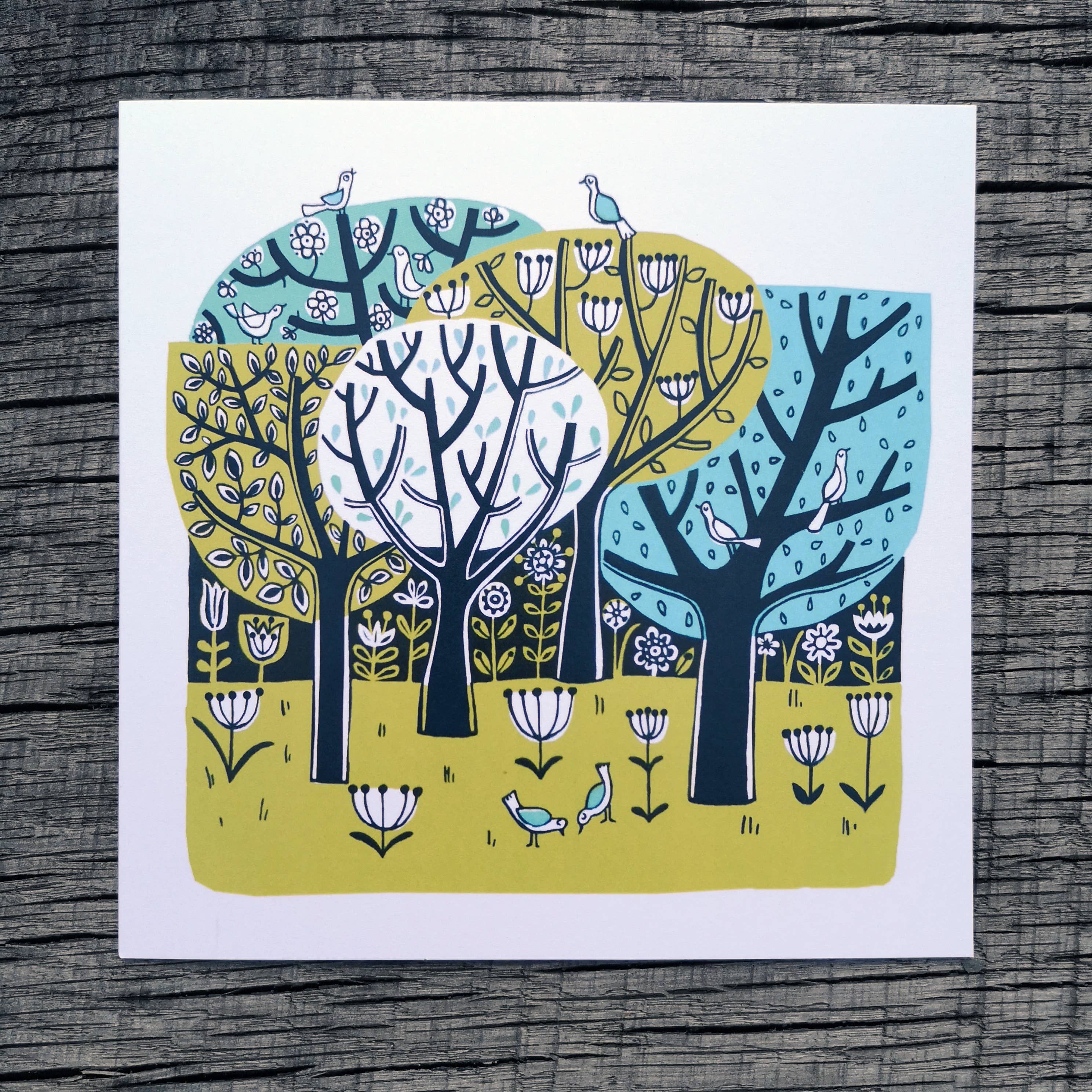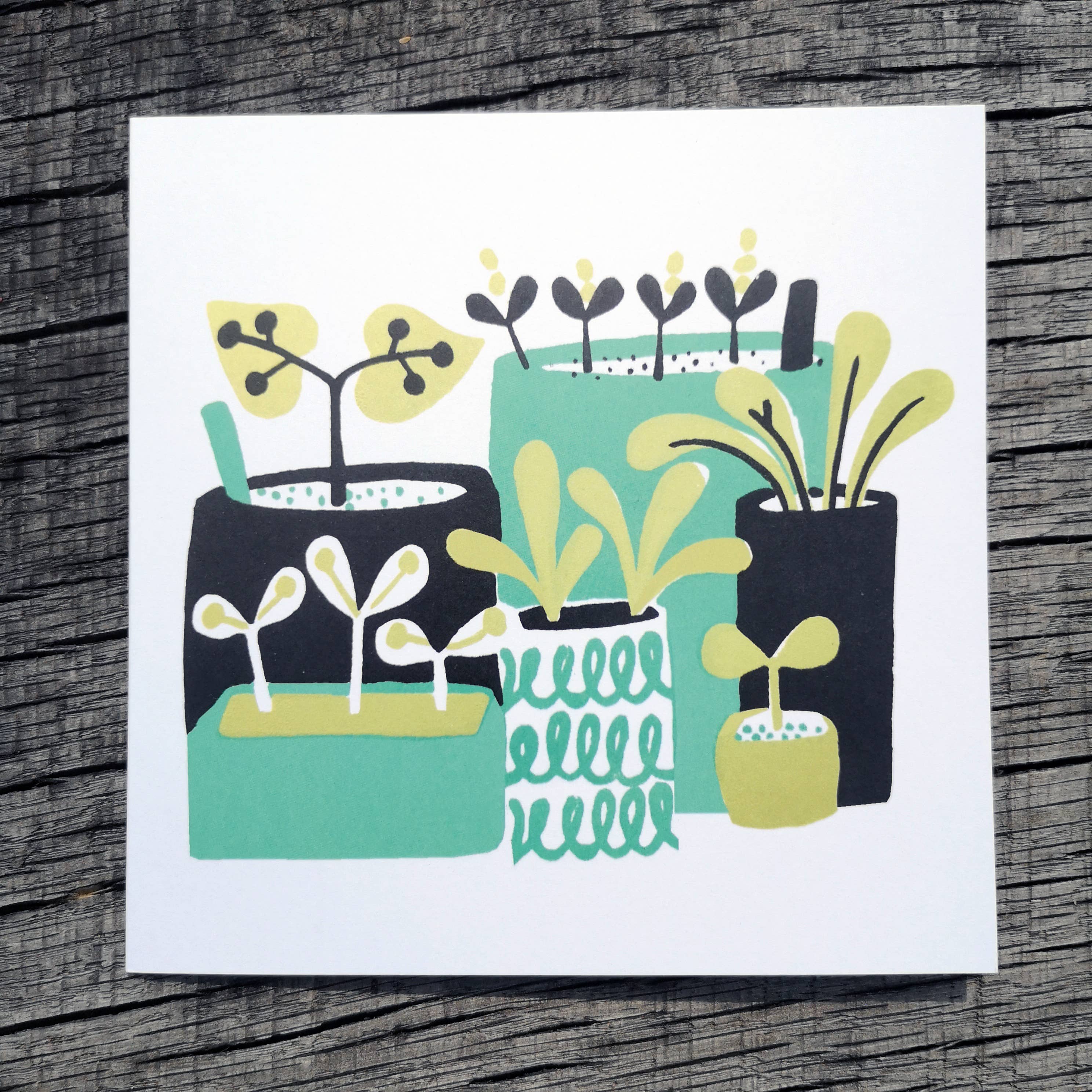 Ruth makes screenprints from her studio in North Wales. Her work is inspired by mid-century design. She has a bold, recognisable style which appeals to all ages. Ruth's range of greetings cards is based on her best selling screenprints. They are digitally printed in the UK using permanent vegetable-based inks on 100% recycled card with a recycled Kraft envelope, sealed with a non-plastic belly band.