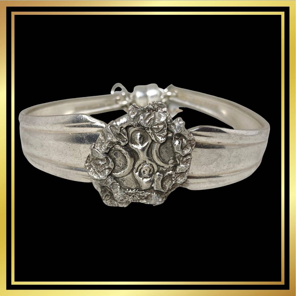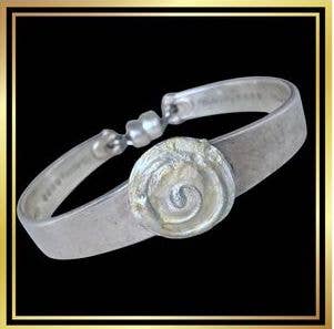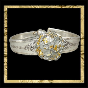 The medallions on these bracelets are one-of-a-kind individually made; the bracelets are available in any size, ( at no extra charge), they don't twist around on your wrist, and they are easy on, secure, and easy off. All components are soldered where necessary and are either silverplate, copper, sterling or stainless. No base metals in anything. They are all individually crafted by me, no mass production. Gaia is a name given to Mother Earth, a symbol that represents the perpetual renewal of life, the passing of life, and the nurturing of life during its time on this planet. Depicted as a female figure, keeping the image of Gaia close helps remind us of our obligations to Her, and the rewards we reap when we do. I am a believer that now Gaia has spoken to us, and has told us that we MUST slow down, regroup, re-think, re-organize, and re-imagine. I believe that she will not let us up until we do. Keeping a Gaia symbol near and visible reminds us of our challenge to listen and act. Earth Goddess jewelry pays homage to Mother Earth. As well as the Gaia bracelet, the symbol of the sound of the universe — Ohm — is center front on the Ohm bracelet. the Tree of Life is here as is the Ankh, Gratitude , (also the symbol of Panchmama), and Triskele symbols. More coming.