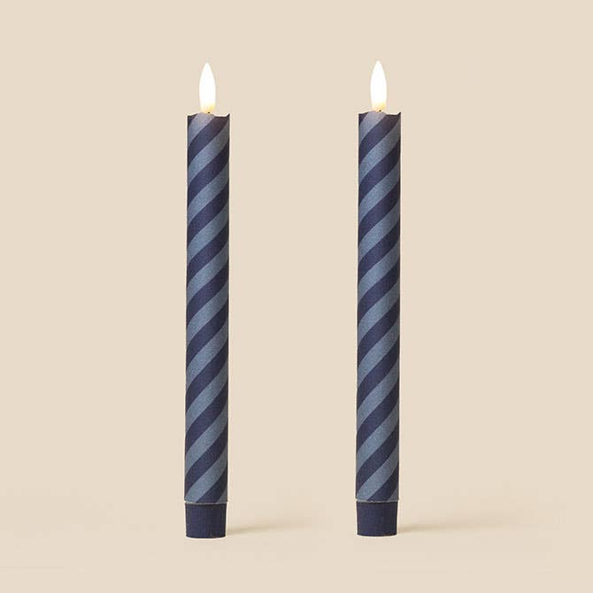 TINKALINK is proud to unveil our Flameless Fabric Wrapped LED candle collection. Carefully crafted from real wax and hand-wrapped in our London Studio with a curated mix of contemporary and traditional fabrics, these LED candles are designed to beautifully replicate the look and feel of classic taper candles. Their soft curves, natural texture, and thoughtfully chosen patterns offer the charm of traditional candlelight— with none of the mess or risk. Blending timeless elegance with modern practicality, each candle features an LED flame that flickers gently, casting a warm and lifelike glow. • Safe, stylish, and smart, the candles can be controlled with a manual switch at base. • 25 cm tall with a sleek 2cm diameter, and offering many hours of battery life, our LED candles brings character and calm to any space • Perfect for homes, events, or as thoughtful gifts A gift of glow, without the flame. All the beauty of candlelight, none of the risk — safe for homes with kids, pets, or forgetful candle lovers. No melting, no mess. The printed fabric stays pristine, so your gift keeps on glowing — and looking good — for years to come. With a mix of bold prints and elegant details, from classic to quirky. Each box includes two elegant LED taper candles, beautifully practical and ready to gift.
