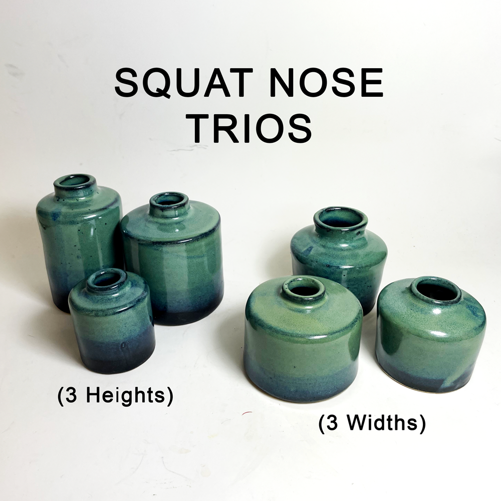 Cedarleaf Ceramics (formerly Zen Pots) is a small production pottery studio based in Asheville, NC. We focus on creating small wheel-thrown ceramic products including mini bottles and vases, jugs, jars, mini plates & bowls, spice dishes, seashells. Our main product is a line of 12 different shaped mini bottles in 15+ glaze colors and color combos. Our cute little teeny tiny bottles are both beautiful and artsy. Ideal for your boho decor, zen gardens, mountain kitchens, or cabin in the woods themes. These bottles can be used for bud vases, cut flowers, dry flowers, incense, oils, candles. They are also lovely as table decor and party favors gifts. They can be used for bathroom products, kitchen items and more. These bottles sell themselves as people love the tiny individually unique ceramics made with quality. They're also perfect as wedding or shower gifts or for plants clipping and home decor. As a part of a zen meditation practice we produce large quantities of bottles (1000s) every month. In our zen throwing sessions each mini bottle is wheel-thrown, hand-finished, then bisqued and glazed in our hand-mixed custom in-house glaze recipes. When you place an order they are selected and packaged safely in recycled newspaper and bubble wrap - all clay scraps are recycled & reused - we use locally produced clay as available (RIP Highwater). These all make our bottles very high in positive chi energy as well as having a balanced low impact in their creation.