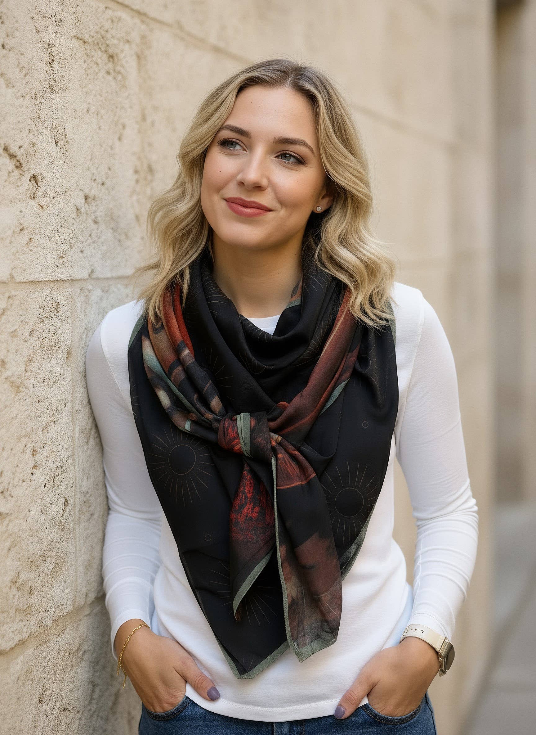 A 100% Belgian success story, with & for local shops: in a few years, we have gone from 200 to more than 4,000 copies created each year, largely thanks to the stores that trust us. We are convinced that our future depends on local shops. There is no substitute for human contact. Our mission from the beginning has been to sublimate our customers while participating in local commerce. No creation will be sold cheaper online than in store, that's our commitment! Our best sellers are square scarves and scarves, 140 x 140cm (ideal for stylish bows, without the feeling of wearing an overly imposing scarf). Exclusive design: we don't assemble existing fabric, we create the fabric... so you won't find anywhere else. Printed in Belgium. Handcrafted & premium quality finishes in Belgium. Composition: for photo quality printing, we print on 100% polyester fabric with a viscose touch for scarves, & a softer and warmer touch for scarves. The viscose effect is very pleasant, with the advantage of better resistance and machine washing+drying. Ecological and environmentally friendly printing process: inks based on water and chillies of mineral origin. AZO Free No POA animal products. REACH compliant. Contact us: we answer quickly & personally! Measured customer satisfaction: 99.7%